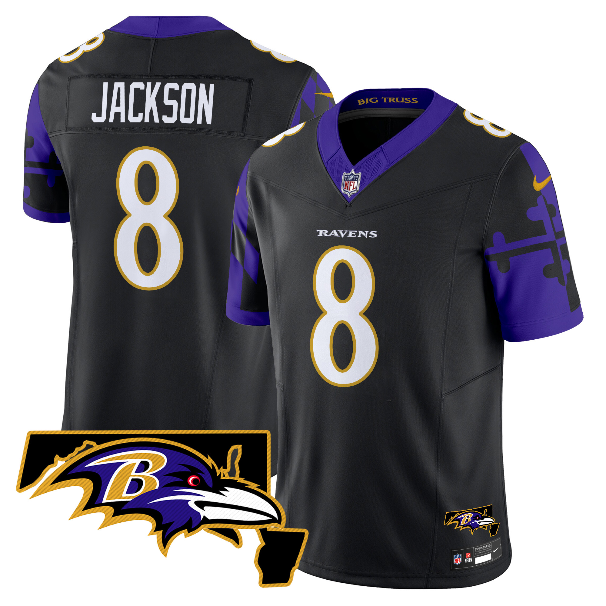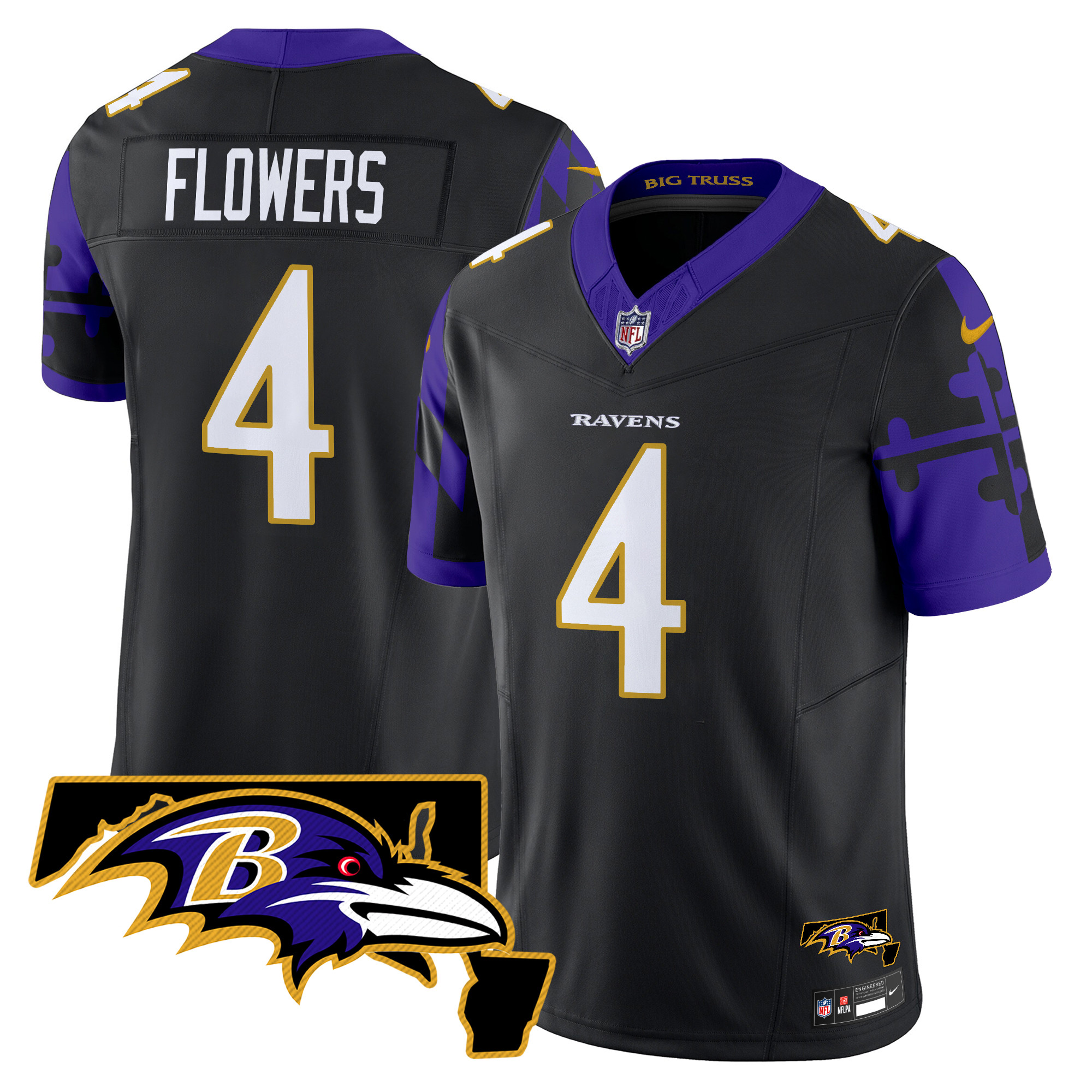 Men’s Ravens Maryland Flag Map Patch Vapor Limited Jersey – All Stitched