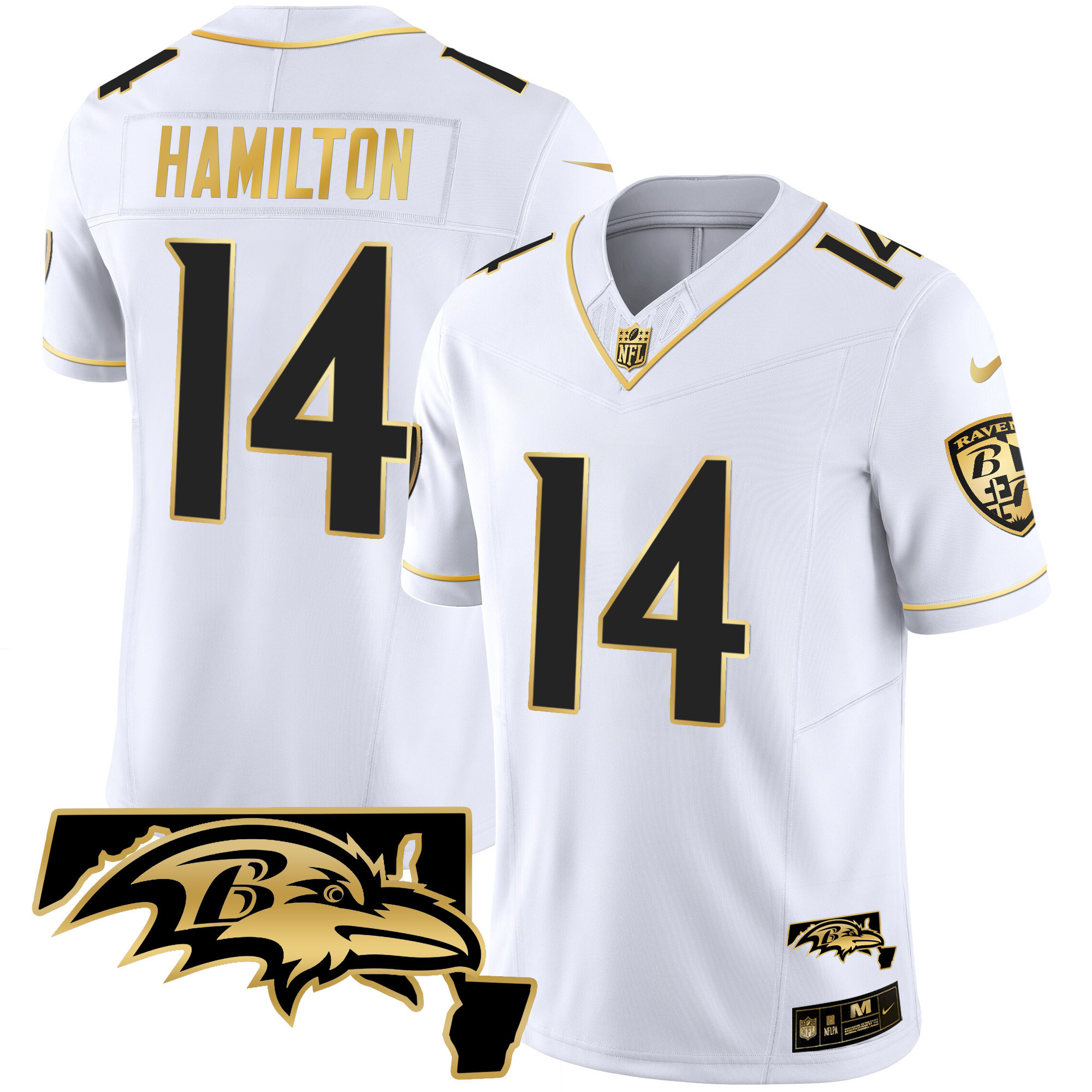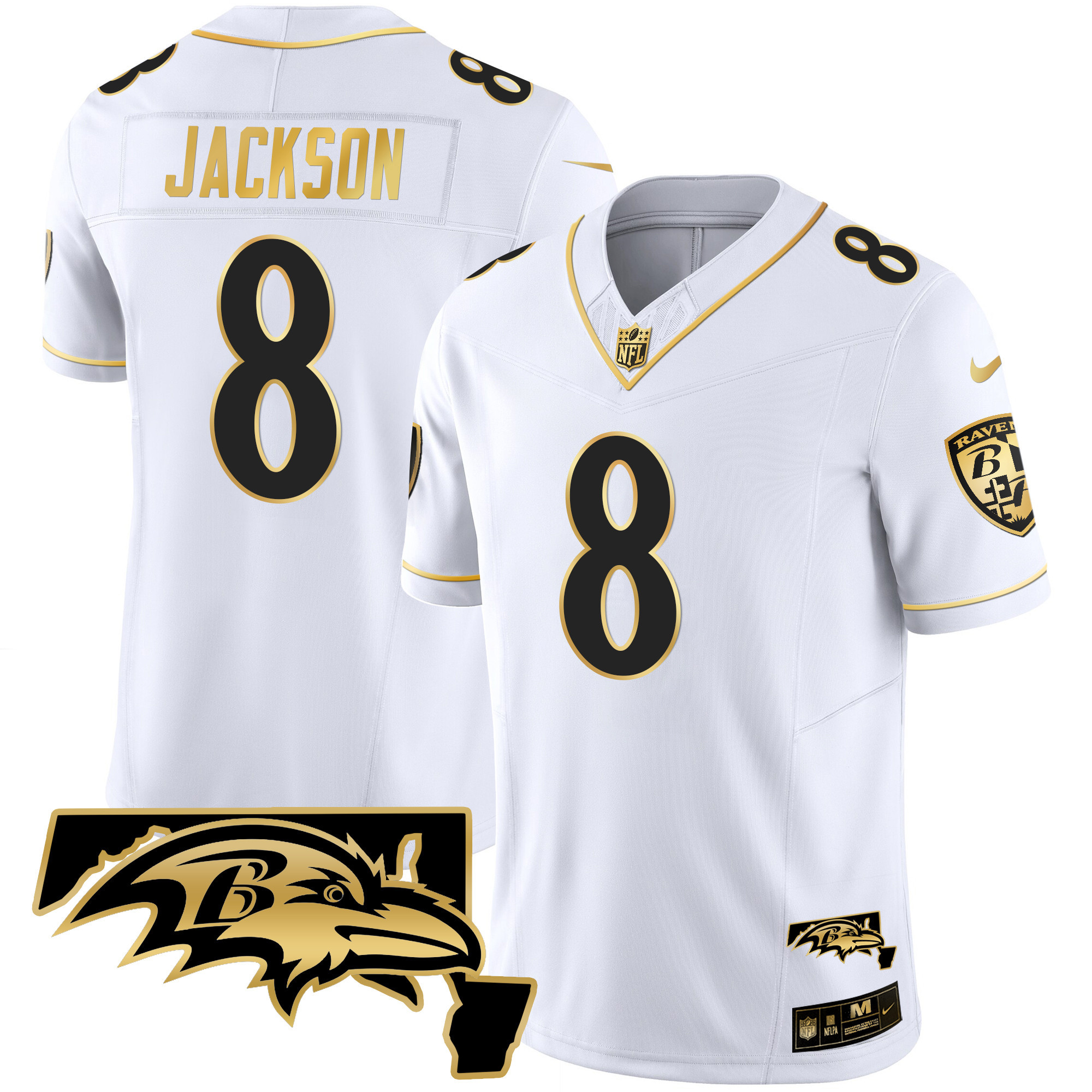 Men’s Ravens Maryland Patch Vapor Gold Jersey – All Stitched