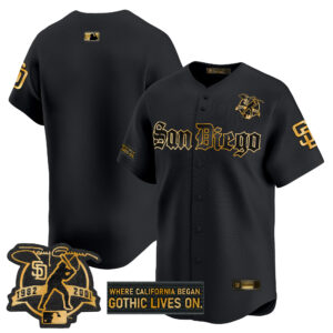 Men’s San Diego Padres ‘Gothic Edition’ Gold Vapor Premier Limited Jersey – All Stitched