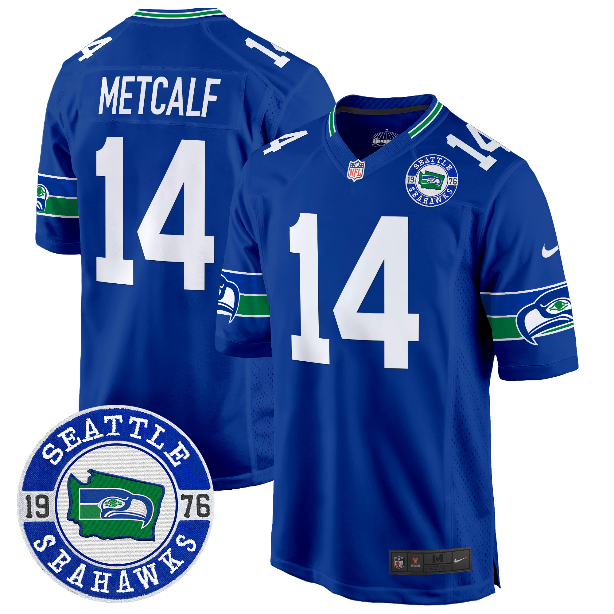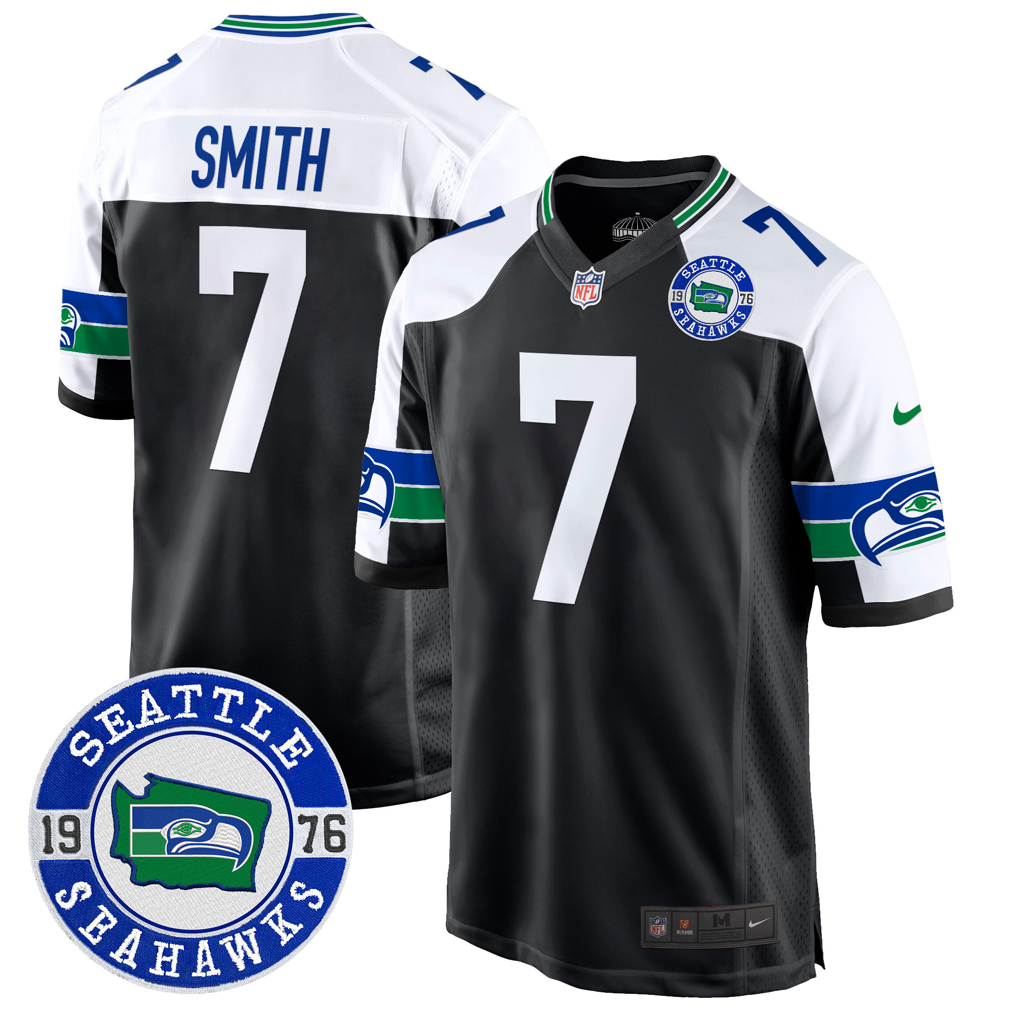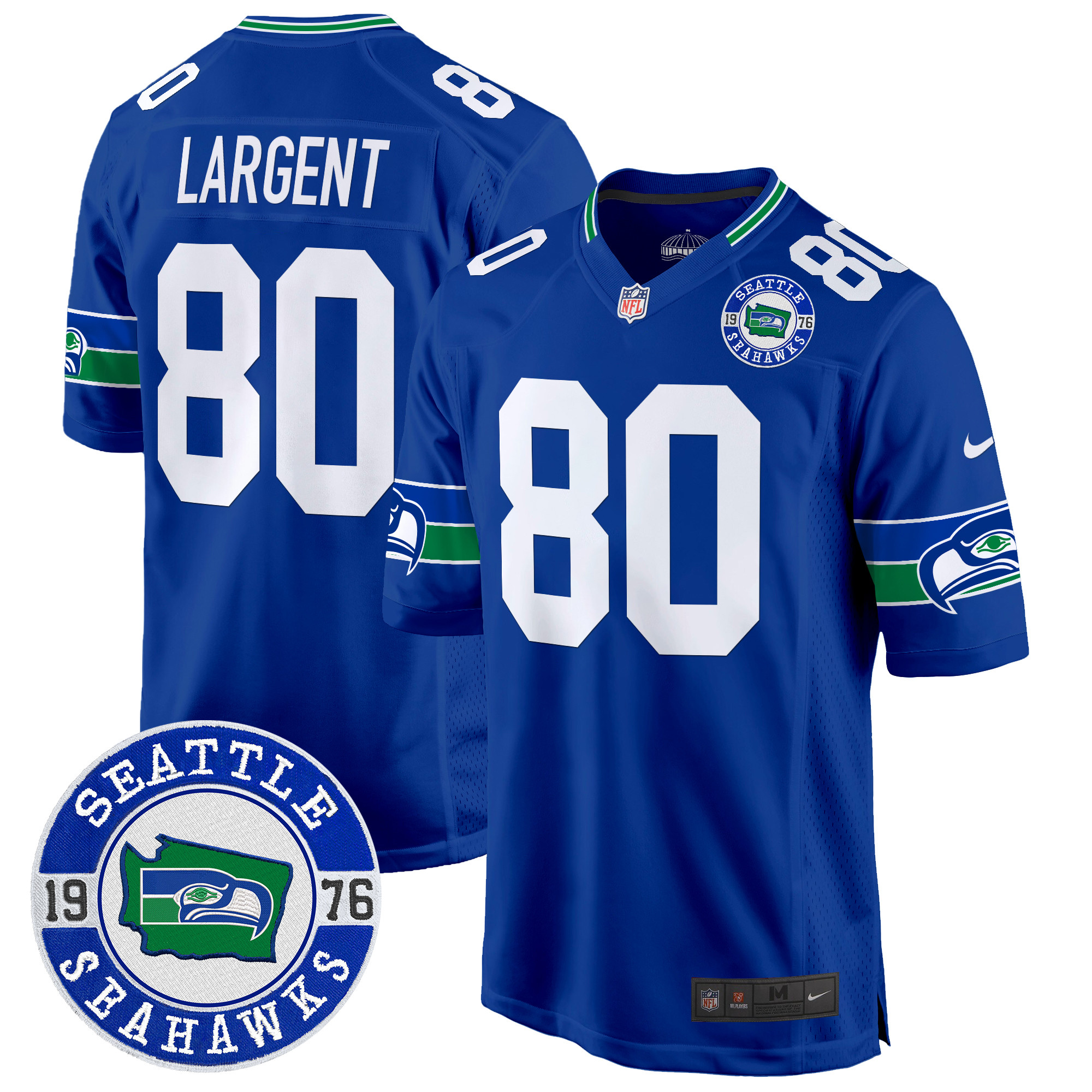 Men’s Seahawks Throwback Est. 1976 Patch Game Jersey – All Stitched
