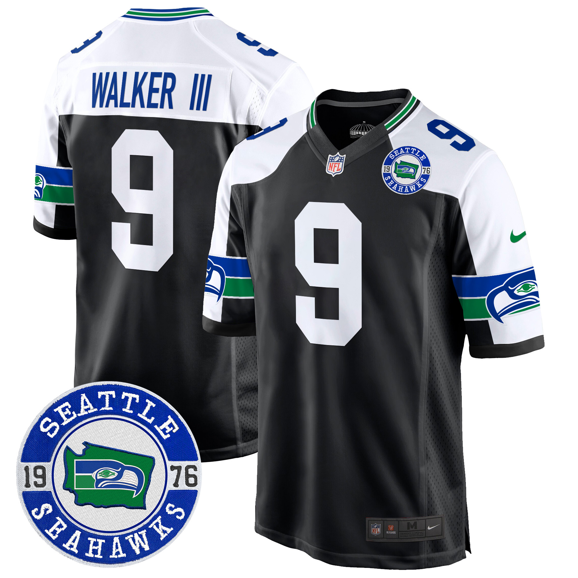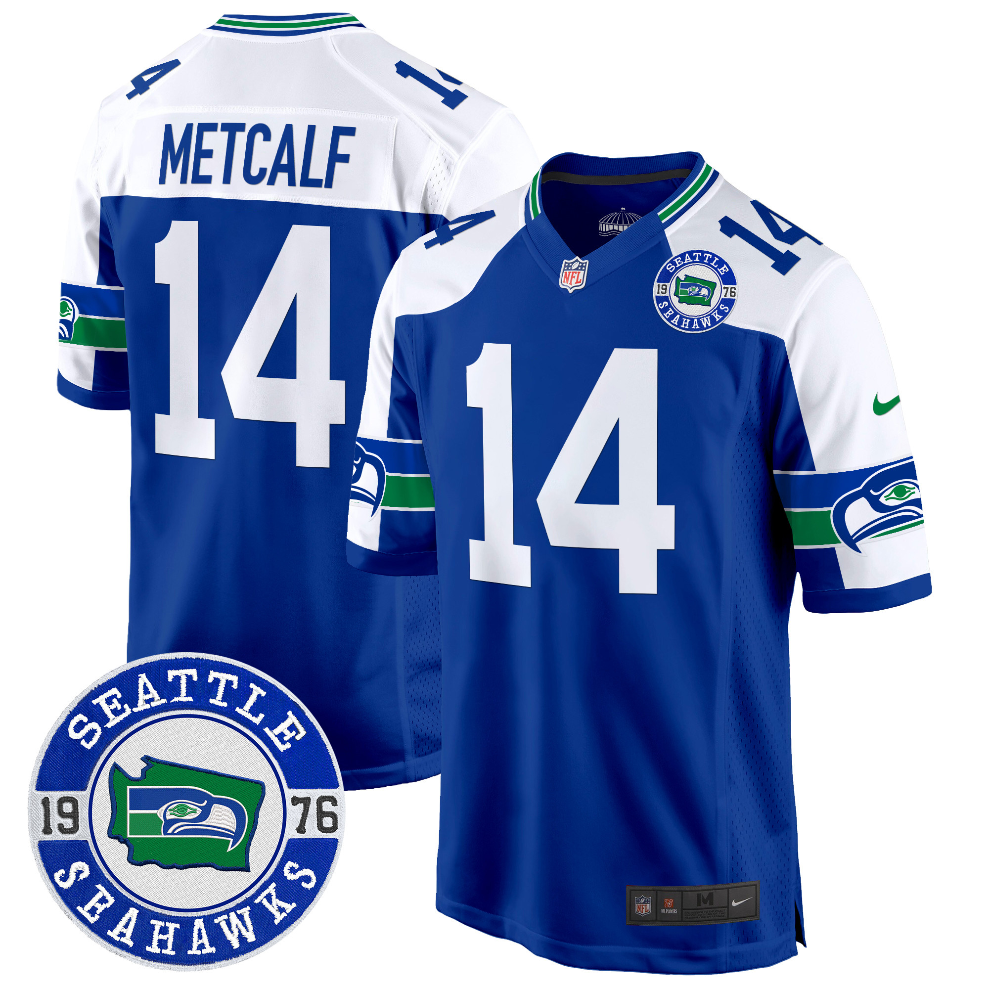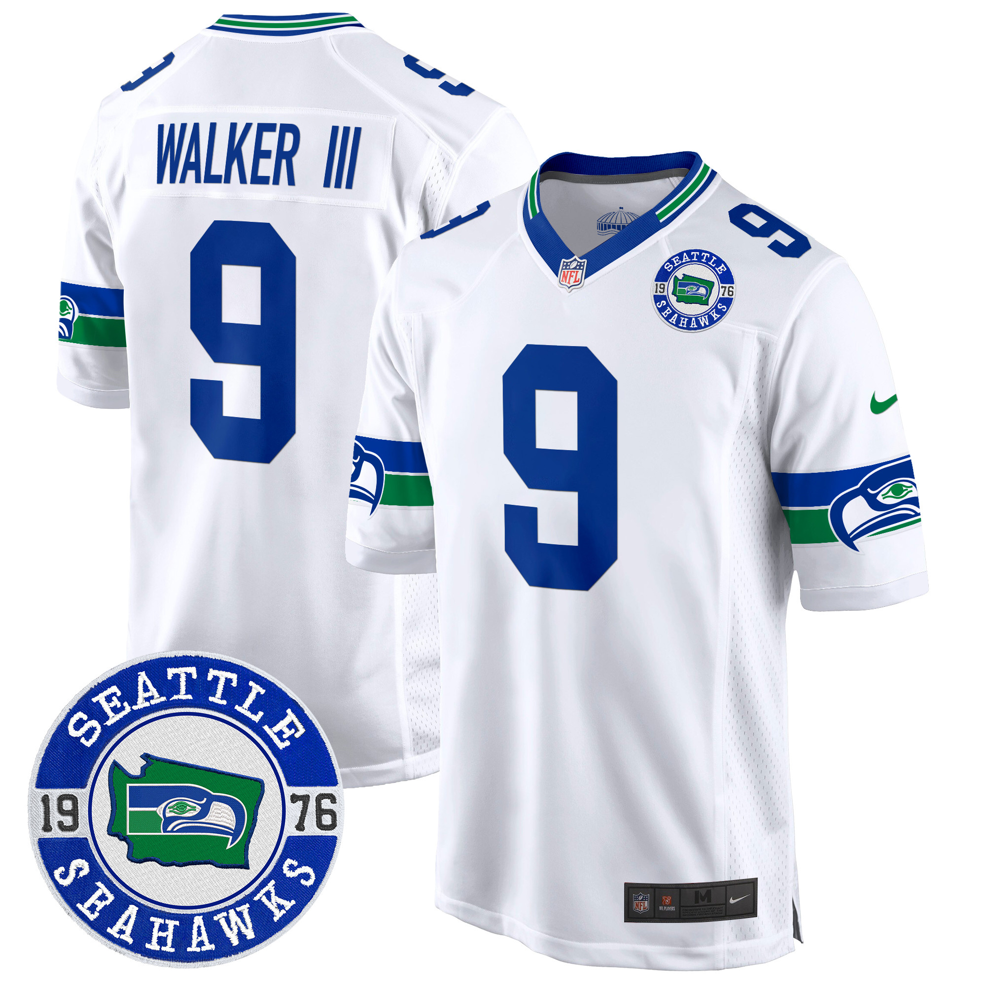 Men’s Seahawks Throwback Est. 1976 Patch Game Jersey – All Stitched