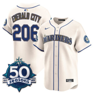 Men’s Seattle Mariners 50 Seasons Patch Vapor Premier Limited Jersey – All Stitched