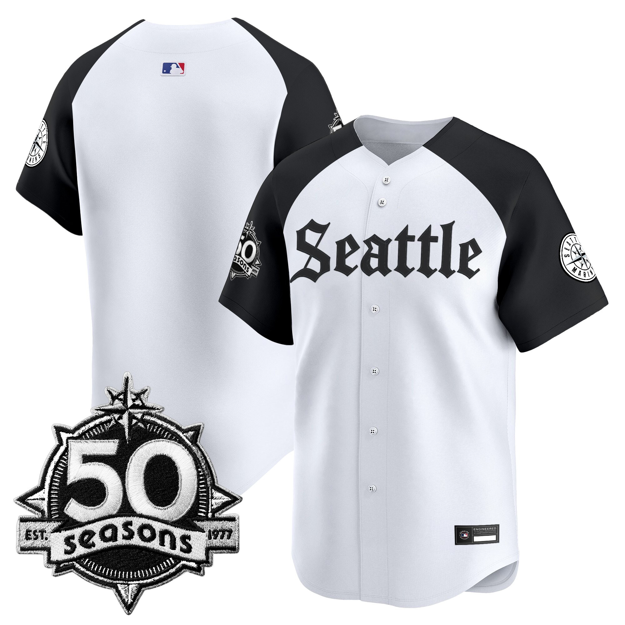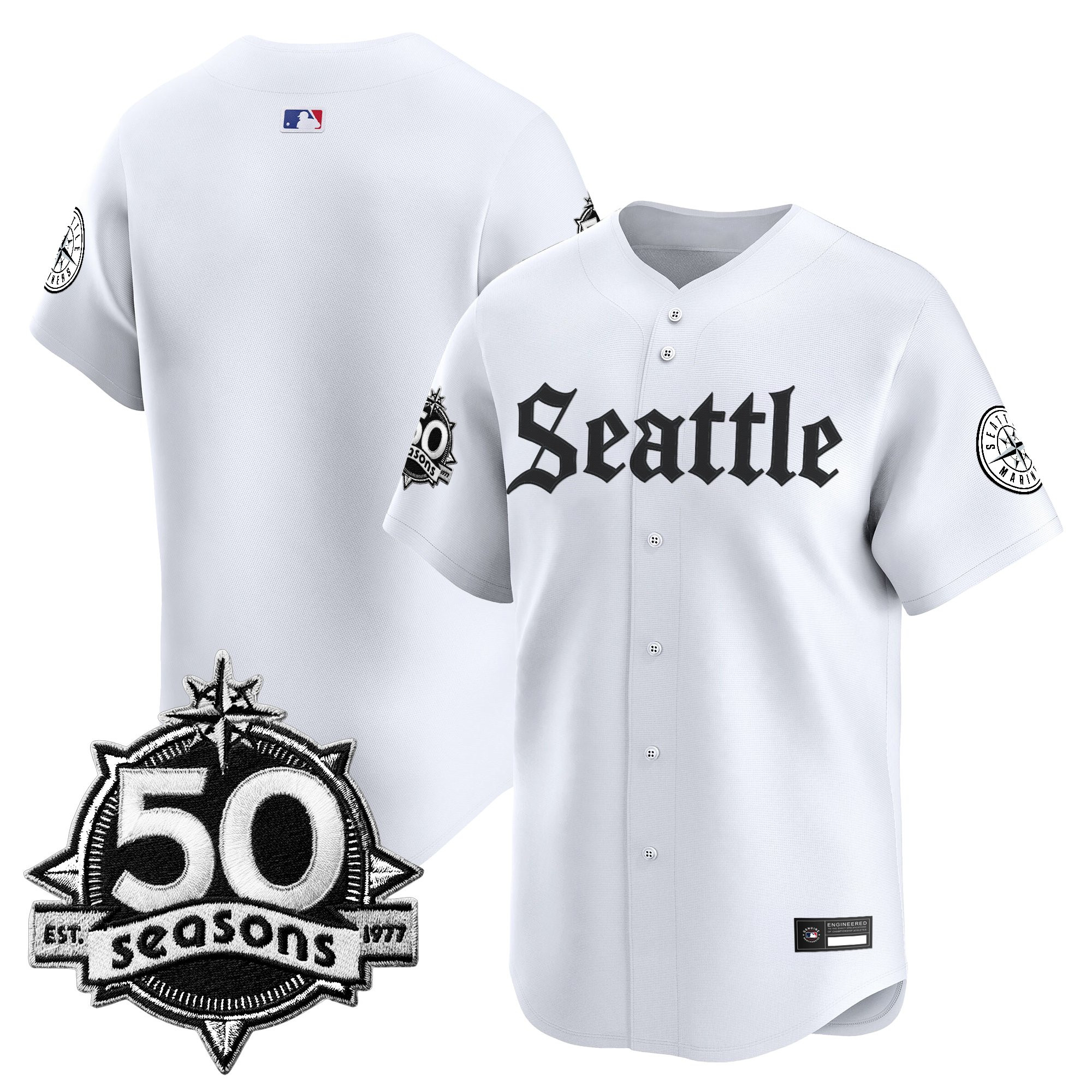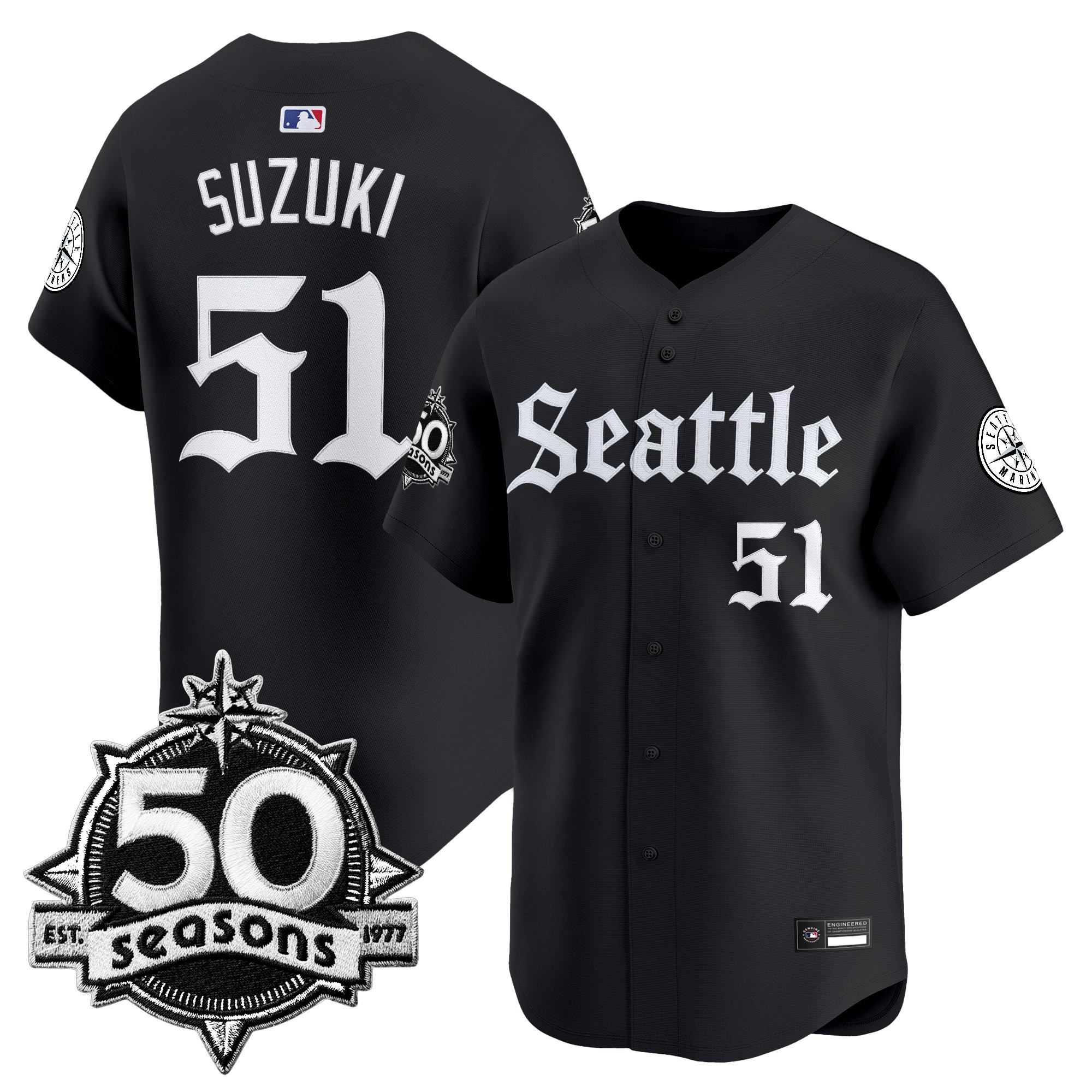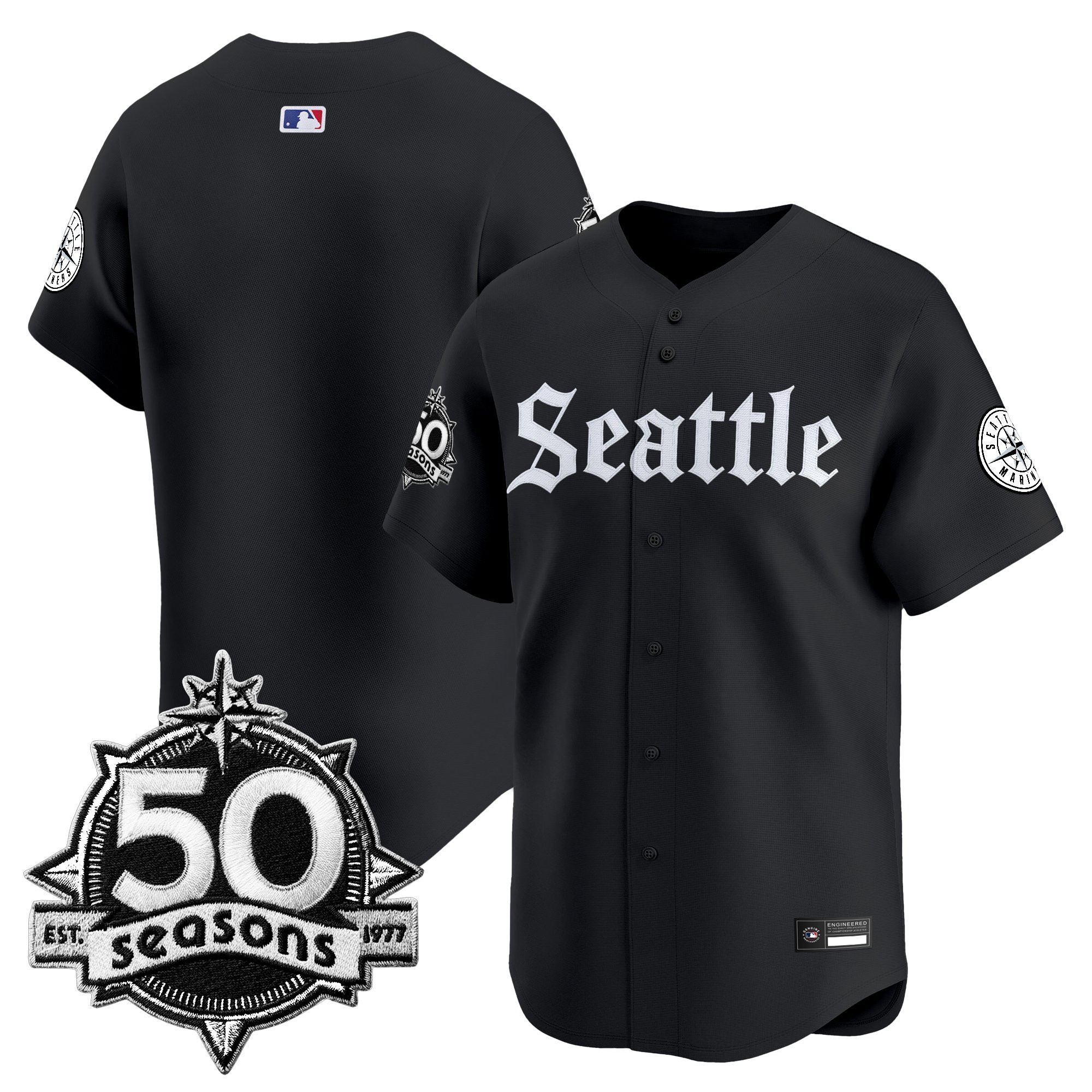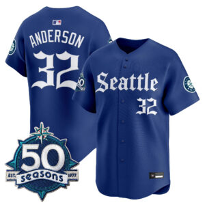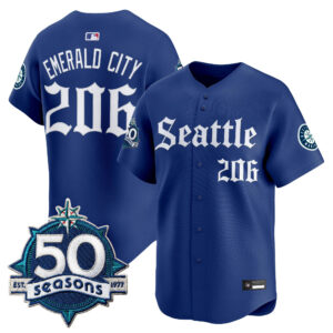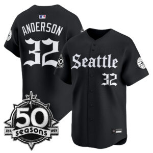 Men’s Seattle Mariners 50 Seasons Patch Vapor Premier Limited Jersey – Gothic Edition – All Stitched