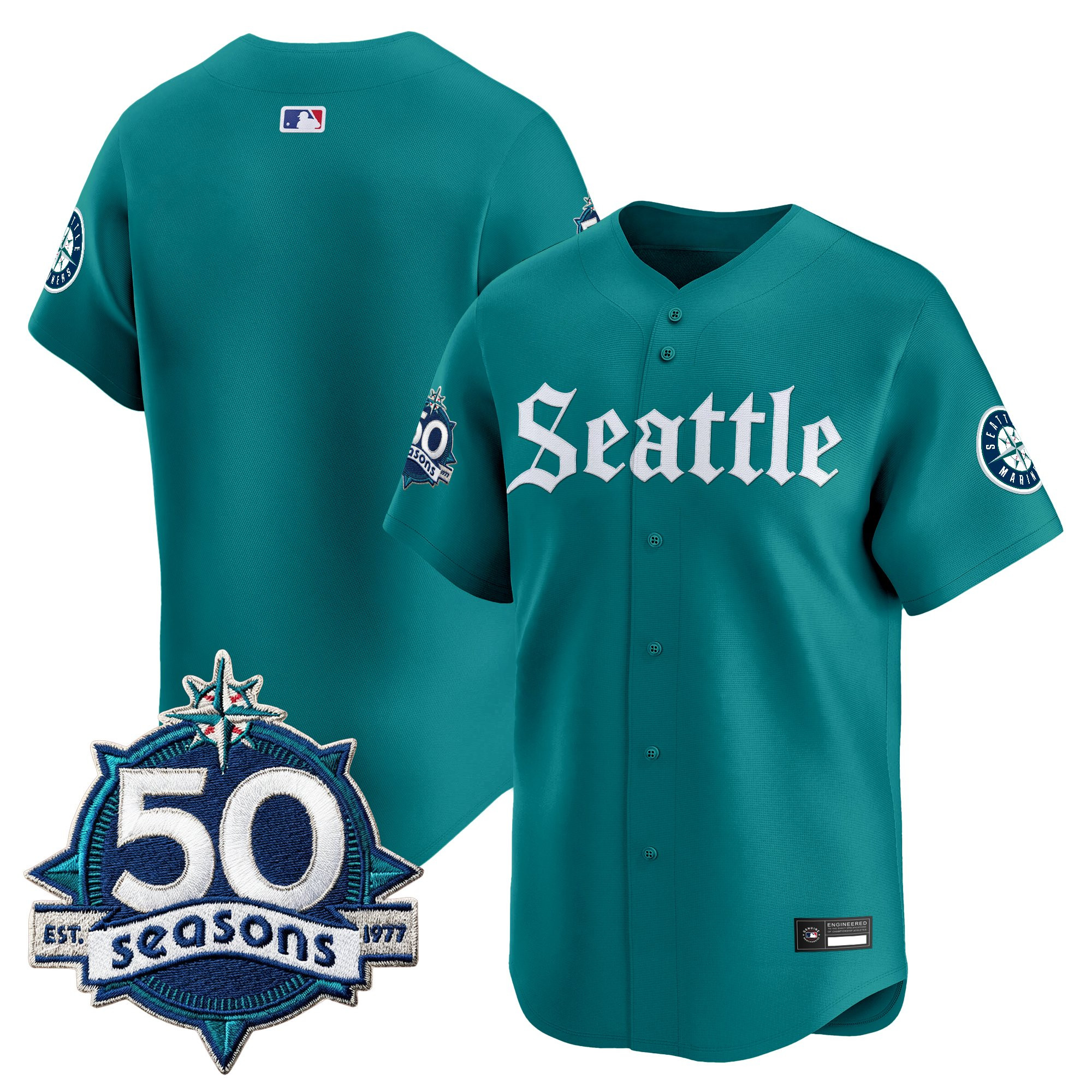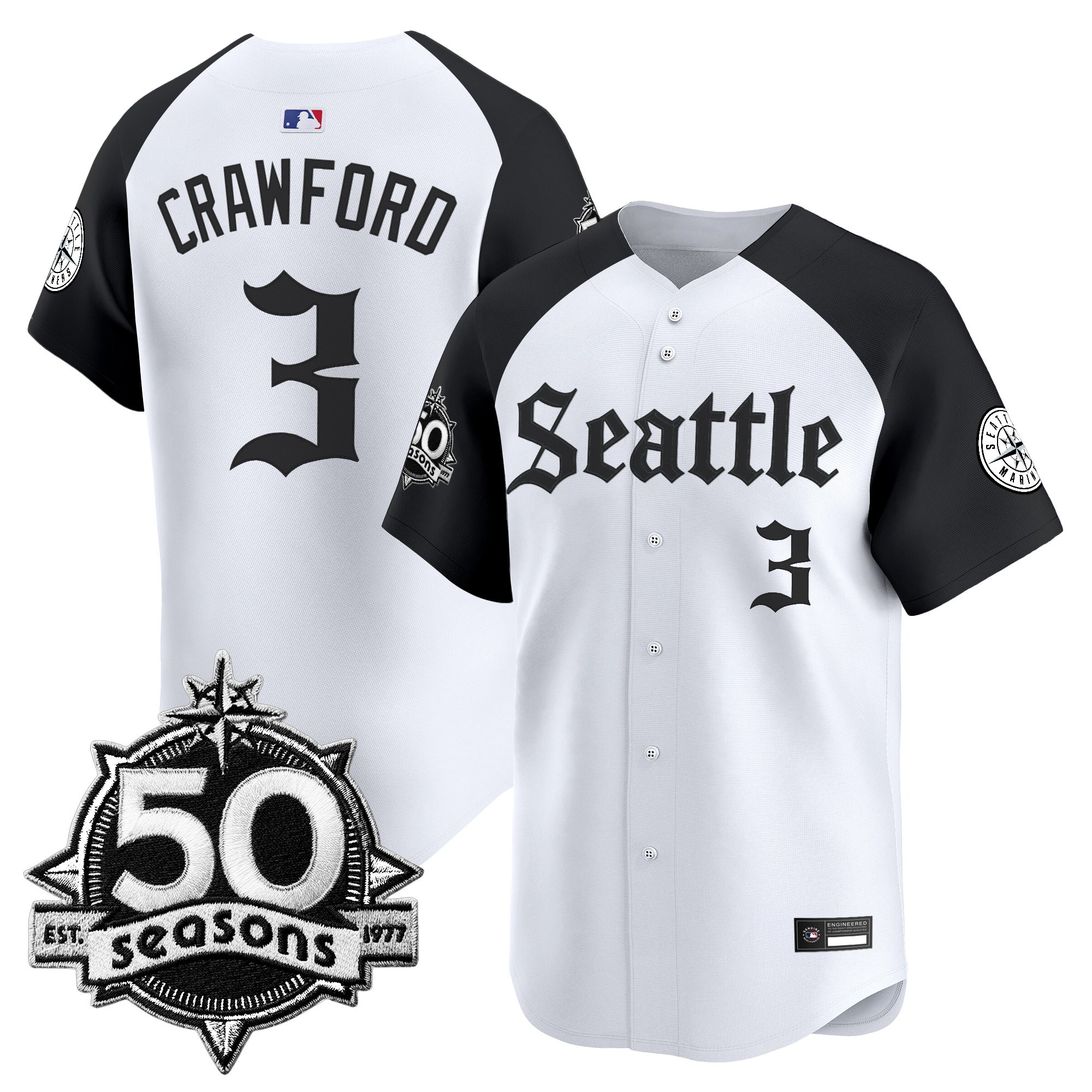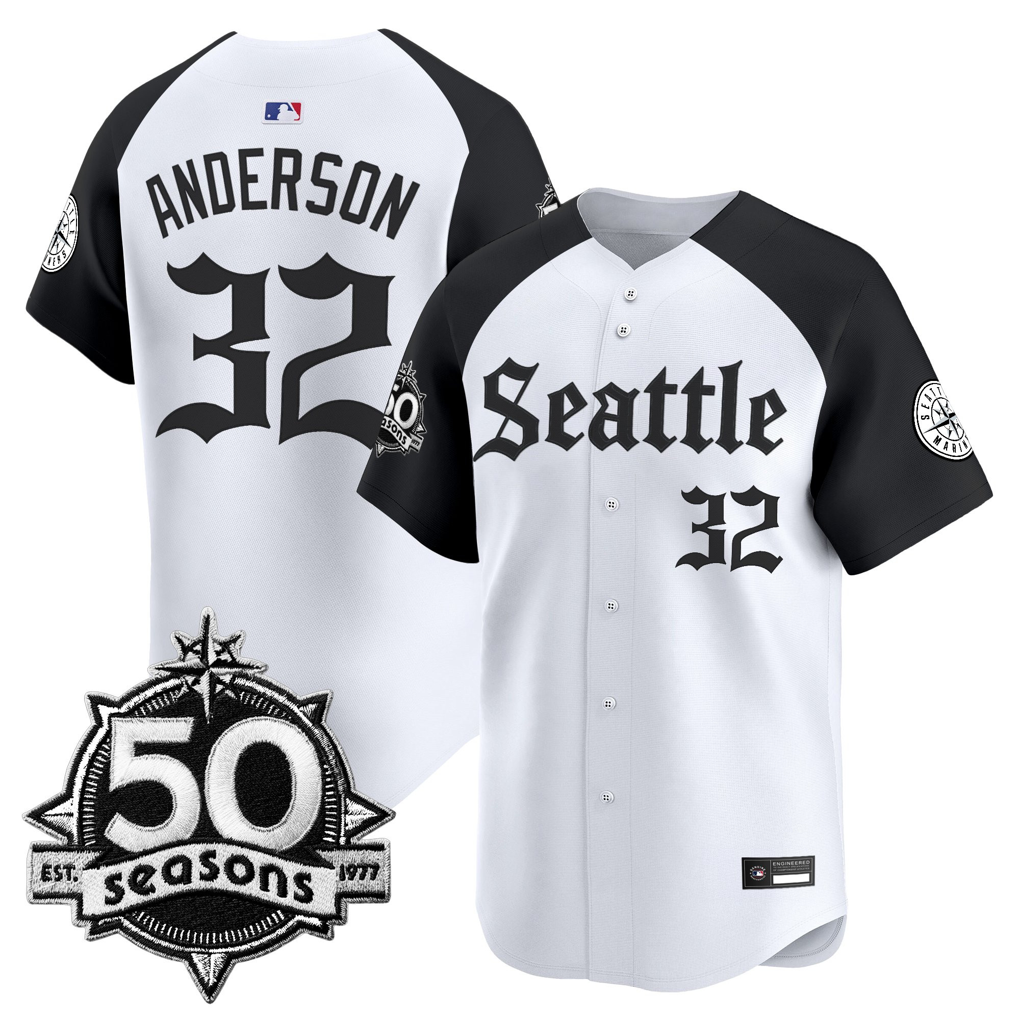 Men’s Seattle Mariners 50 Seasons Patch Vapor Premier Limited Jersey – Gothic Edition – All Stitched