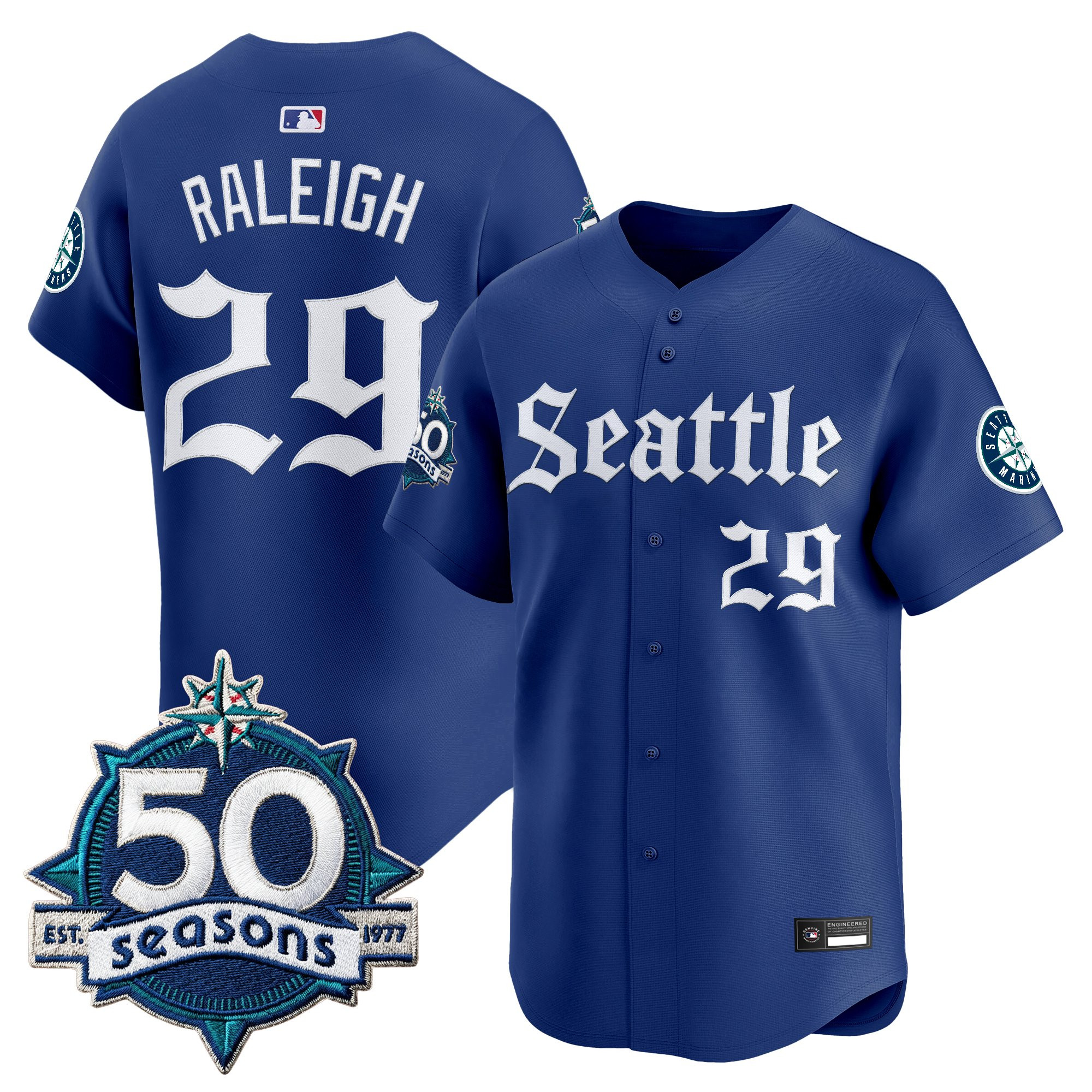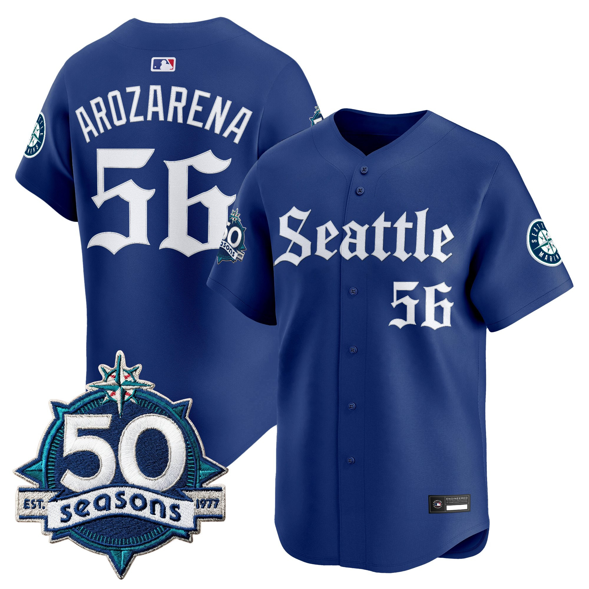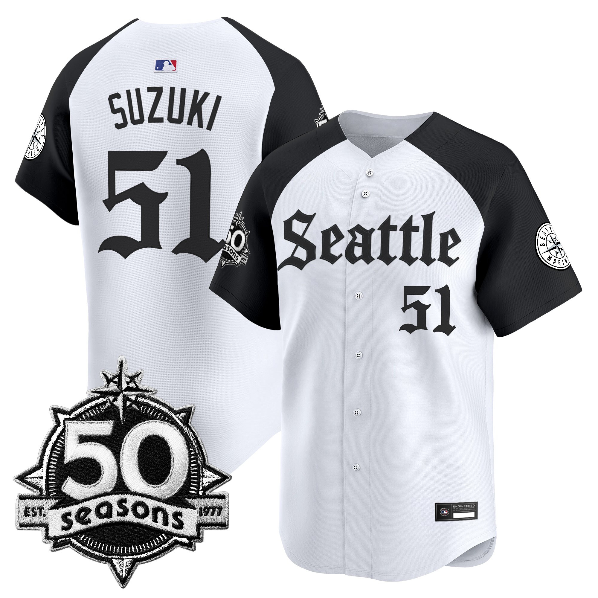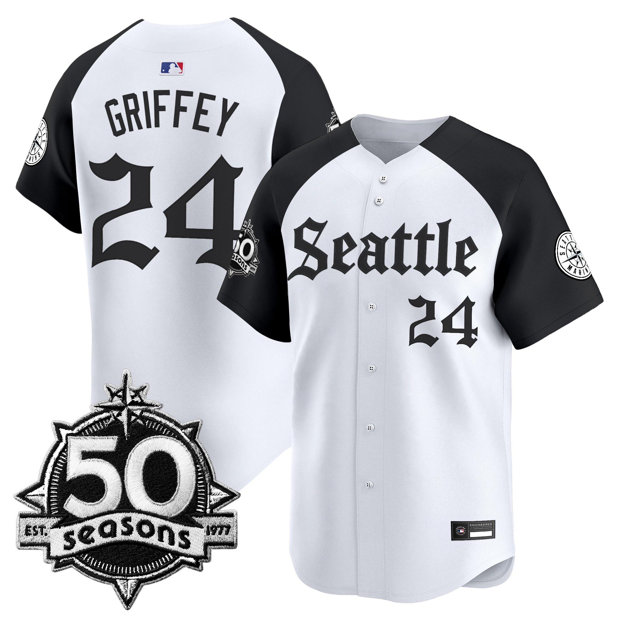 Men’s Seattle Mariners 50 Seasons Patch Vapor Premier Limited Jersey – Gothic Edition – All Stitched
