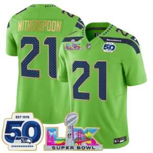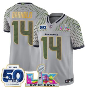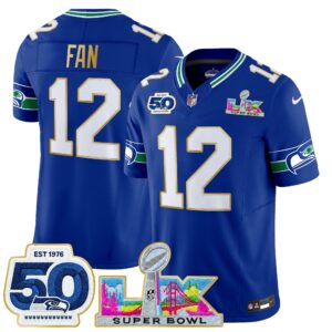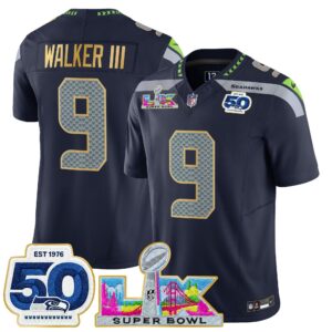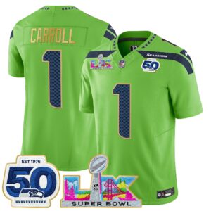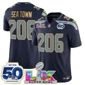 Seattle Seahawks “Super Bowl LX & 50th Patch” Gold Trim Vapor Limited Custom Jersey – All Stitched