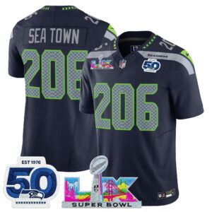 Seattle Seahawks “Super Bowl LX & 50th Patch” Gold Trim Vapor Limited Custom Jersey – All Stitched