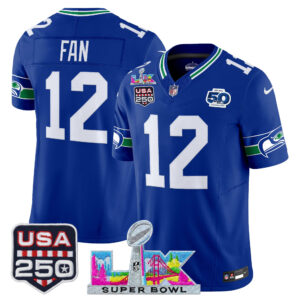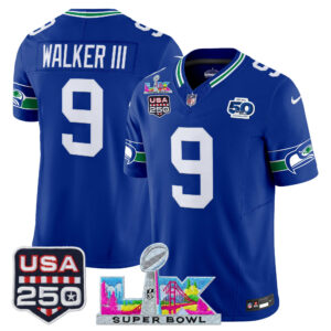 Men’s Seattle Seahawks “Super Bowl LX & United States 250th Anniversary Patch” Vapor Limited Jersey – All Stitched