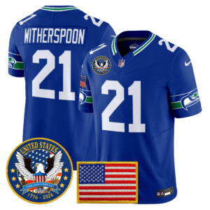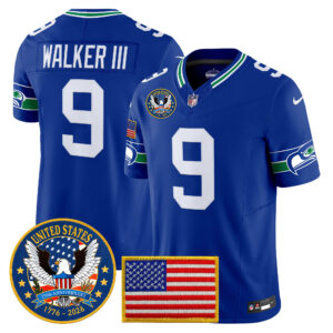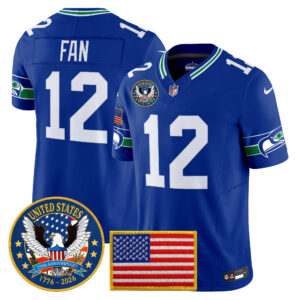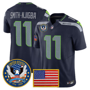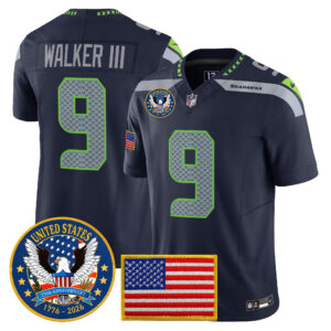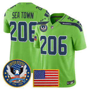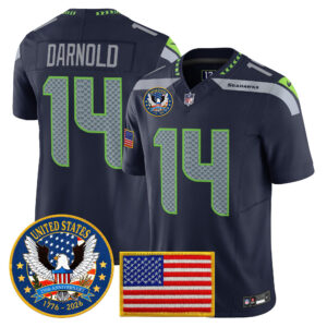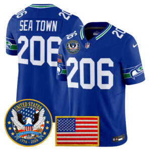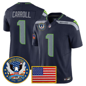 Men’s Seattle Seahawks “United States 250th Anniversary Patch” Vapor Limited Jersey – All Stitched