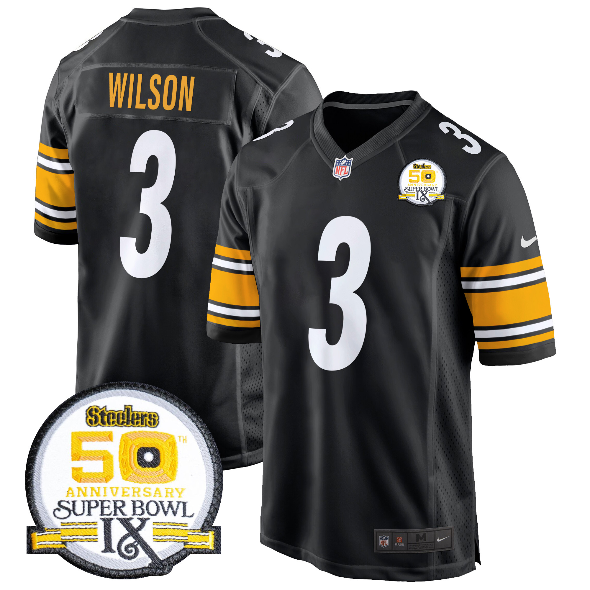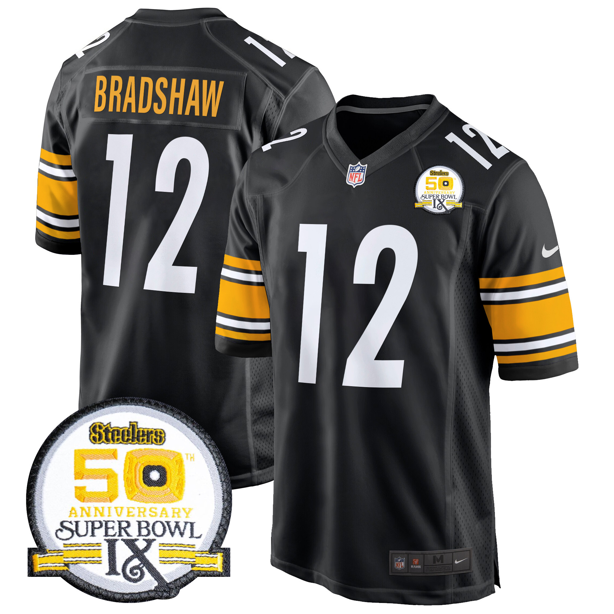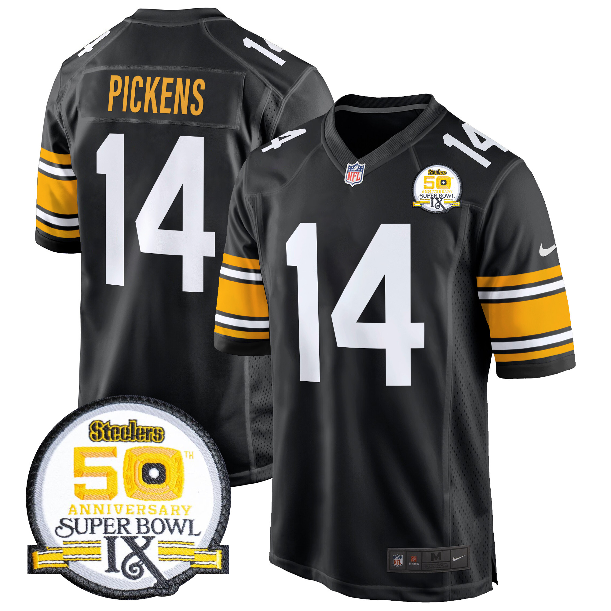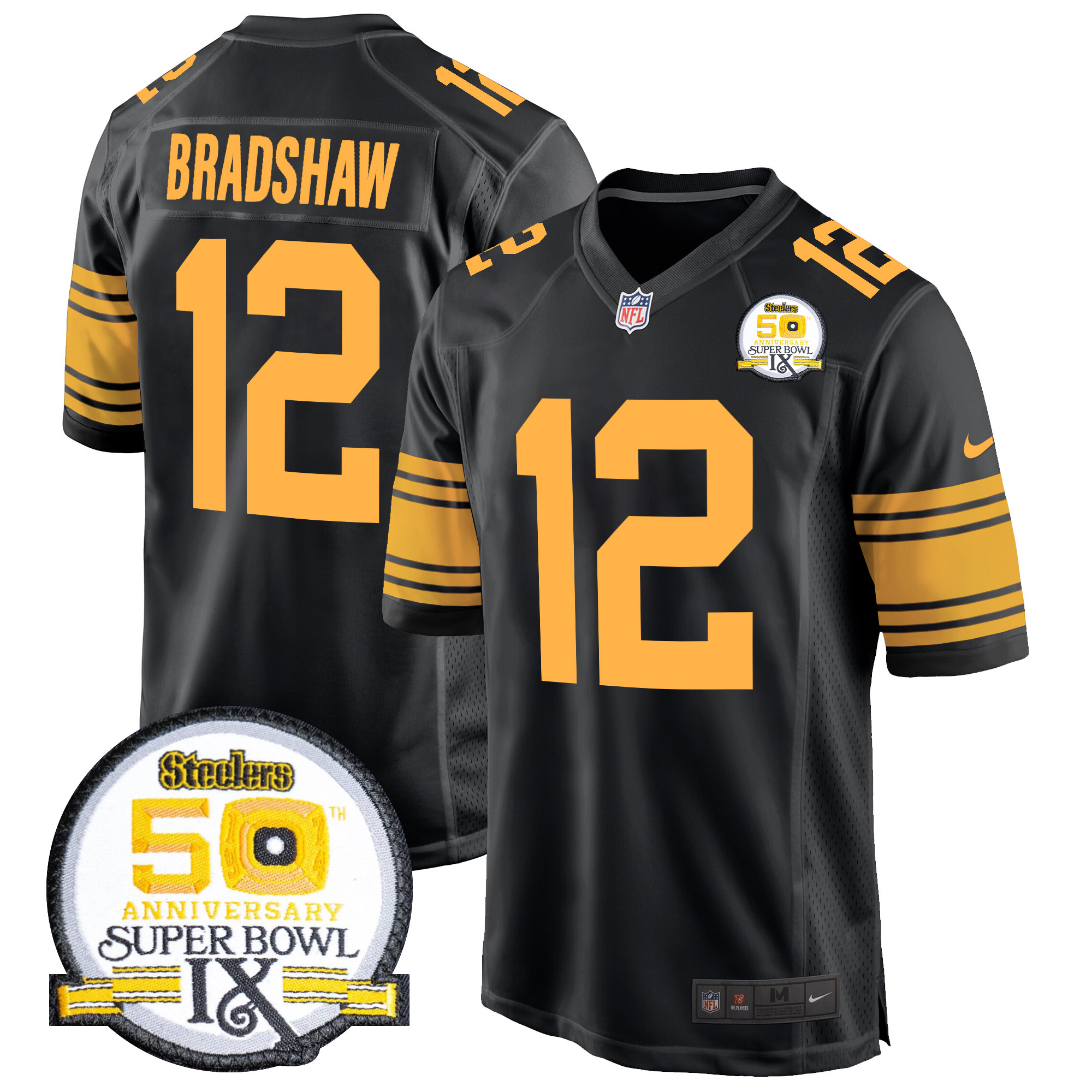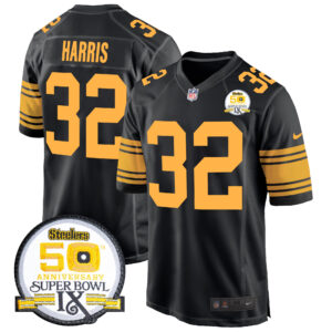Men’s Steelers 50th Anniversary Of Super Bowl IX Patch Game Jersey – All Stitched