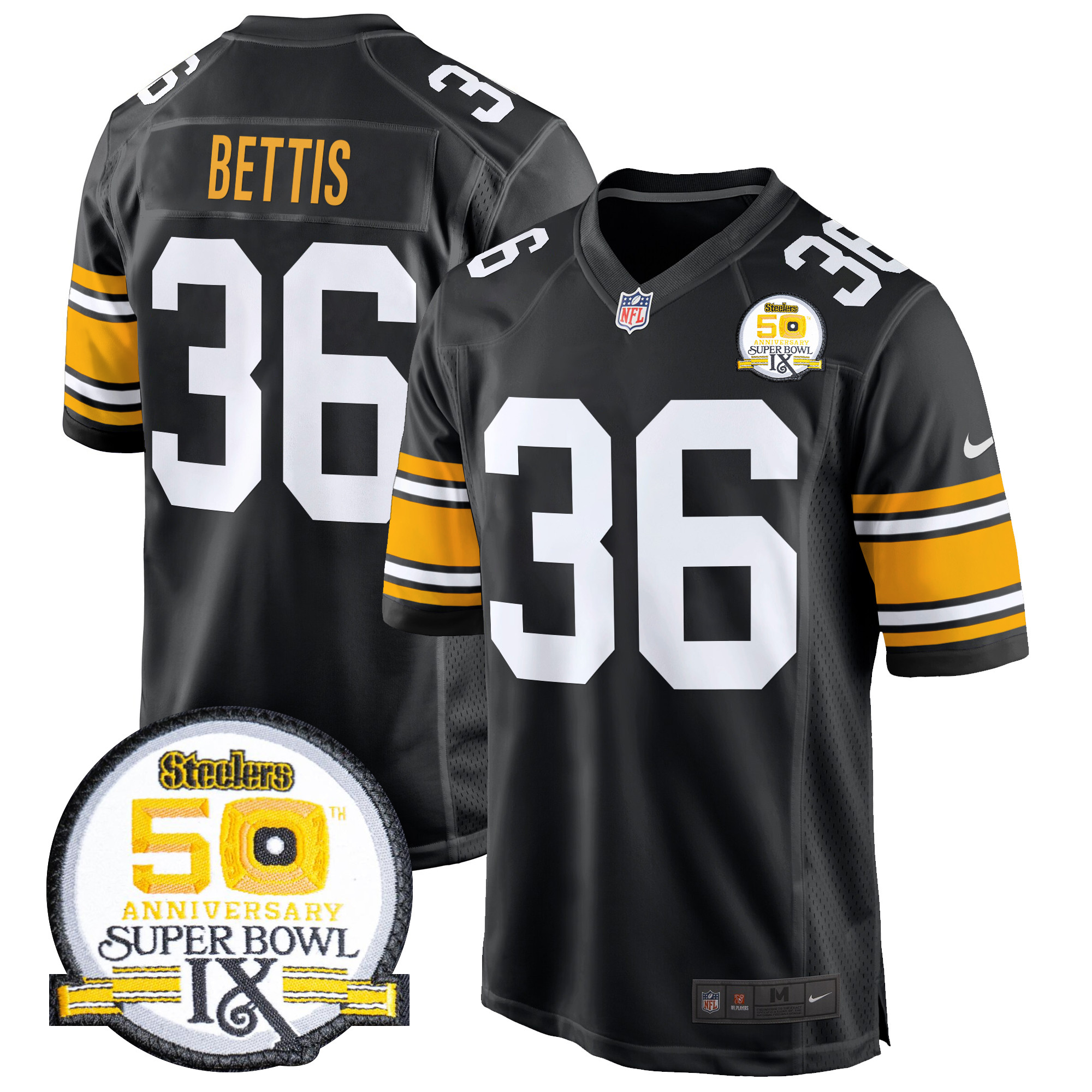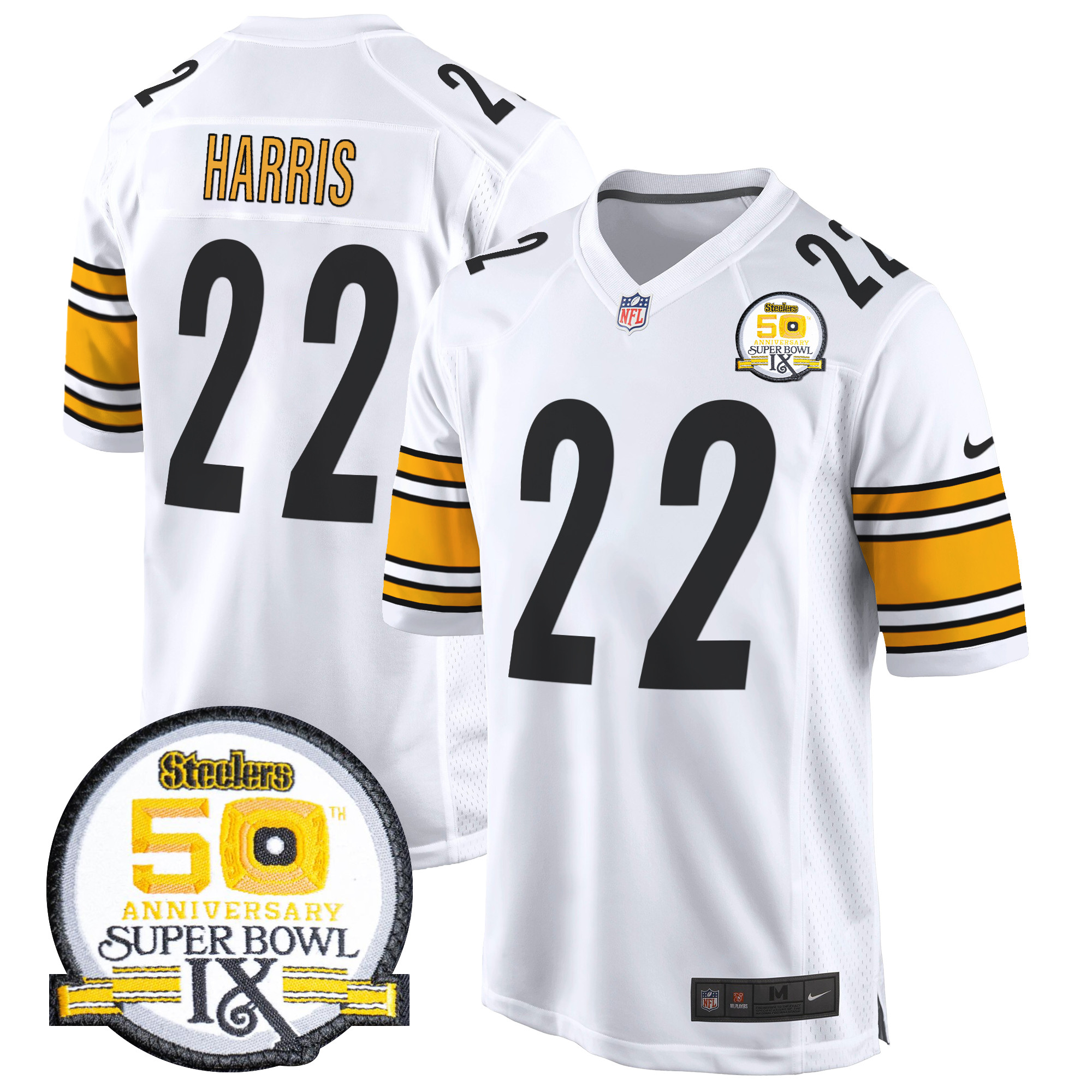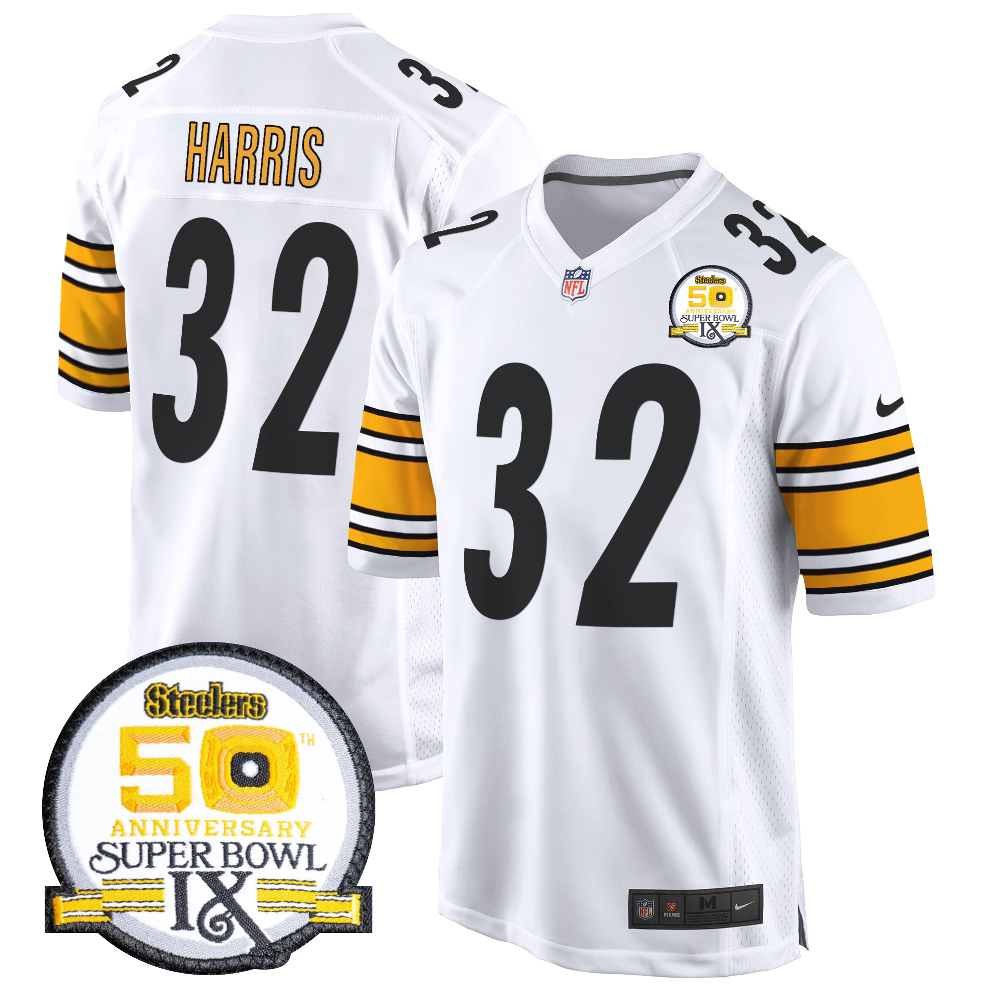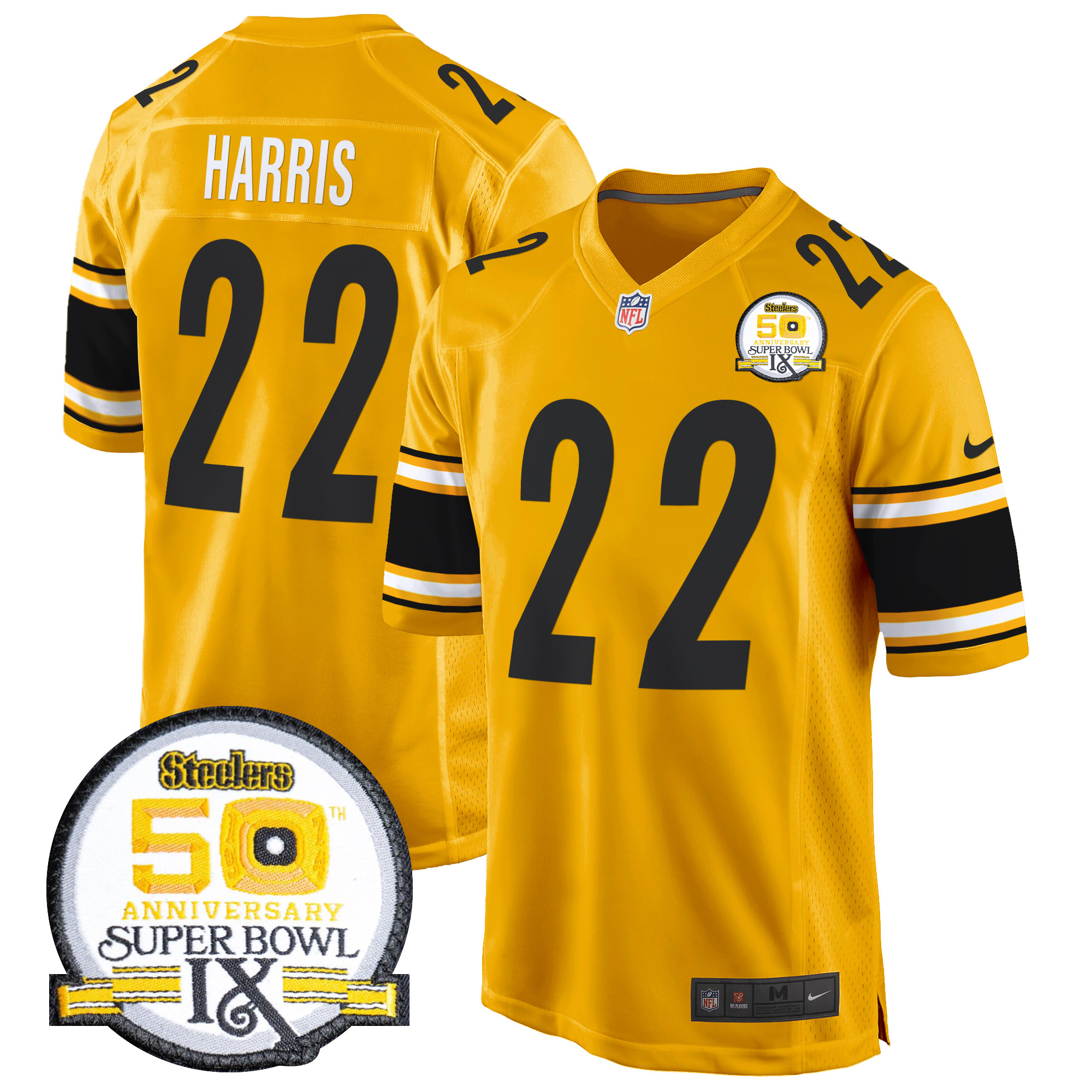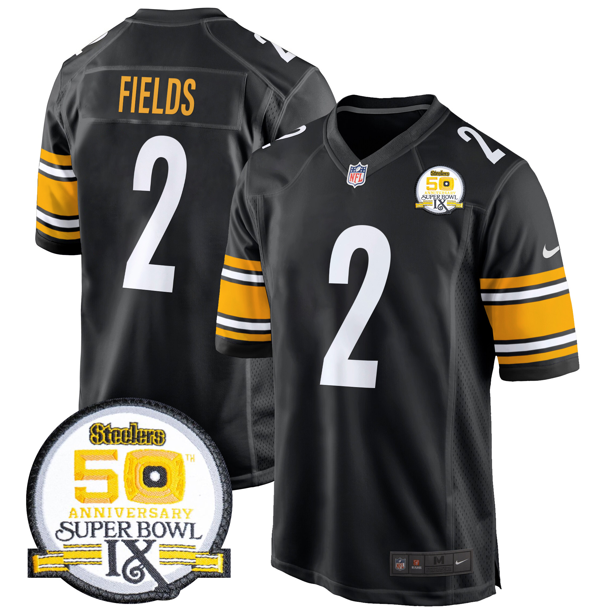 Men’s Steelers 50th Anniversary Of Super Bowl IX Patch Game Jersey – All Stitched