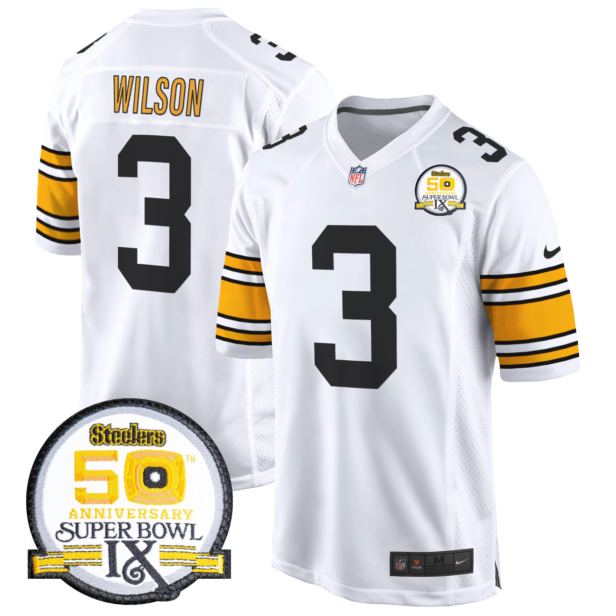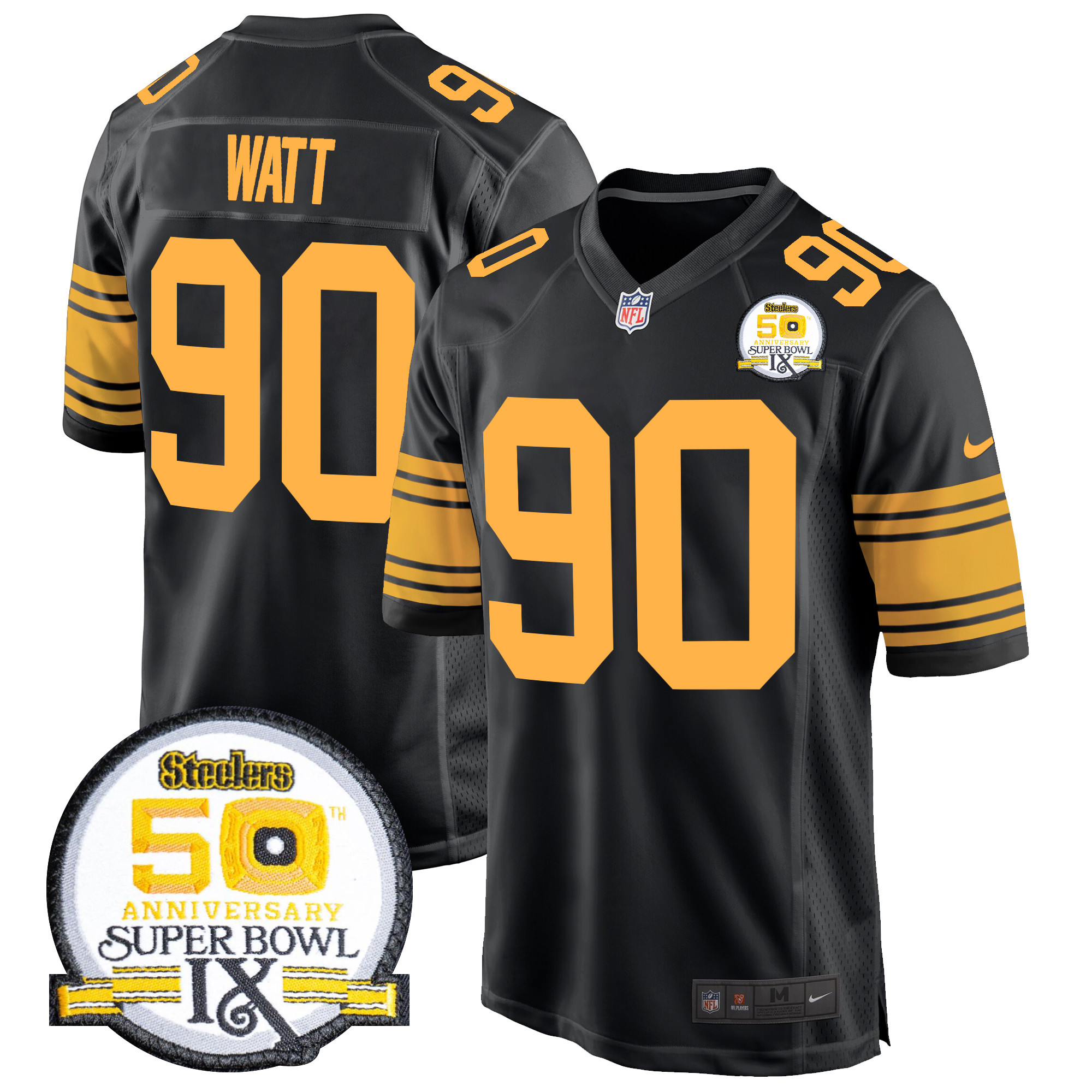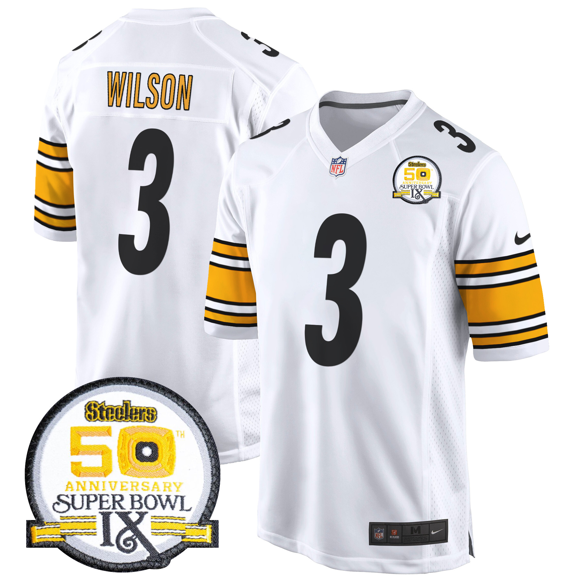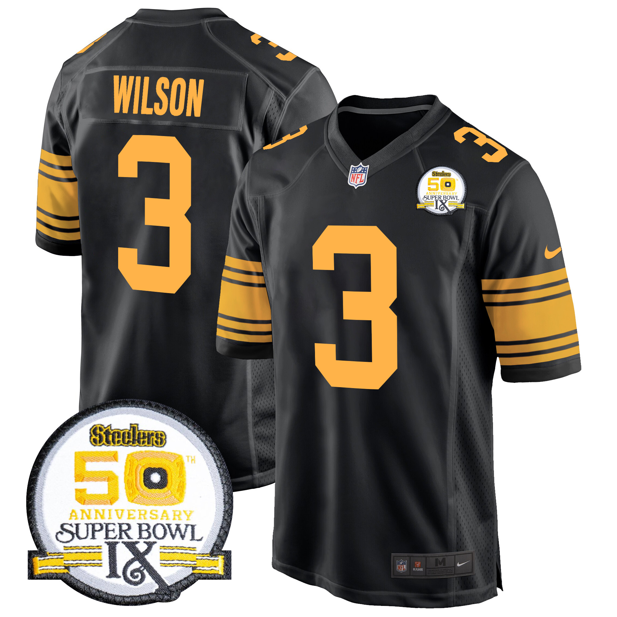 Men’s Steelers 50th Anniversary Of Super Bowl IX Patch Game Jersey – All Stitched