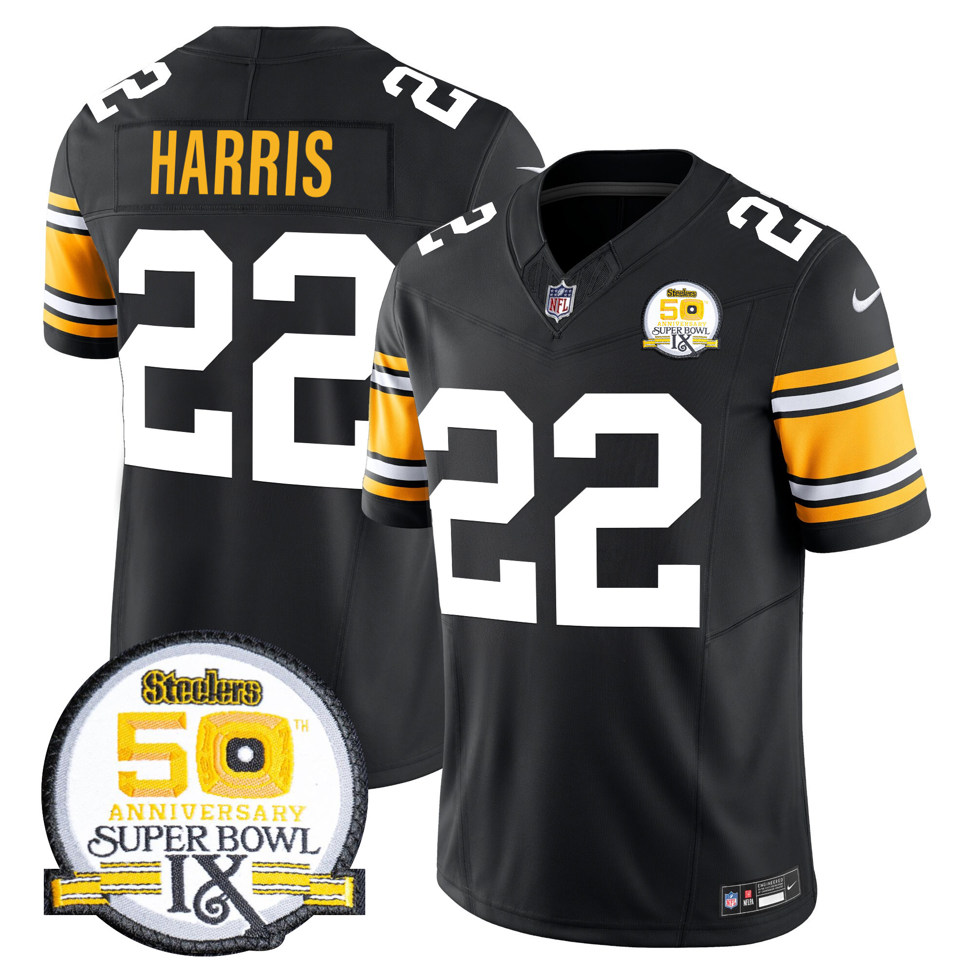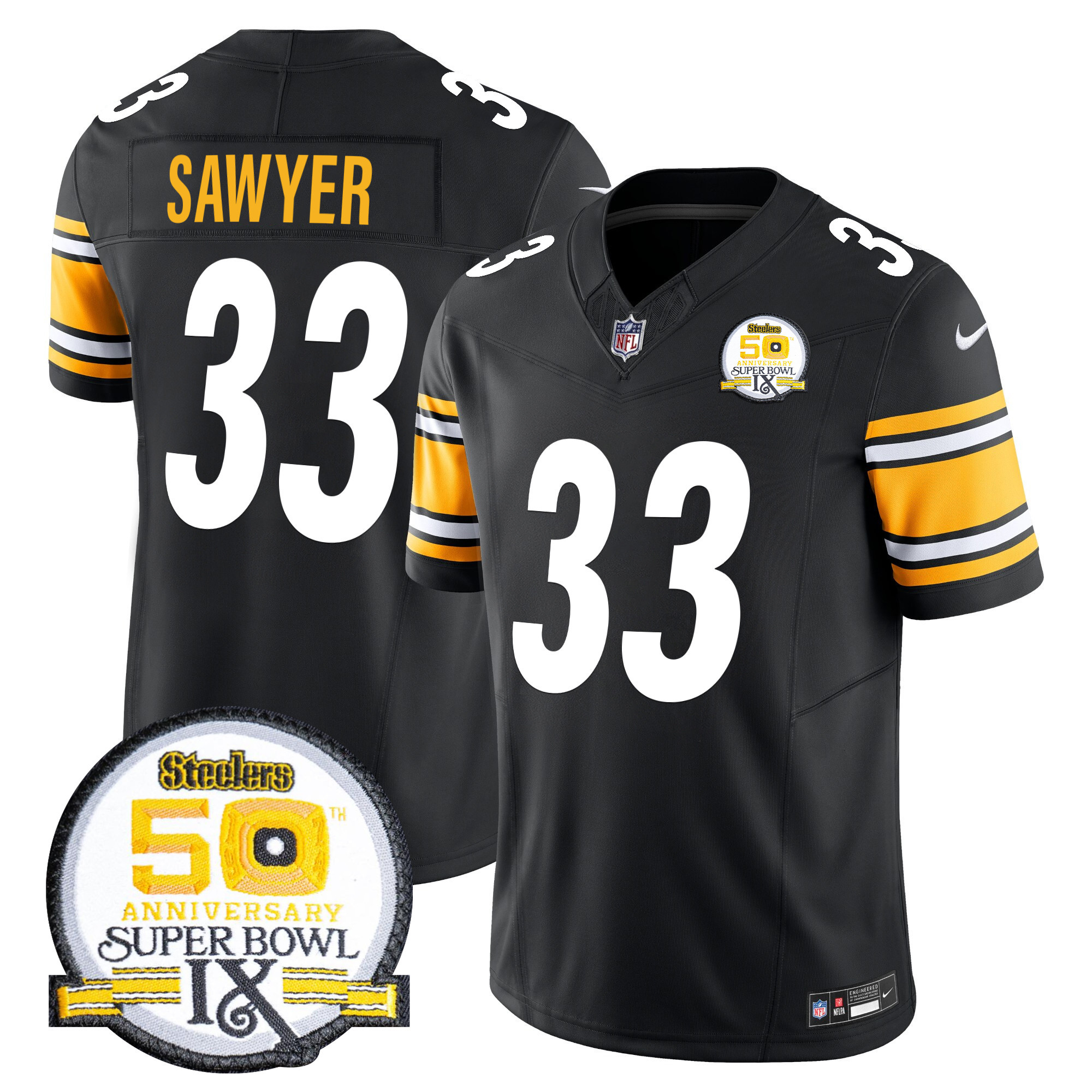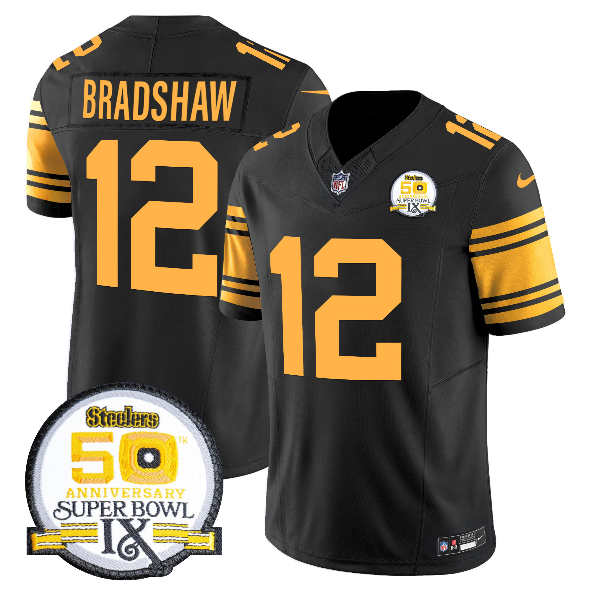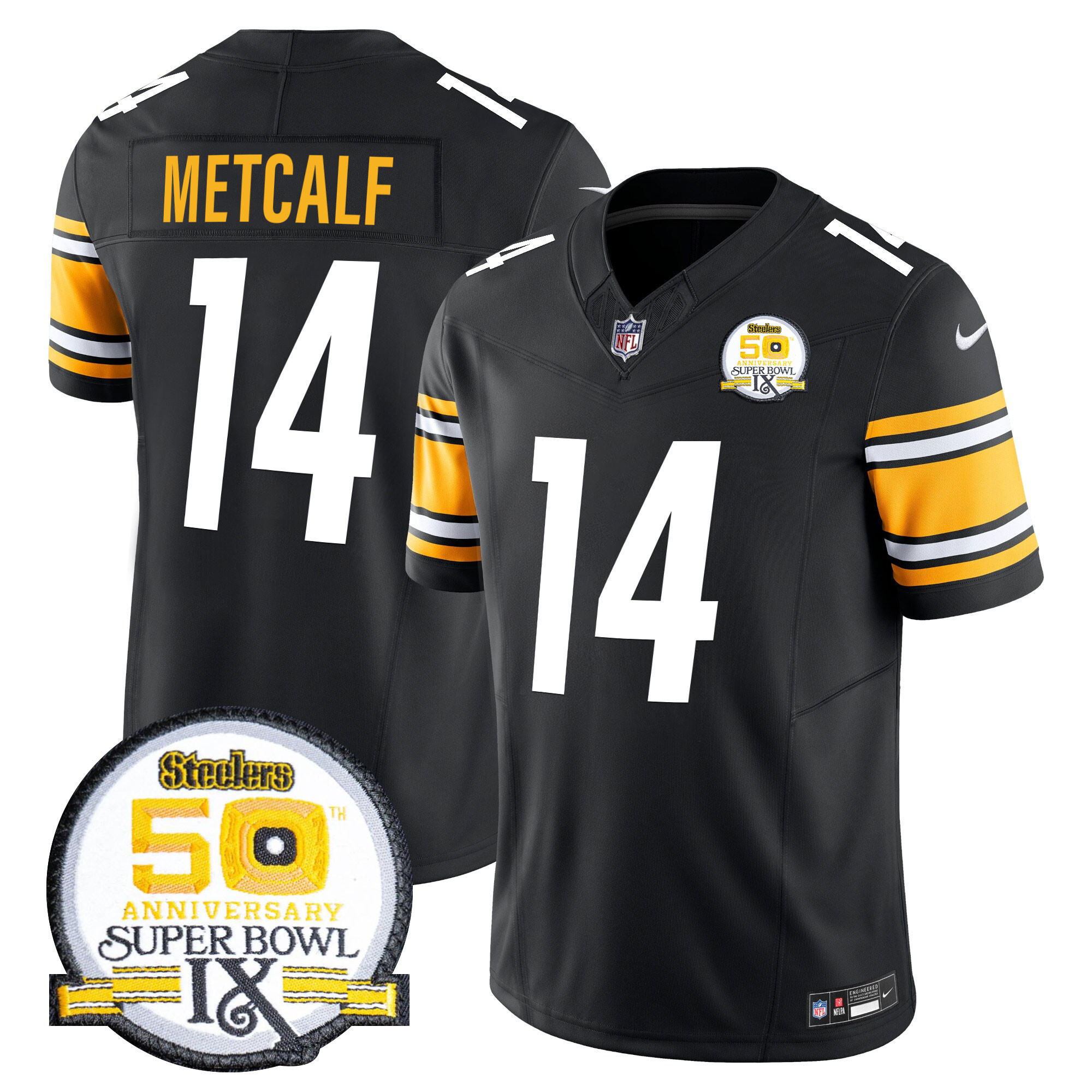 Men’s Steelers 50th Anniversary Of Super Bowl IX Patch Vapor Limited Jersey – All Stitched