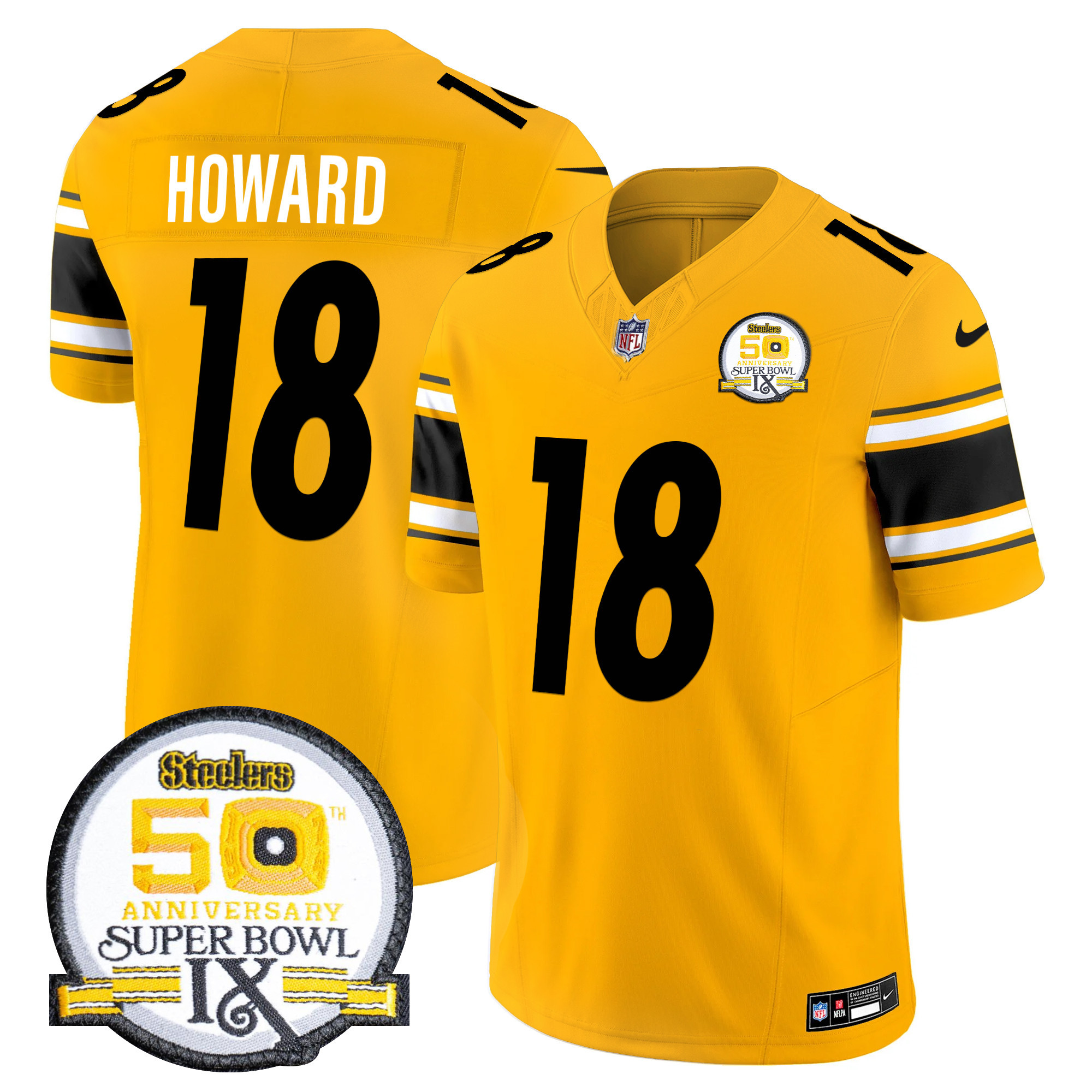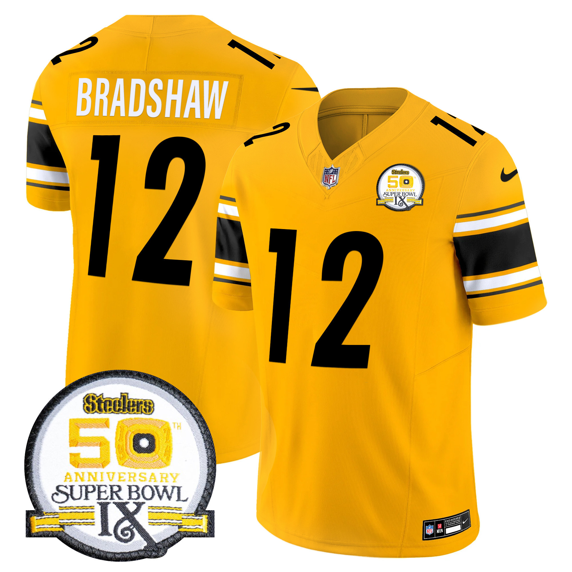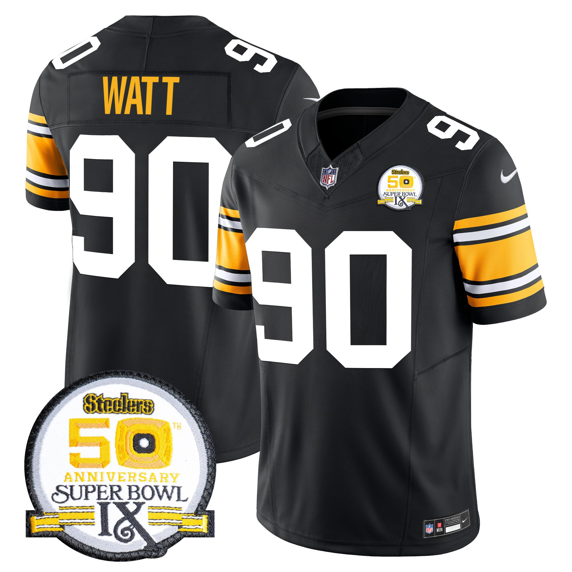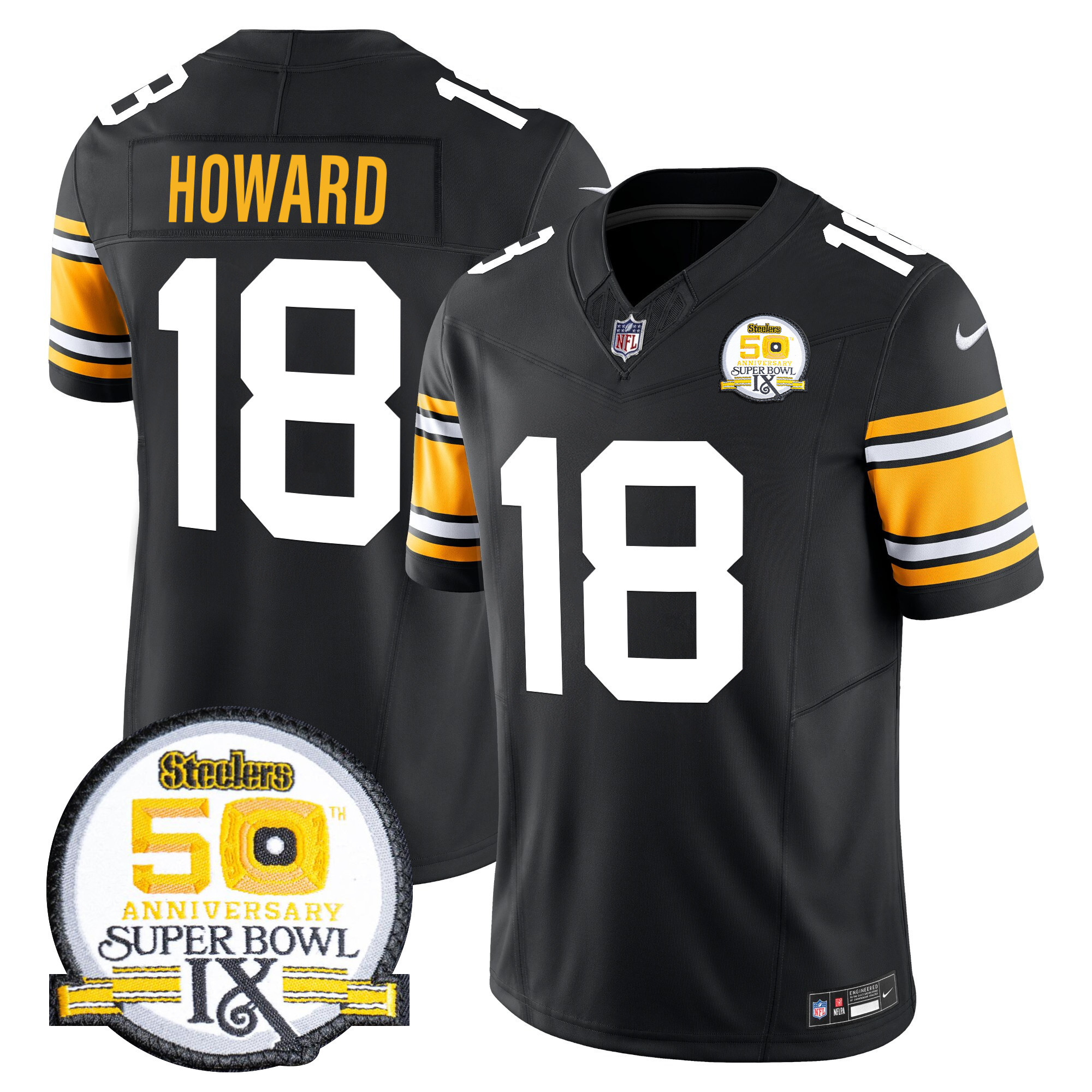 Men’s Steelers 50th Anniversary Of Super Bowl IX Patch Vapor Limited Jersey – All Stitched