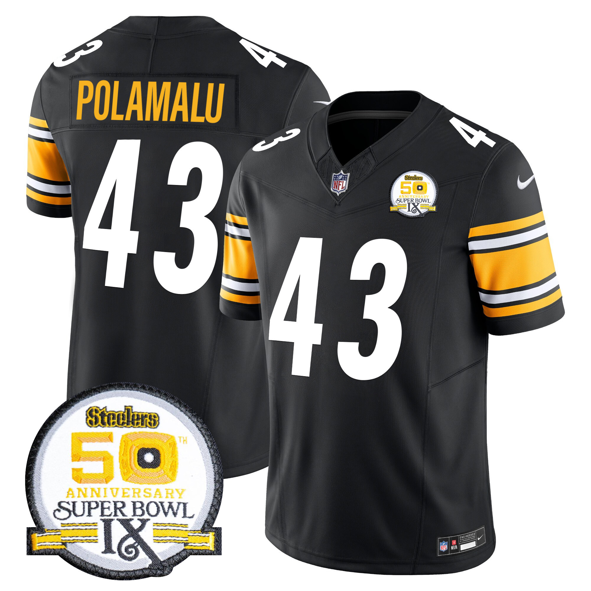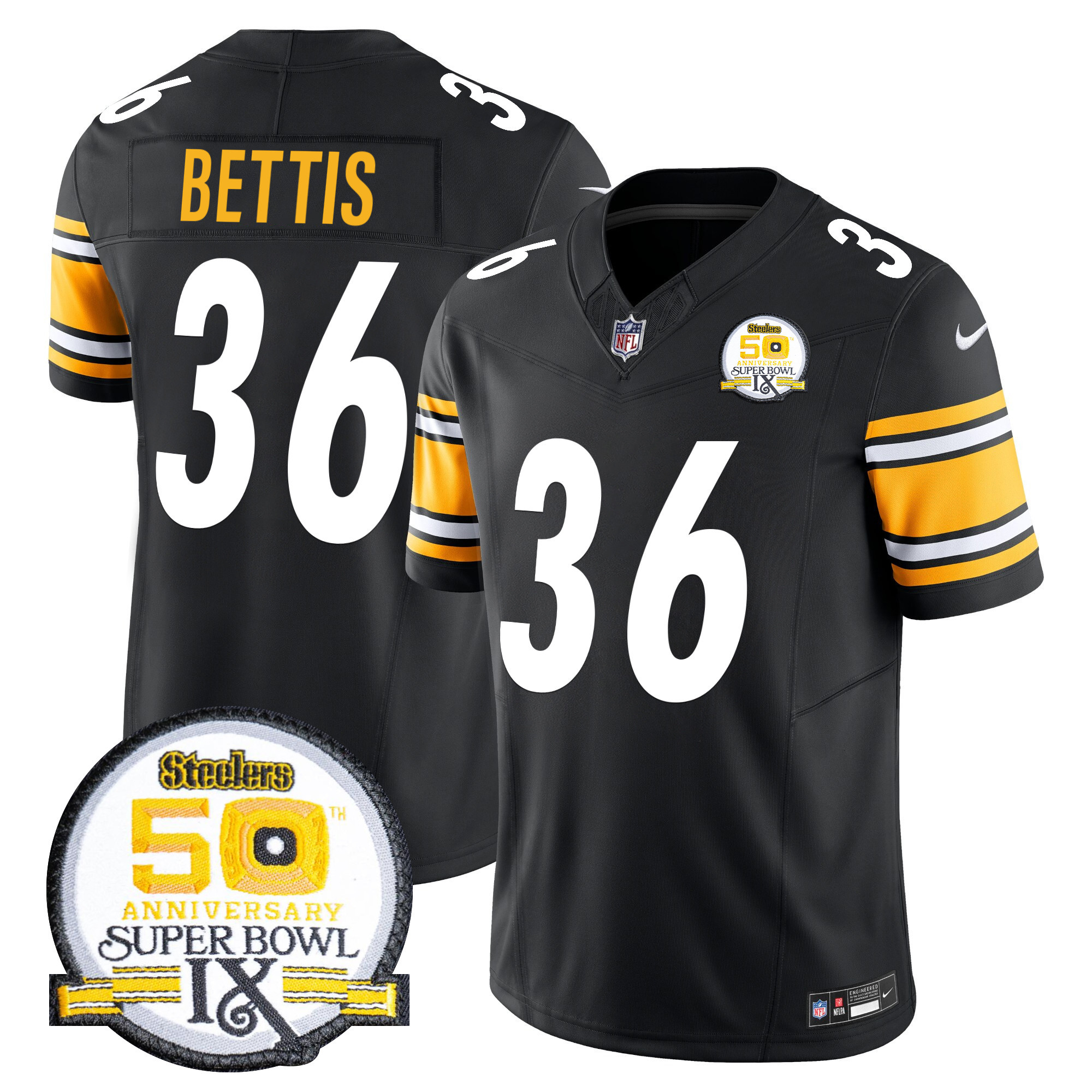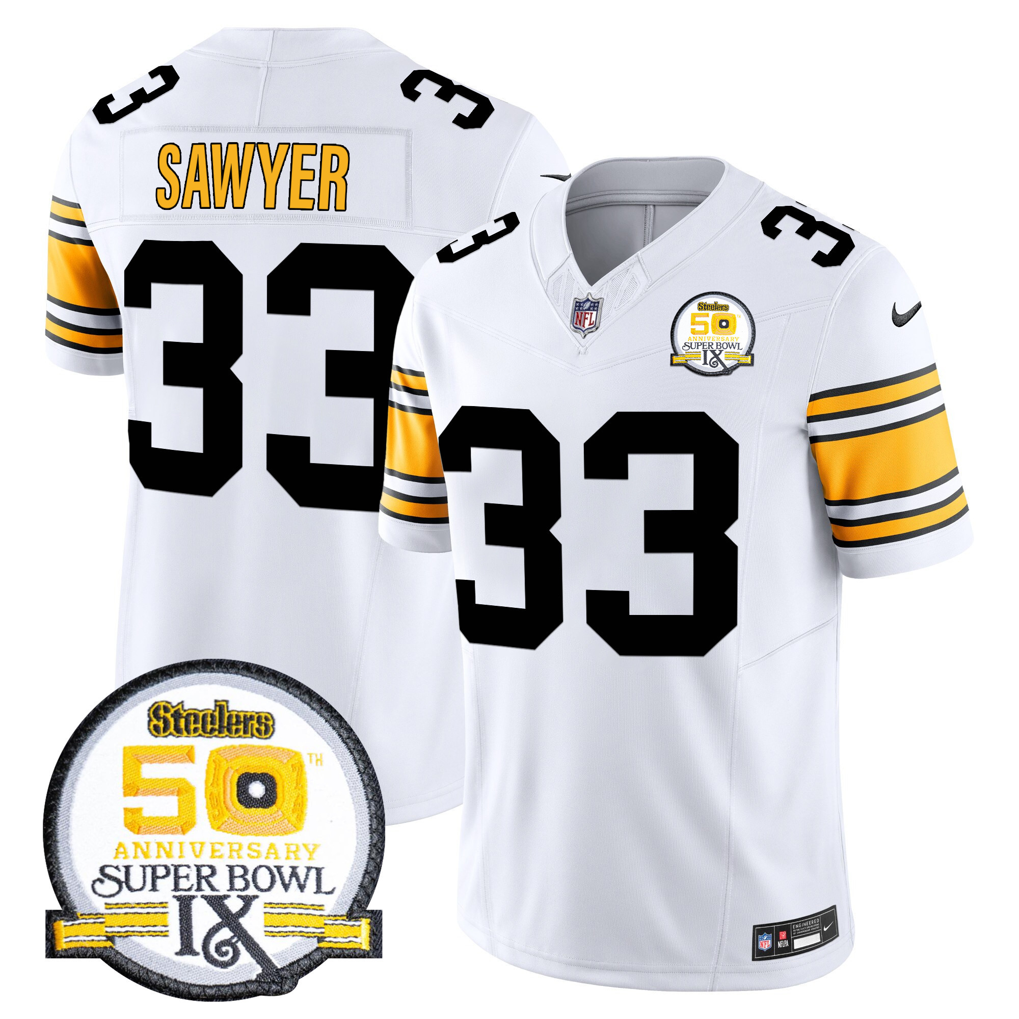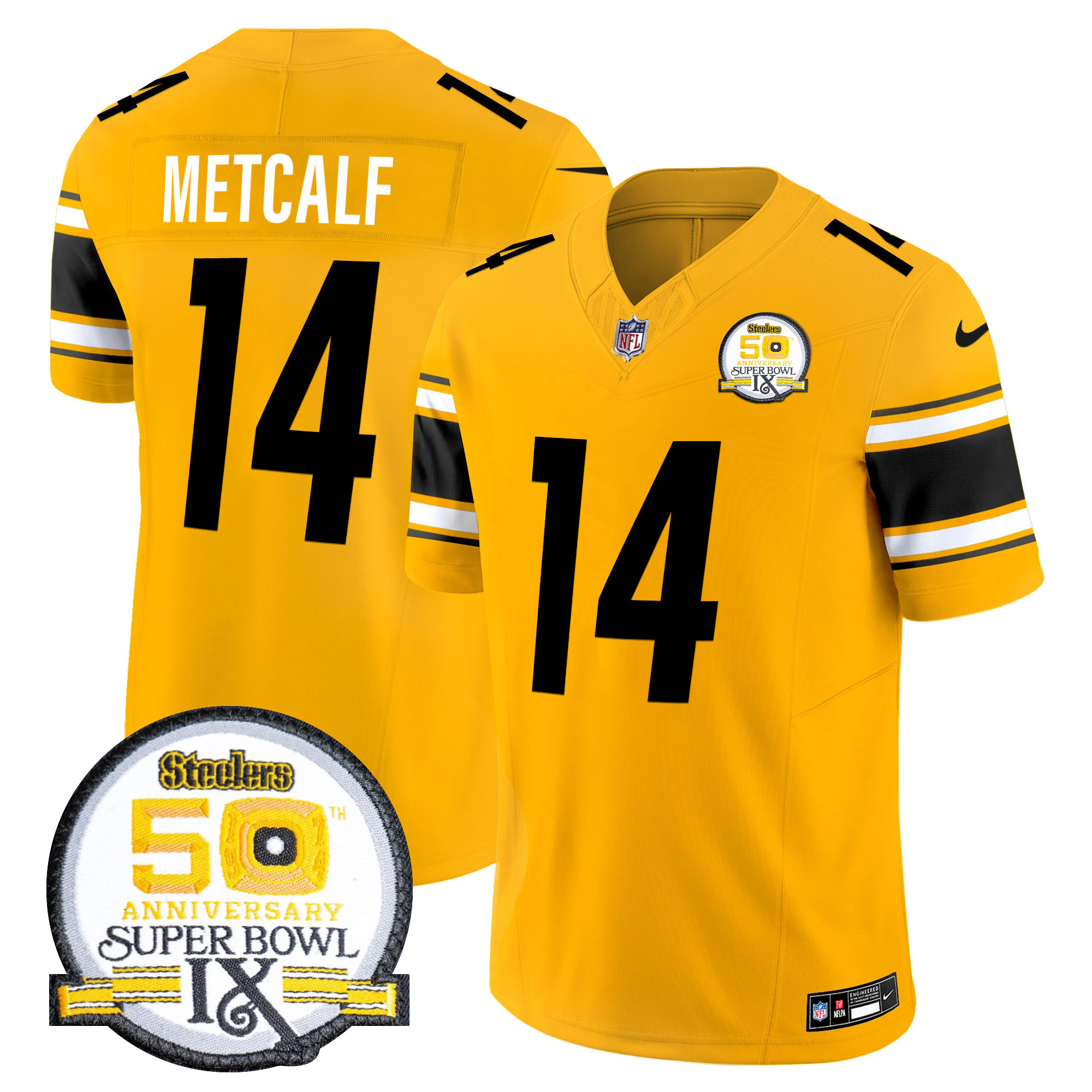 Men’s Steelers 50th Anniversary Of Super Bowl IX Patch Vapor Limited Jersey – All Stitched