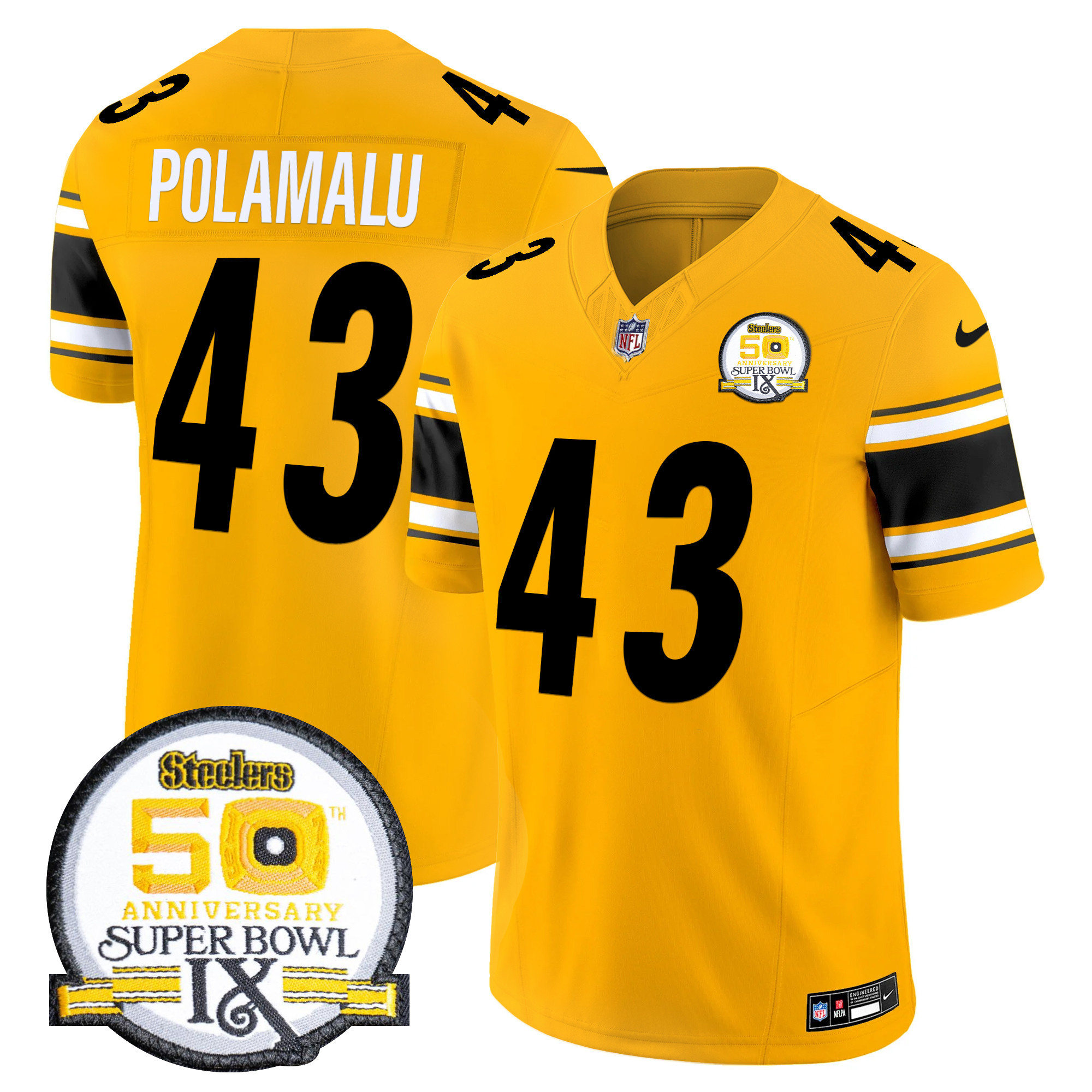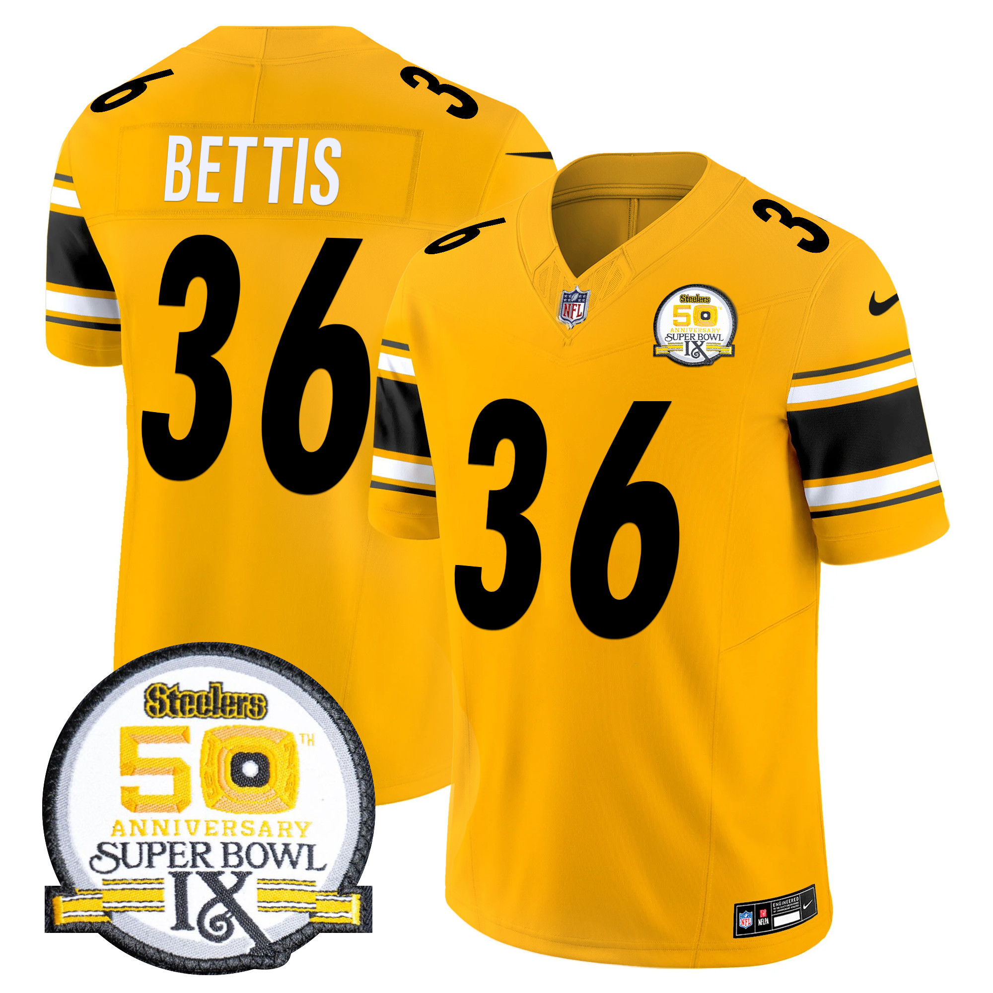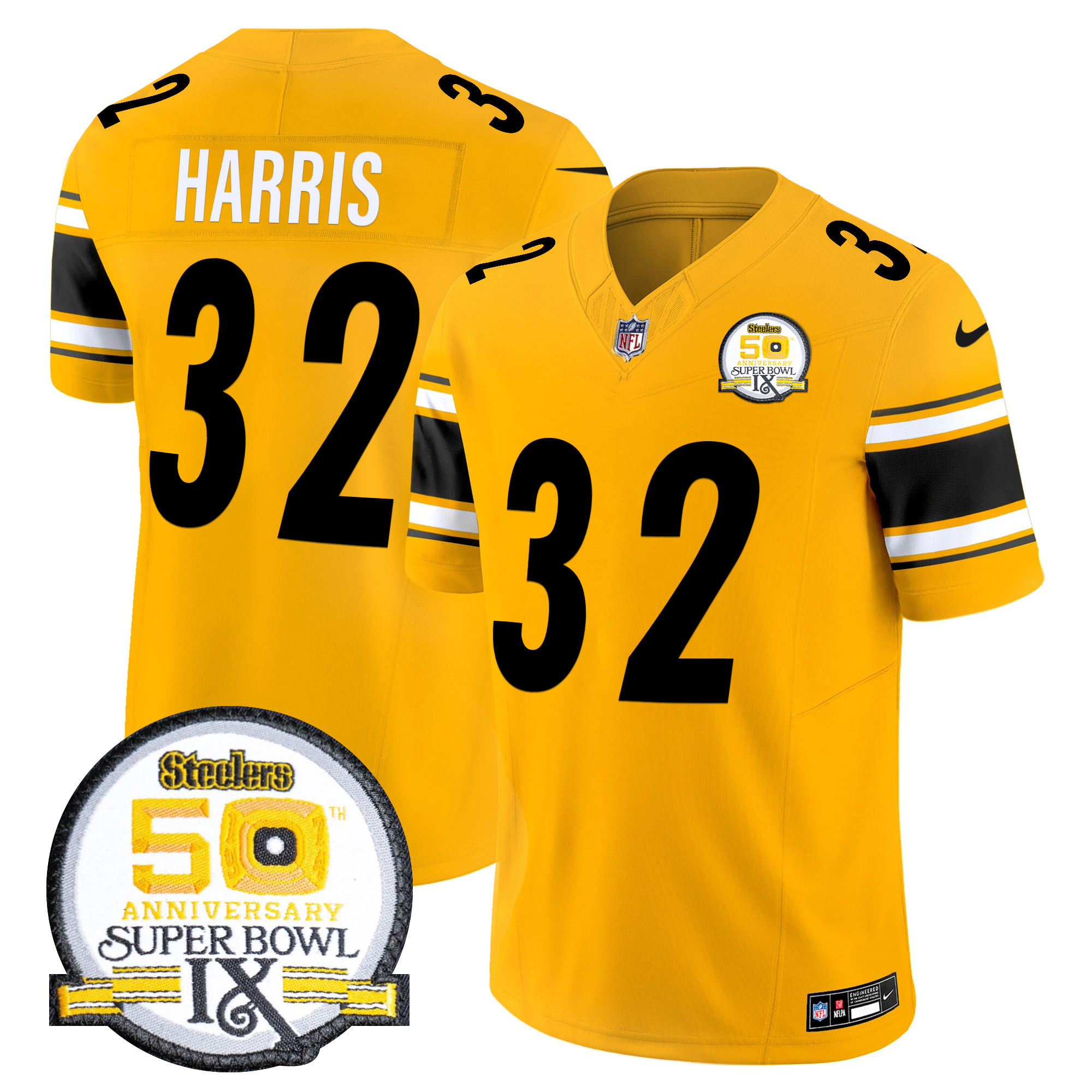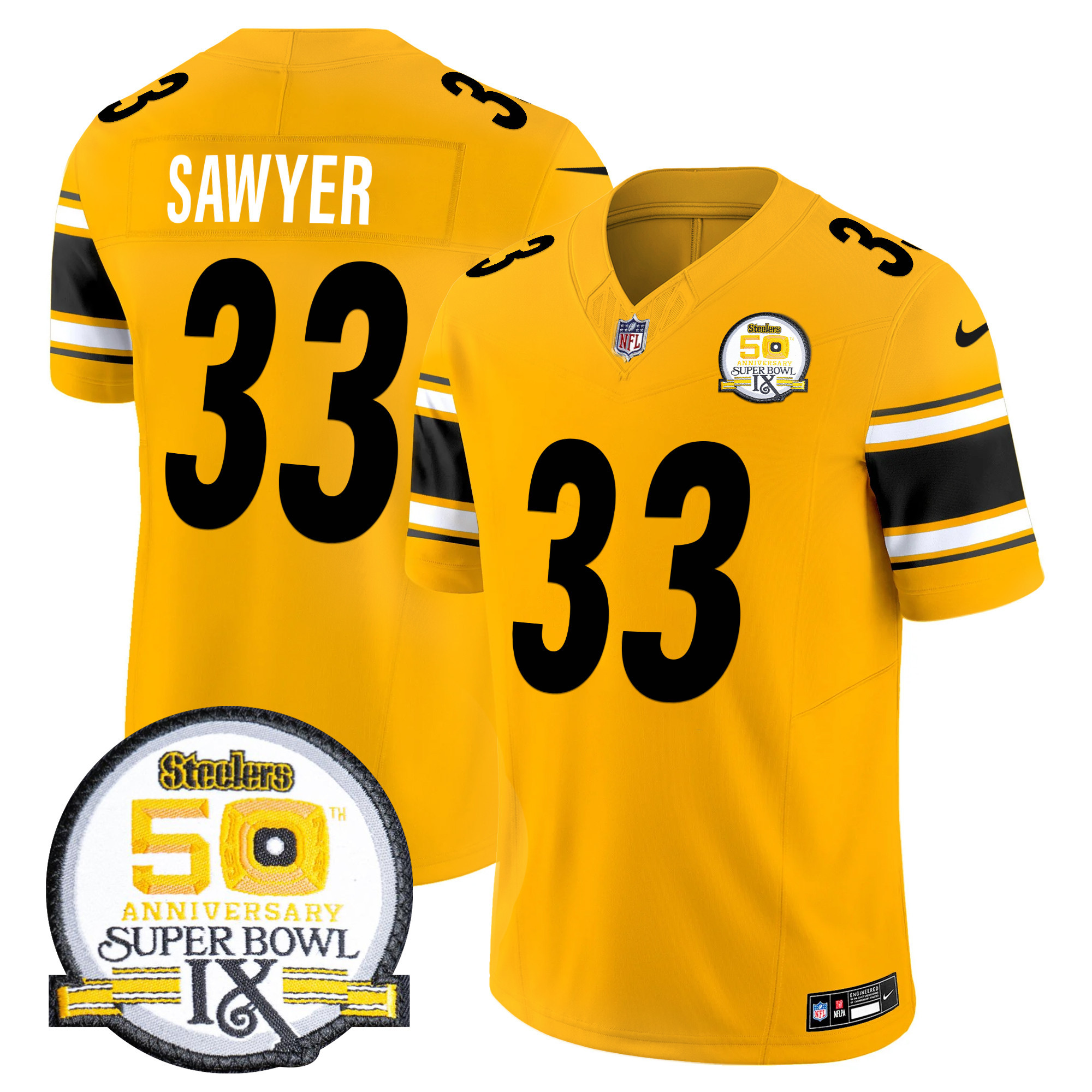 Men’s Steelers 50th Anniversary Of Super Bowl IX Patch Vapor Limited Jersey – All Stitched