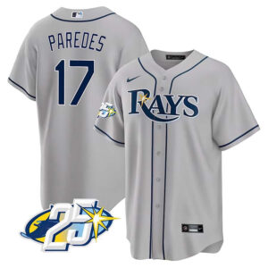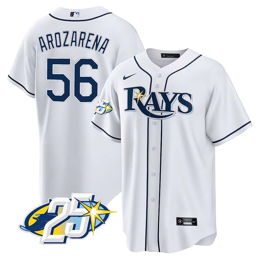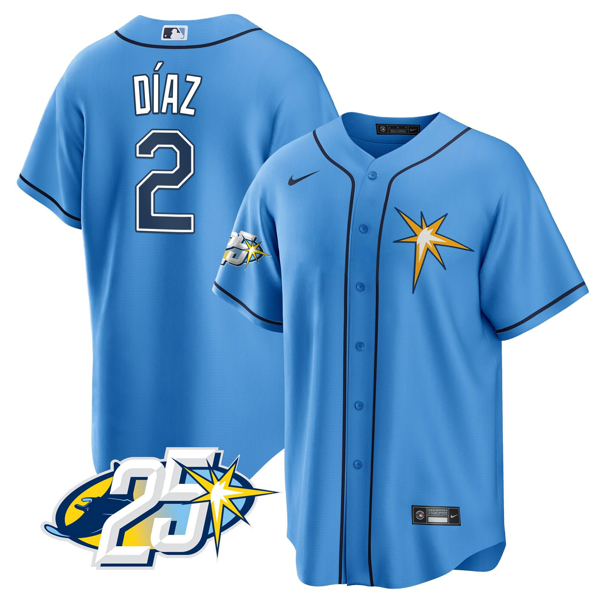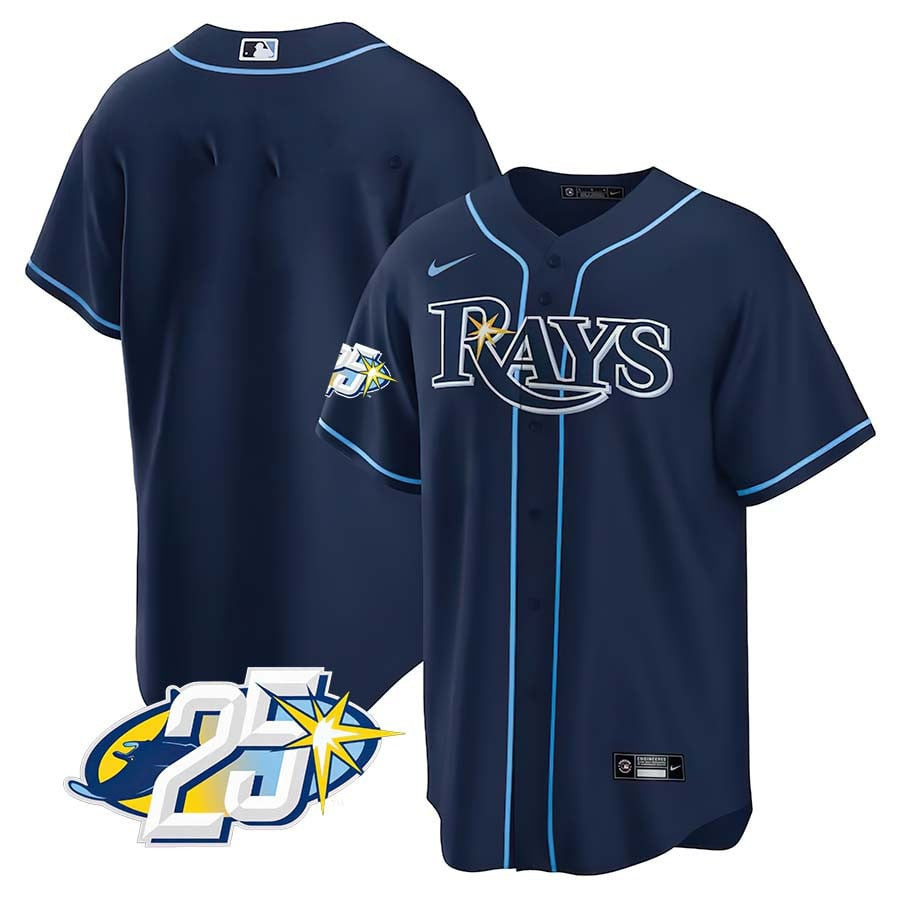 Men’s Tampa Bay Rays 25th Anniversary Patch Cool Base V2 Jersey – All Stitched