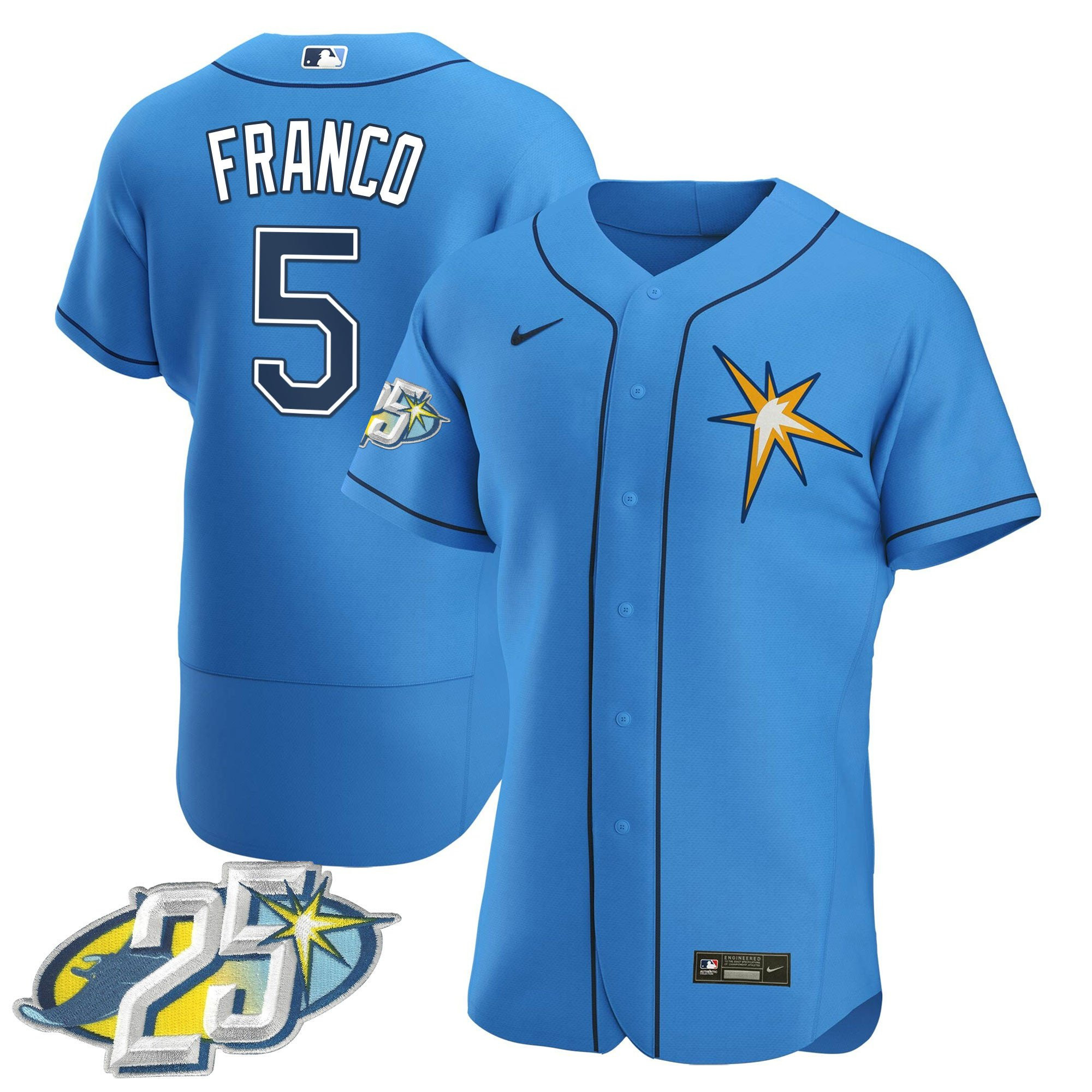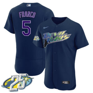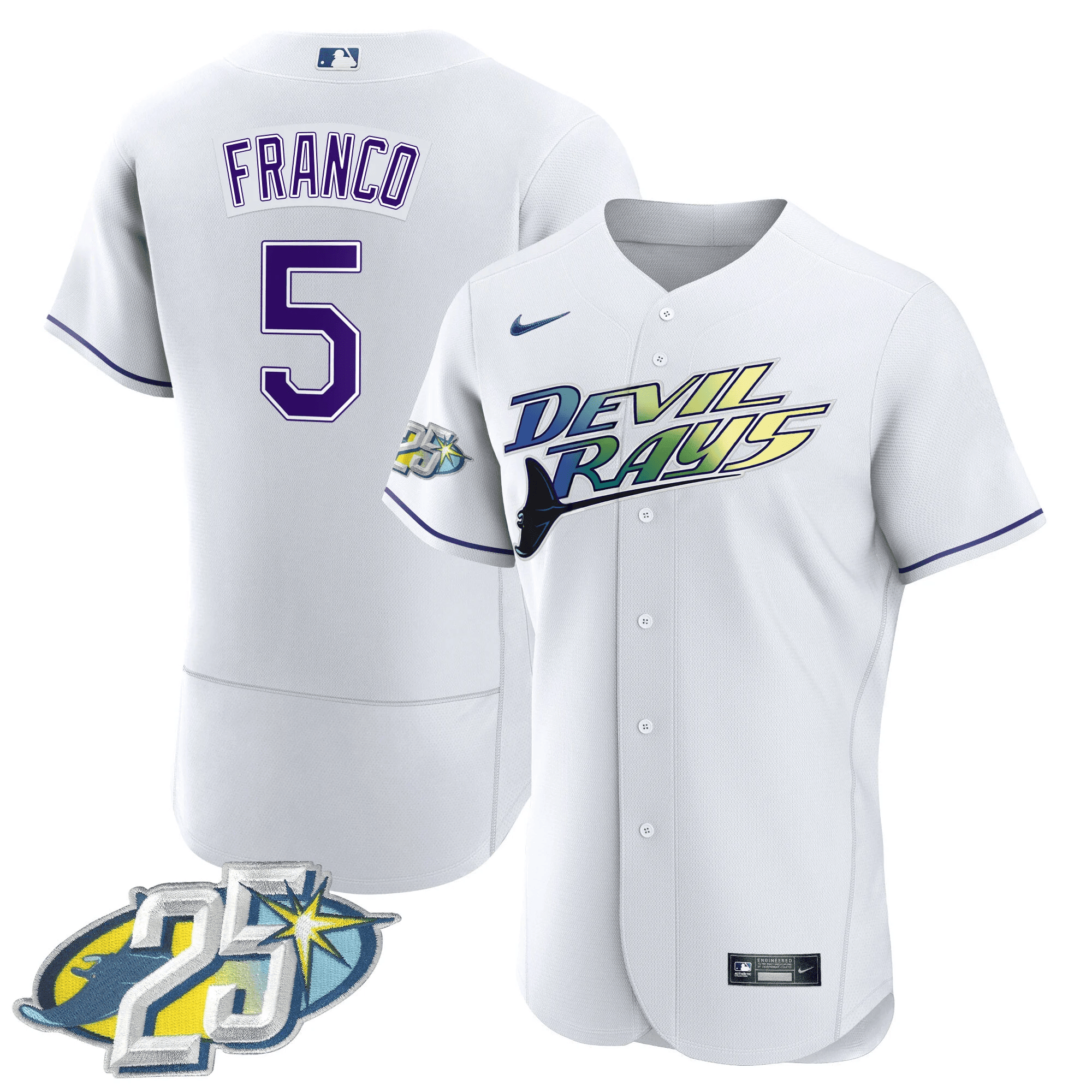 Men’s Tampa Bay Rays 25th Anniversary Patch Flex Base Jersey – All Stitched