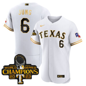 Men’s Texas Rangers 2023 World Series Champions Flex Base Jersey – All Stitched