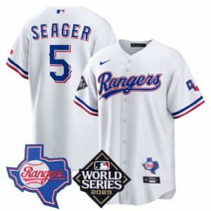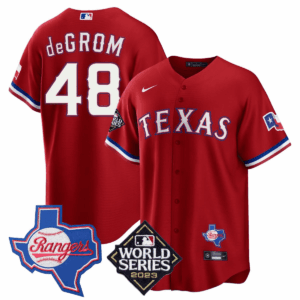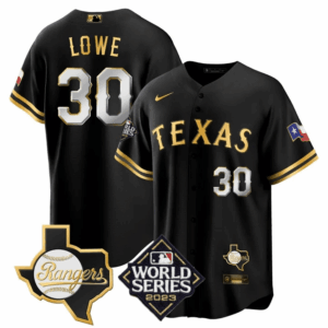 Men’s Texas Rangers 2023 World Series & Texas State Patch Cool Base Gold Jersey V2 – All Stitched