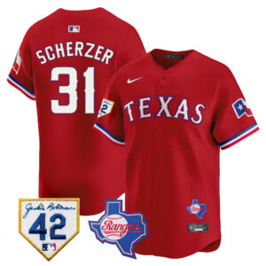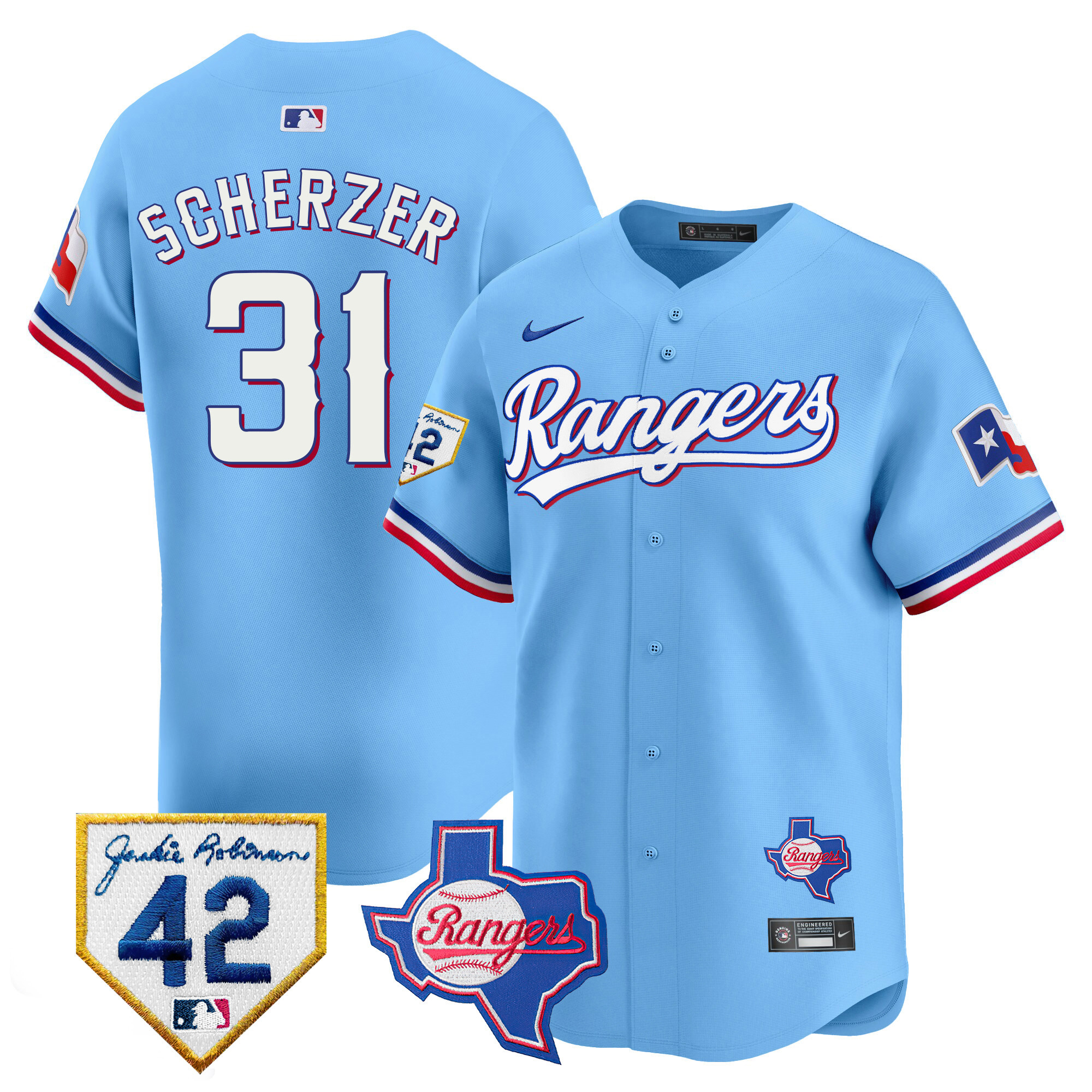 Men’s Texas Rangers 2024 Jackie Robinson Patch Vapor Premier Limited Jersey – All Stitched