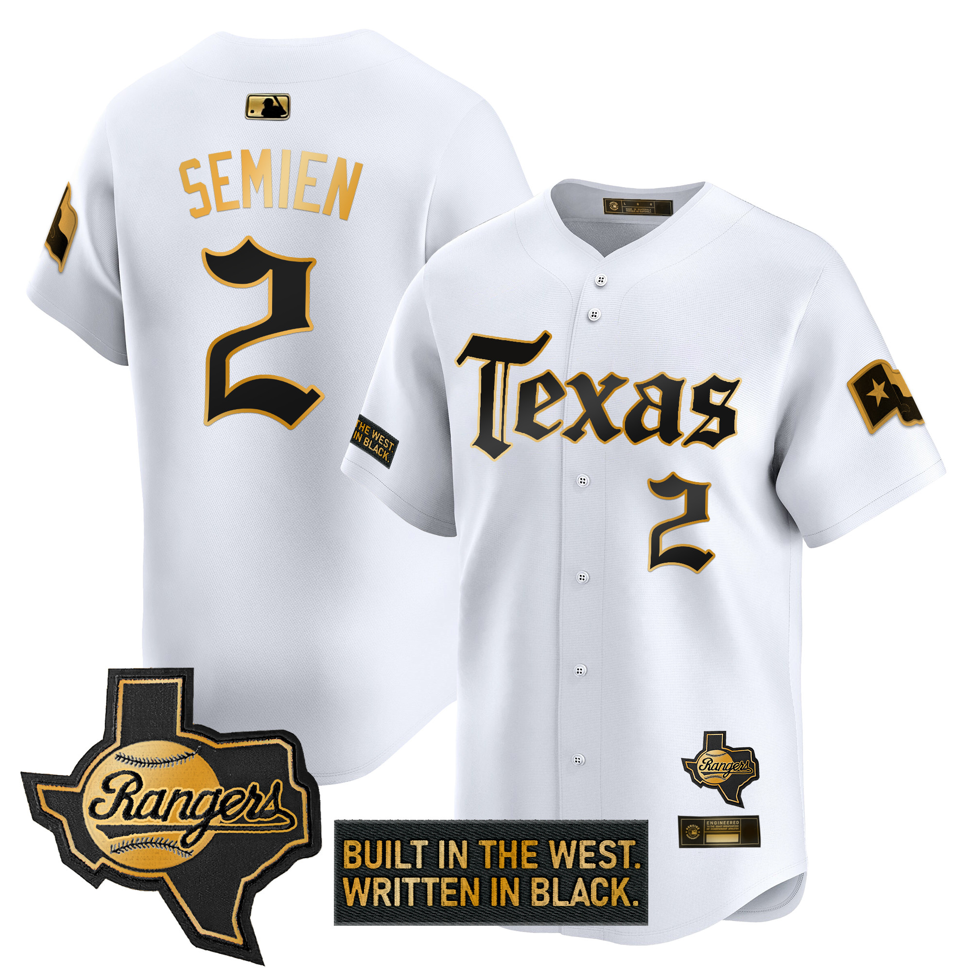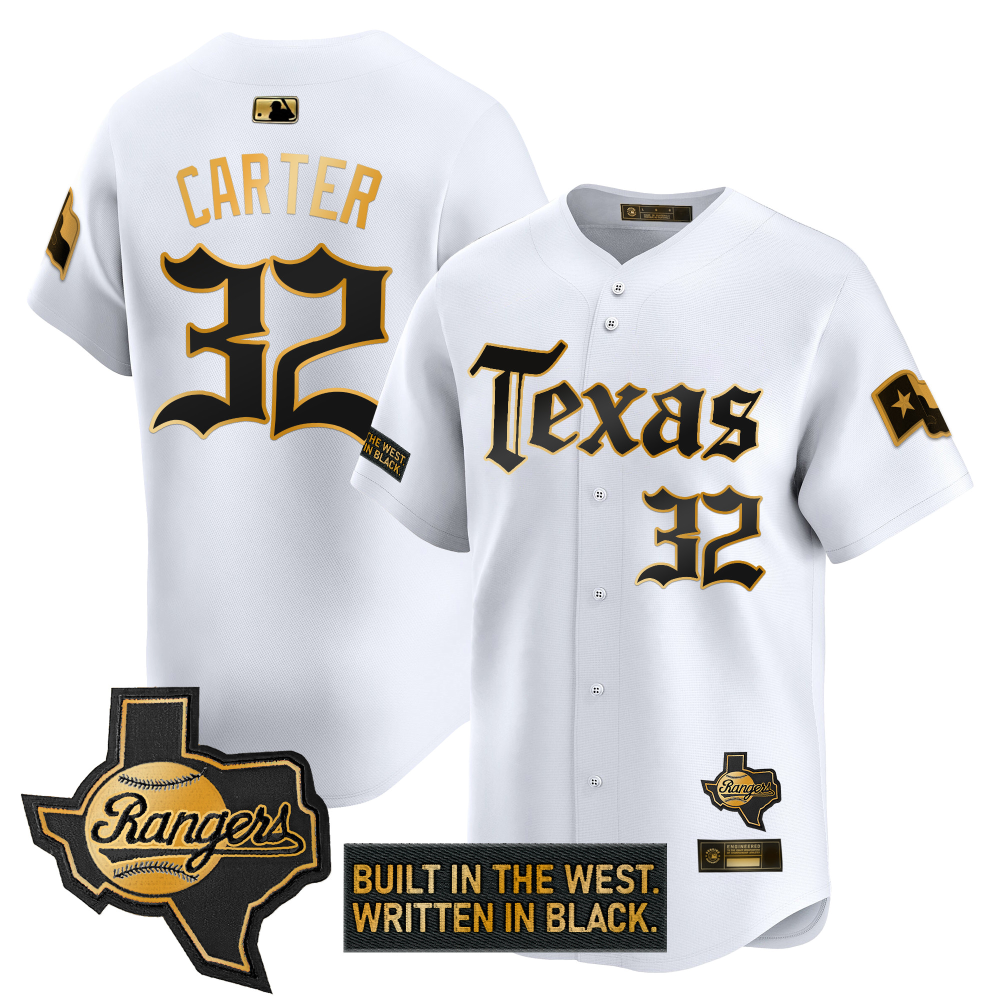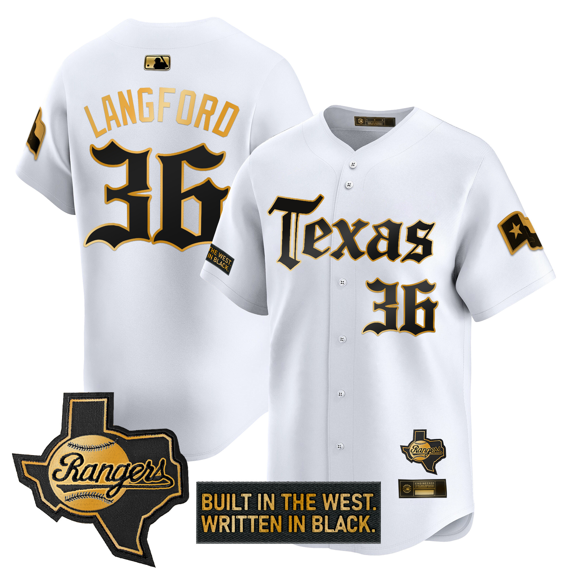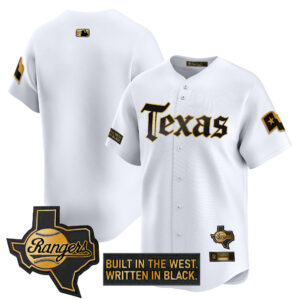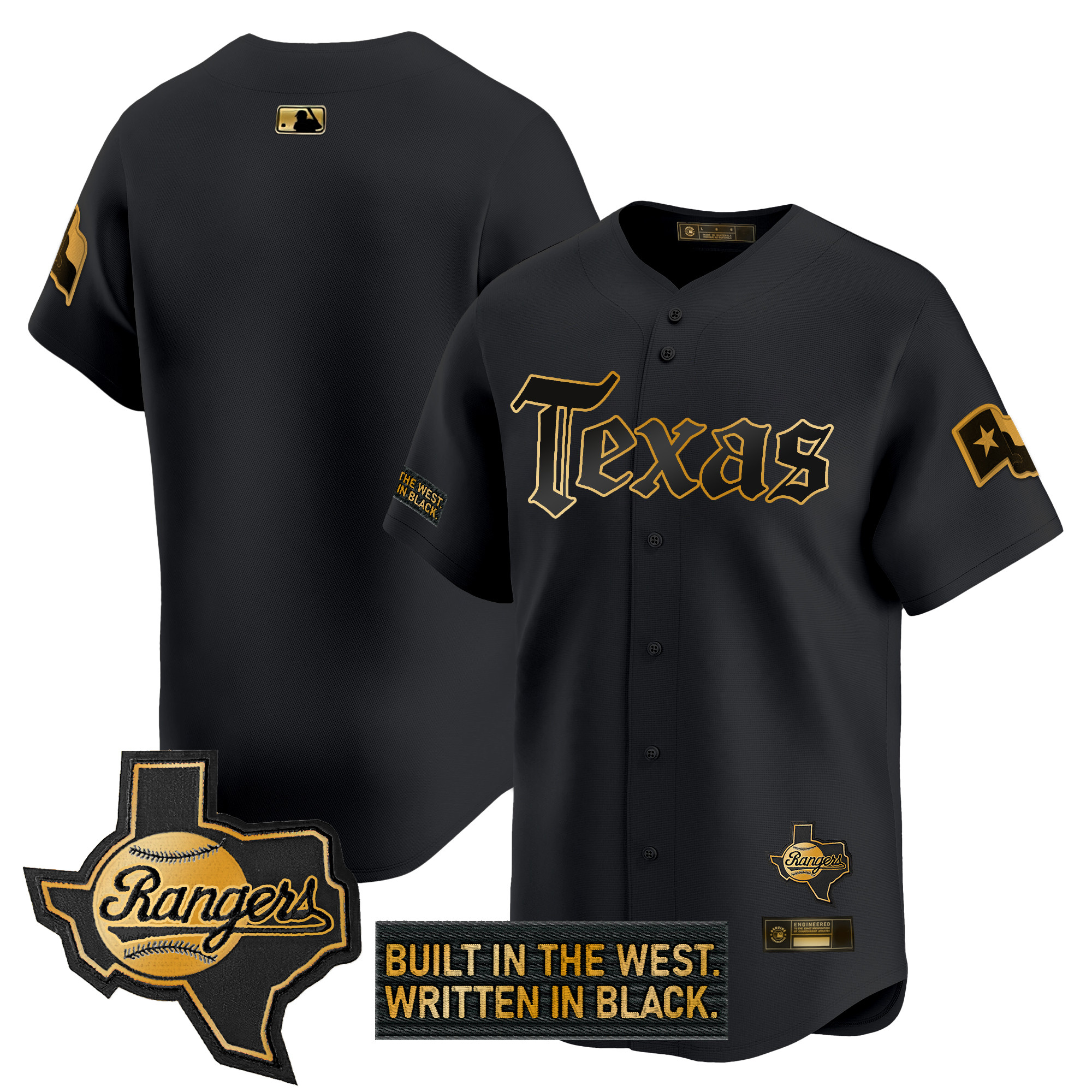 Men’s Texas Rangers ‘Gothic Frontier Edition’ Gold Vapor Premier Limited Jersey – All Stitched