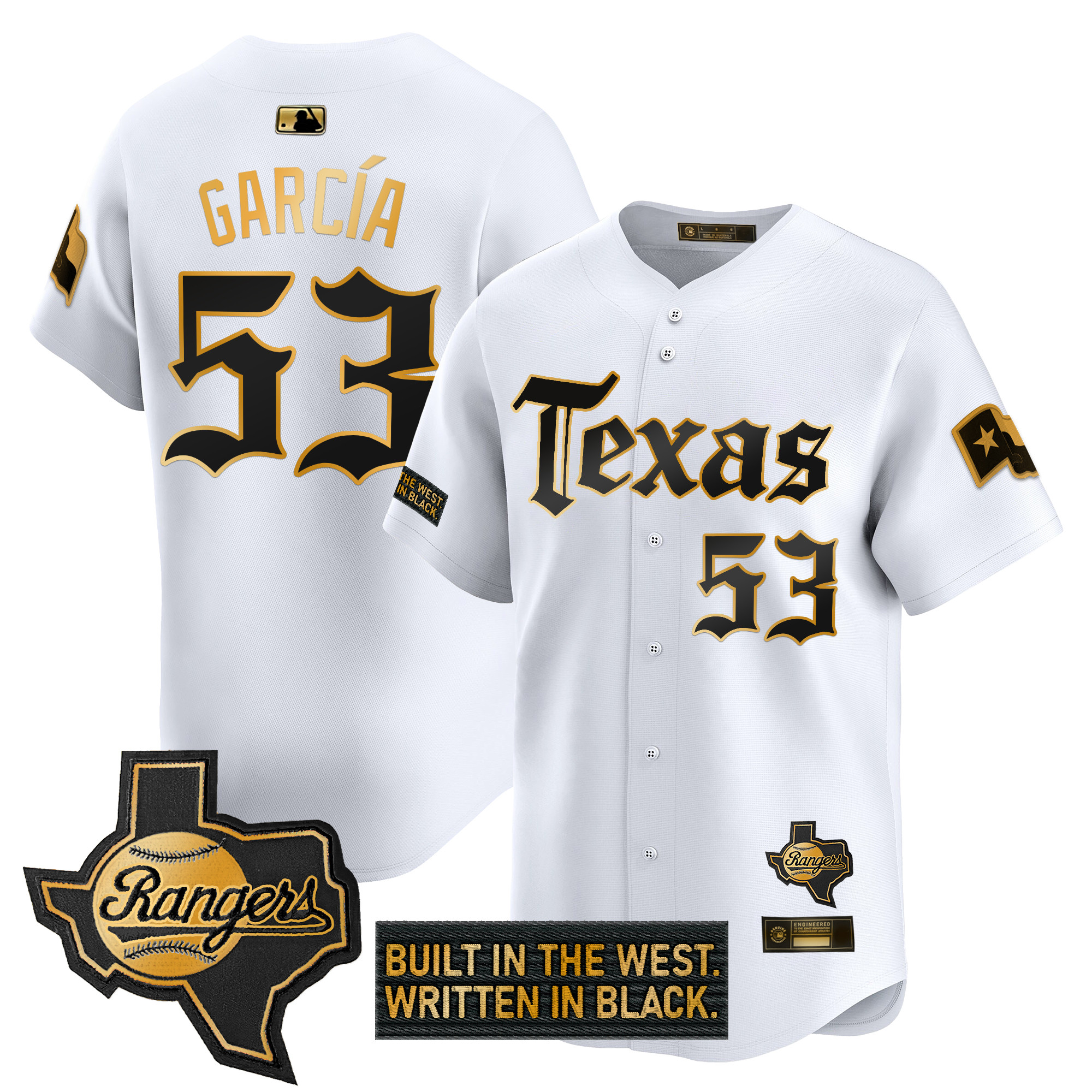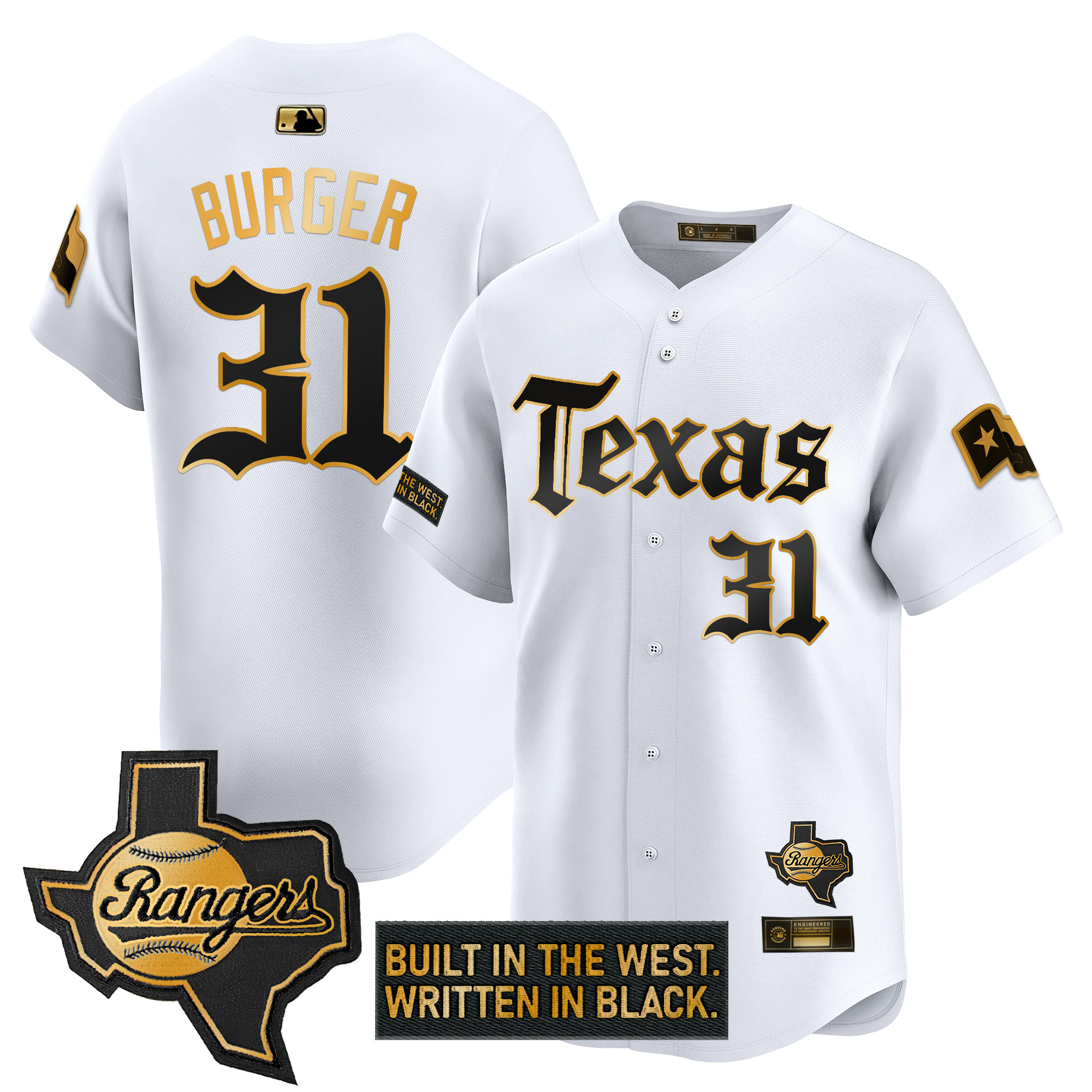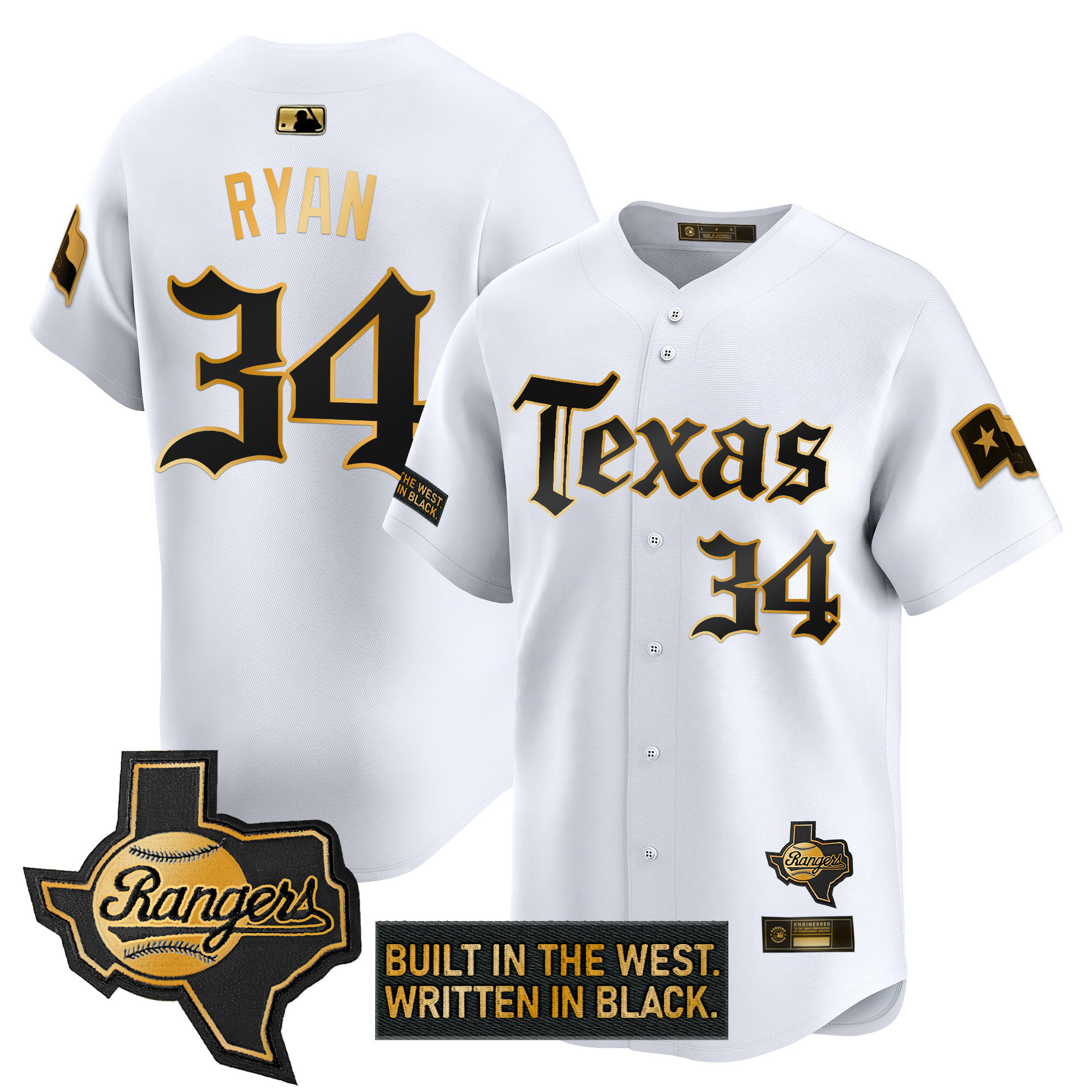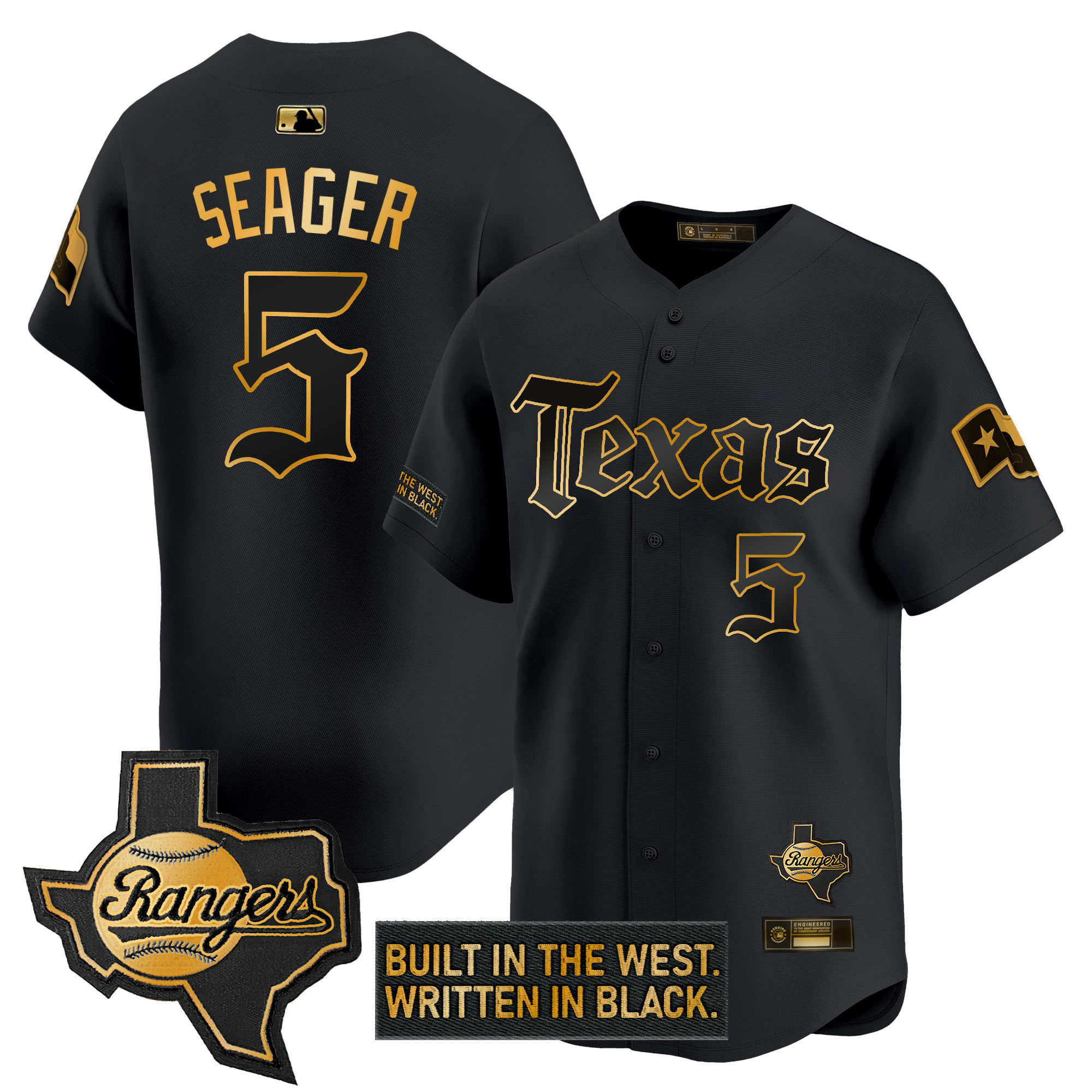 Men’s Texas Rangers ‘Gothic Frontier Edition’ Gold Vapor Premier Limited Jersey – All Stitched