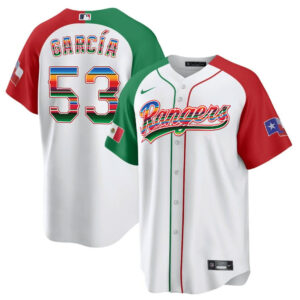 Men’s Texas Rangers Mexican Heritage Night Cool Base Jersey – Home – All Stitched