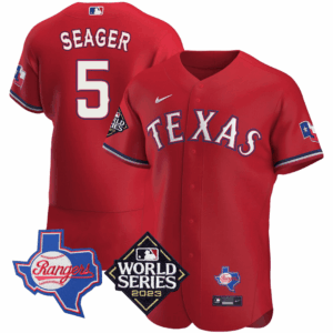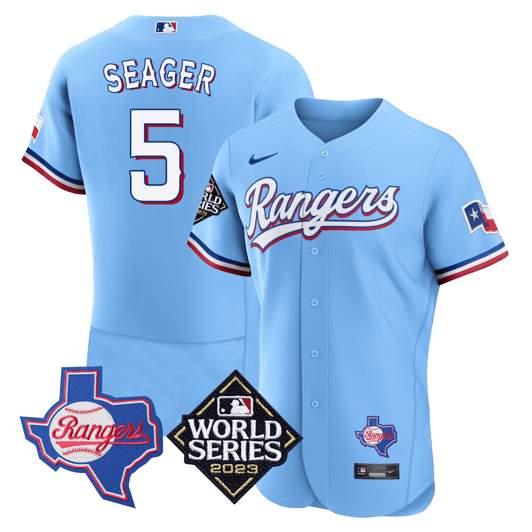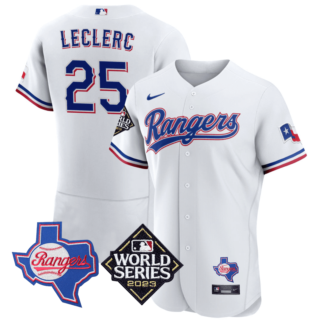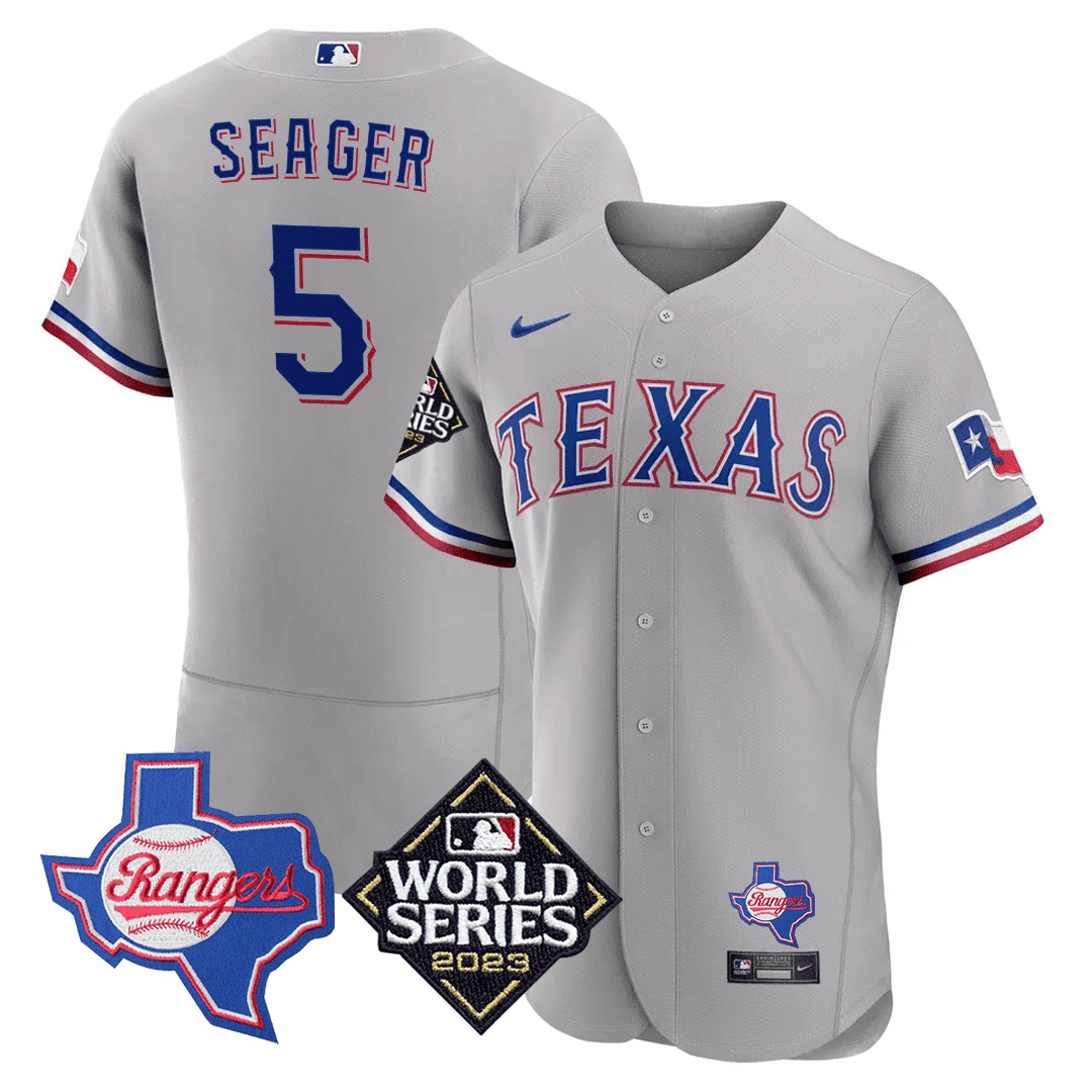 Men’s Texas Rangers Texas State & 2023 World Series Patch Jersey – All Stitched