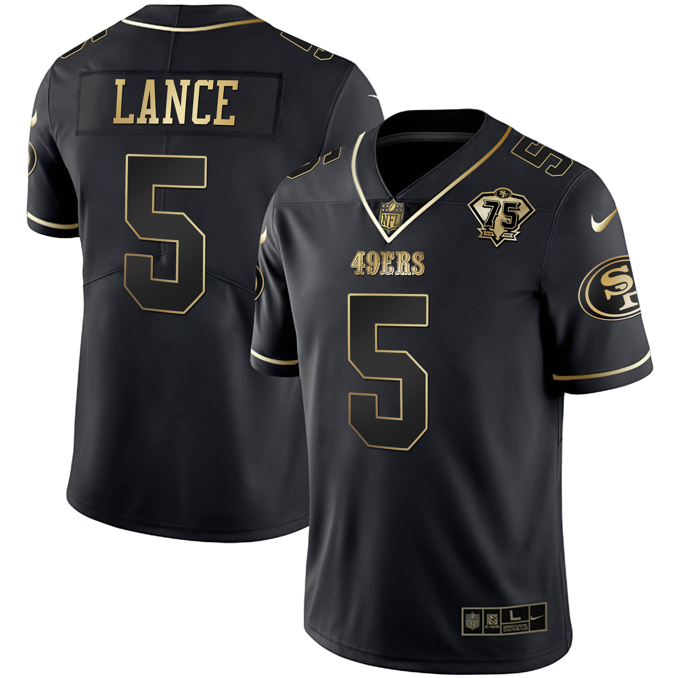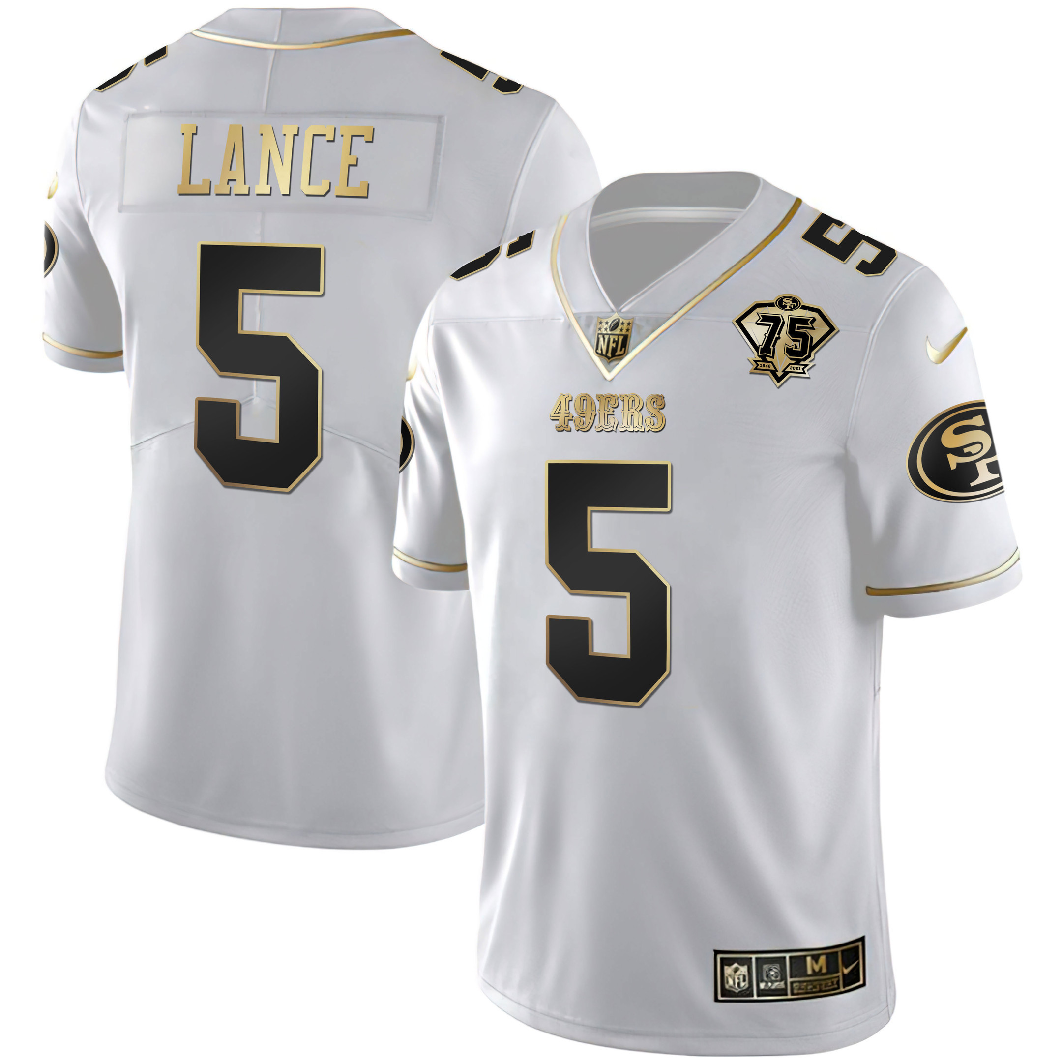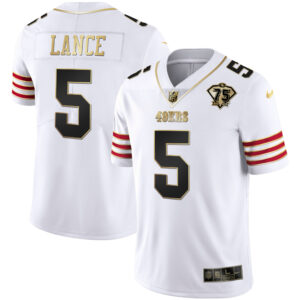 Men’s Trey Lance 49ers 75th Anniversary Patch Gold & Split – All Stitched