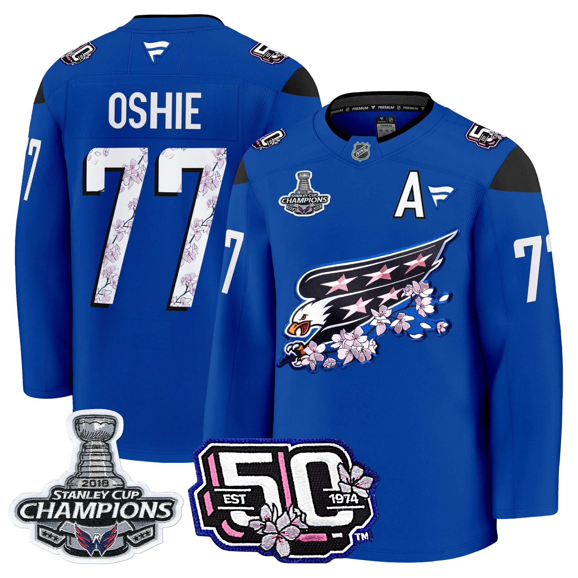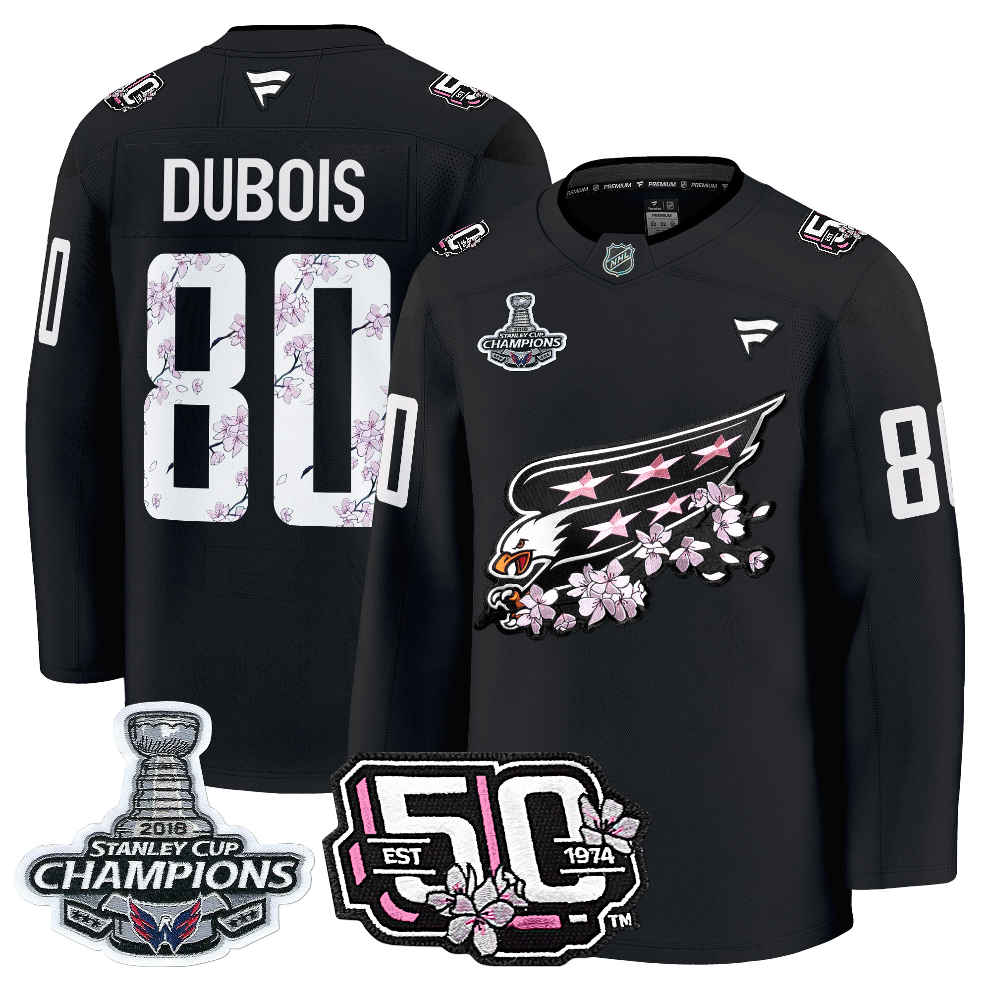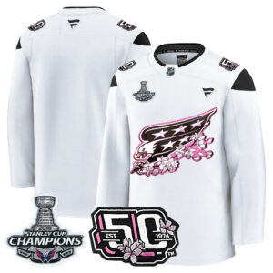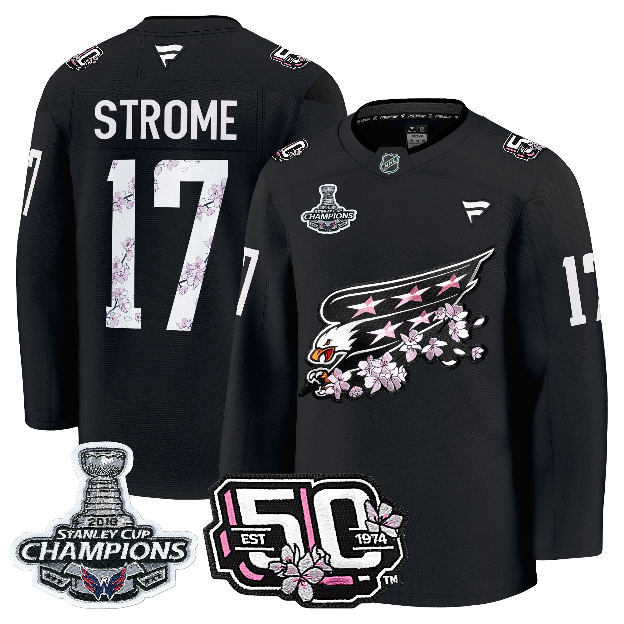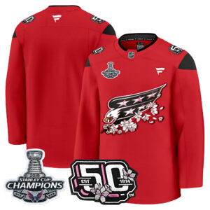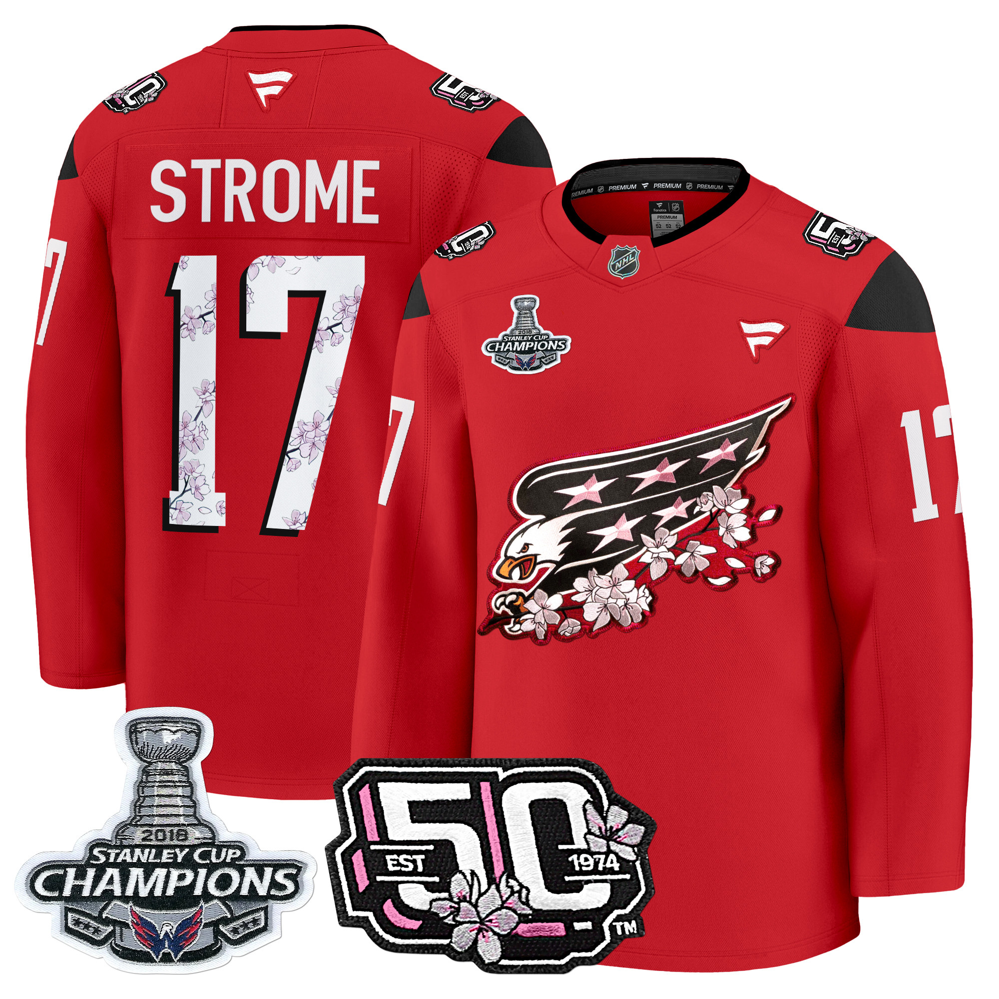 Men’s Washington Capitals 50th Anniversary & 2018 Stanley Cup Champions Patch Cherry Blossom Premium Jersey – All Stitched
