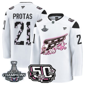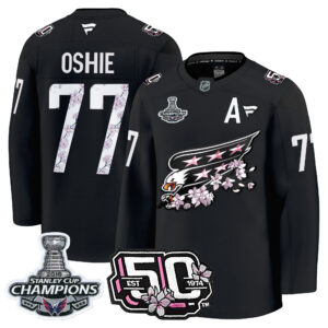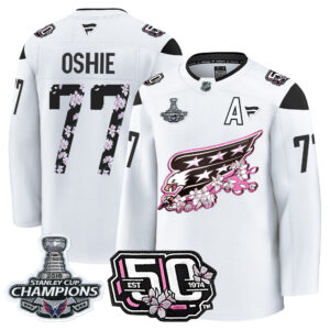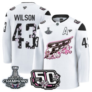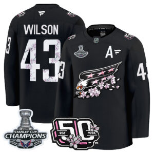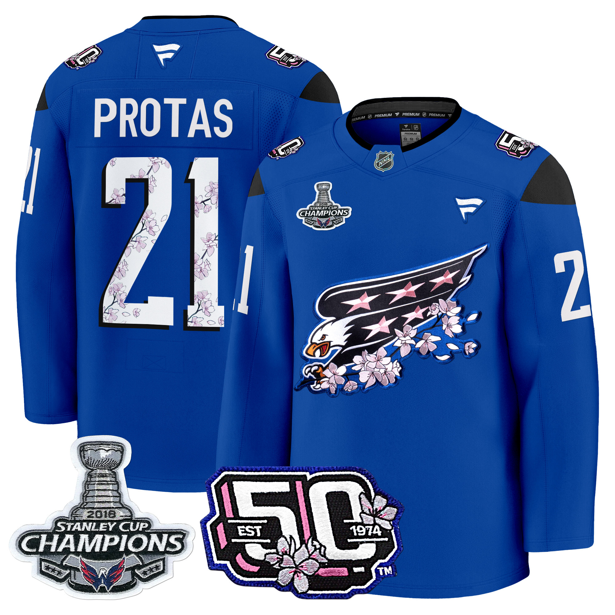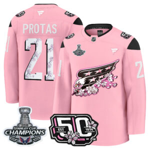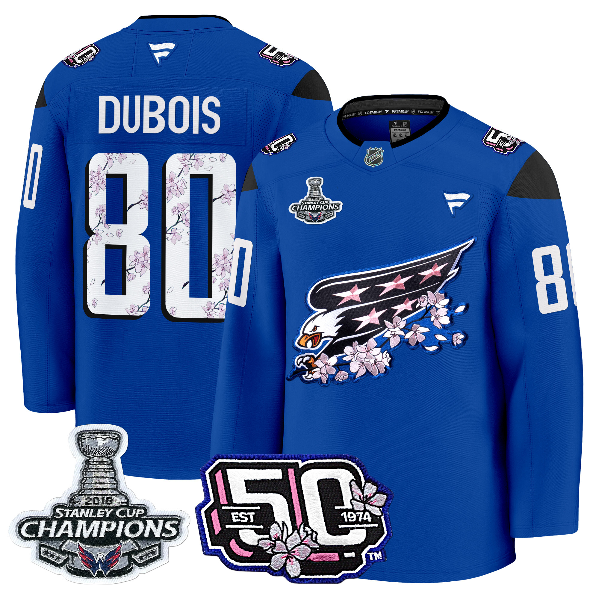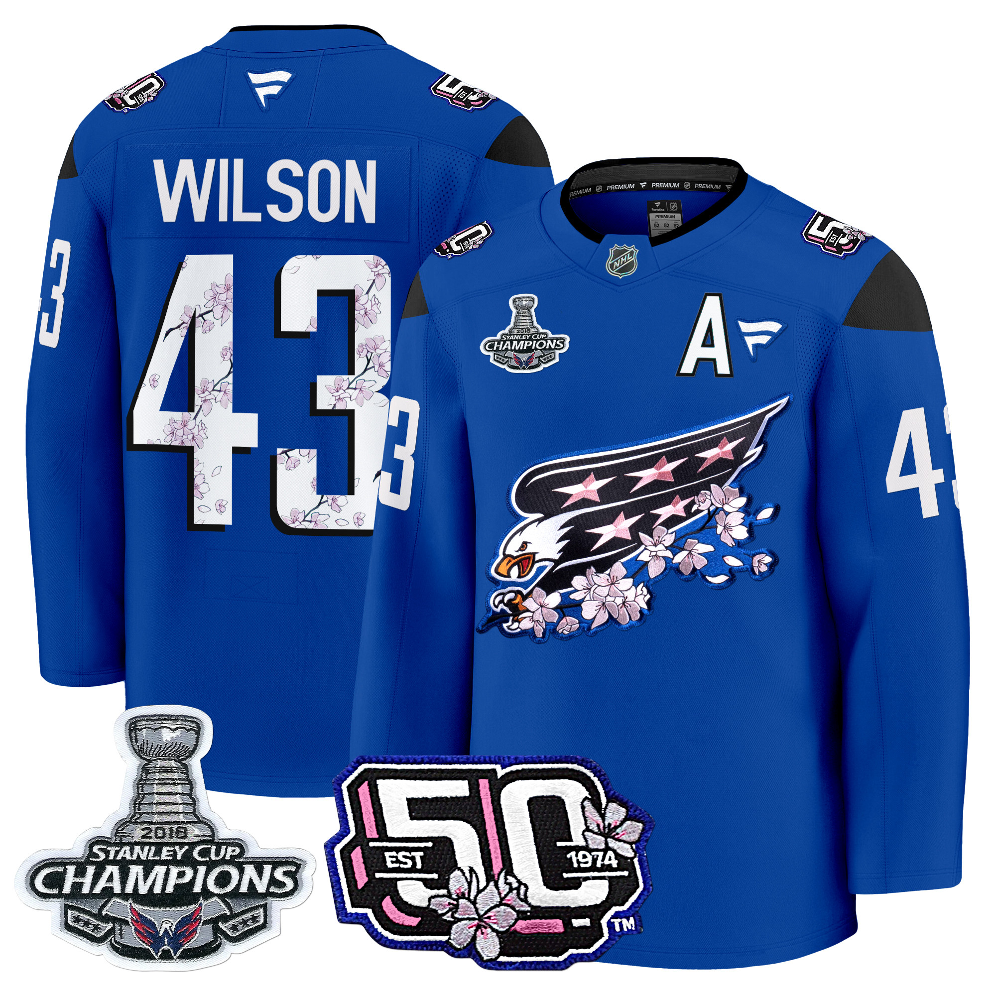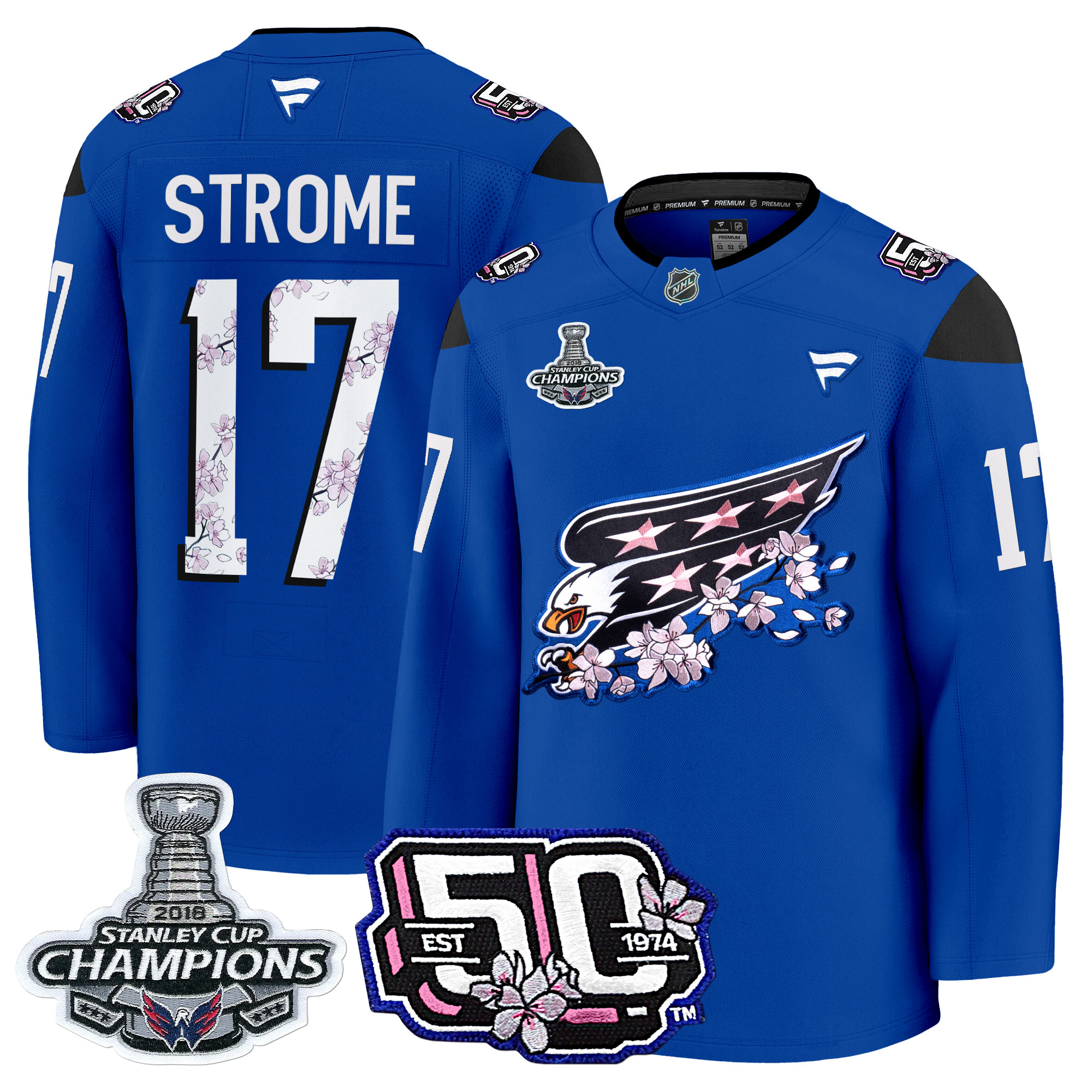 Men’s Washington Capitals 50th Anniversary & 2018 Stanley Cup Champions Patch Cherry Blossom Premium Jersey – All Stitched