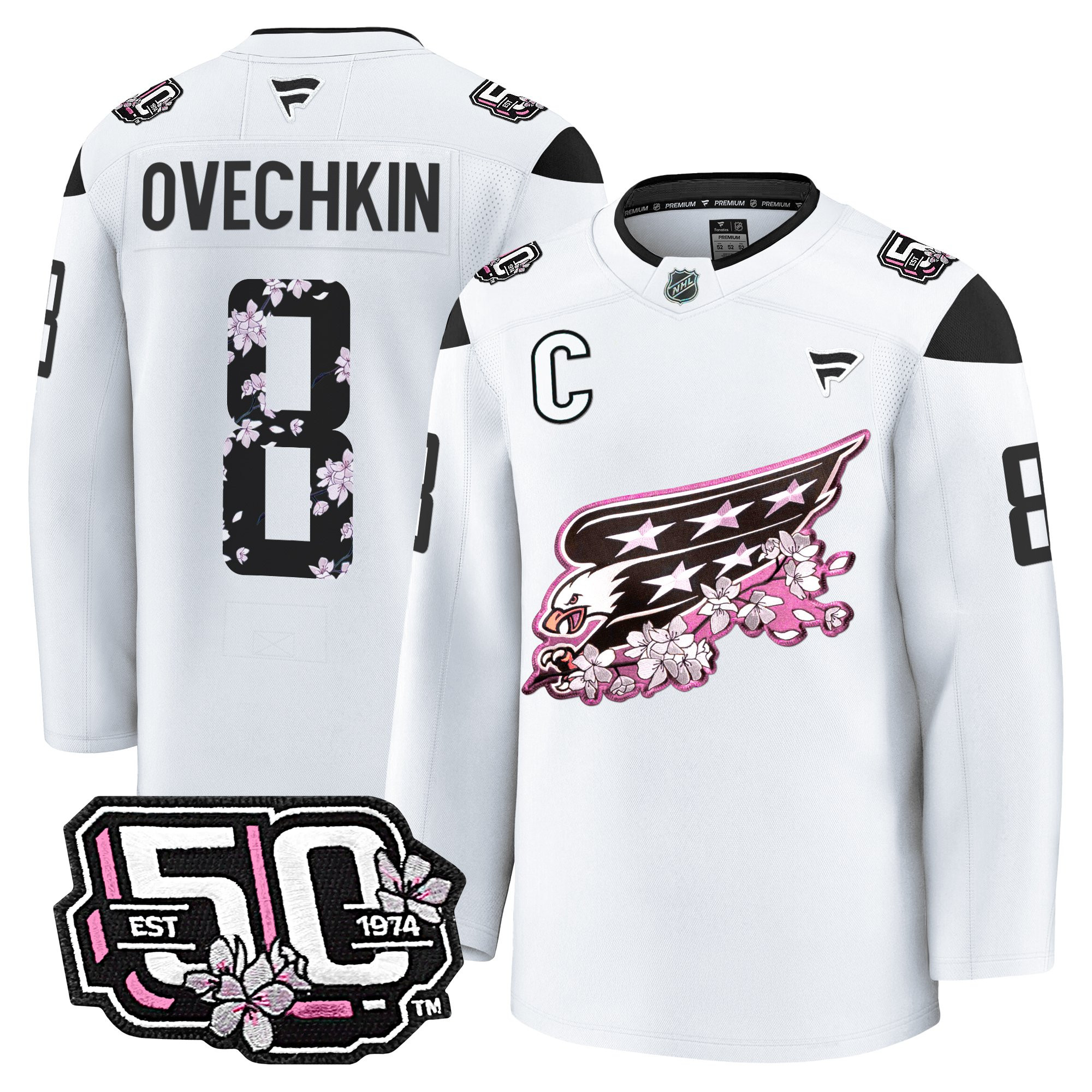 Men’s Washington Capitals 50th anniversary Cherry Blossom Premium Jersey – All Stitched