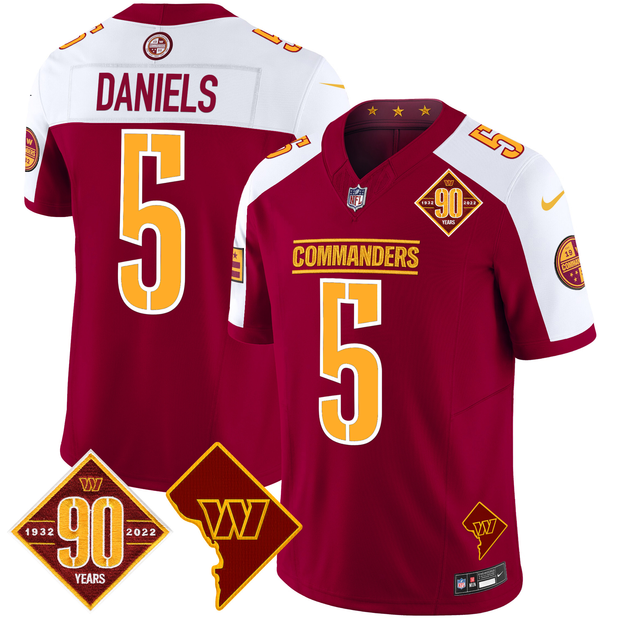 Men’s Washington Commanders 90th Anniversary & Home Patch Vapor Limited Jersey – All Stitched
