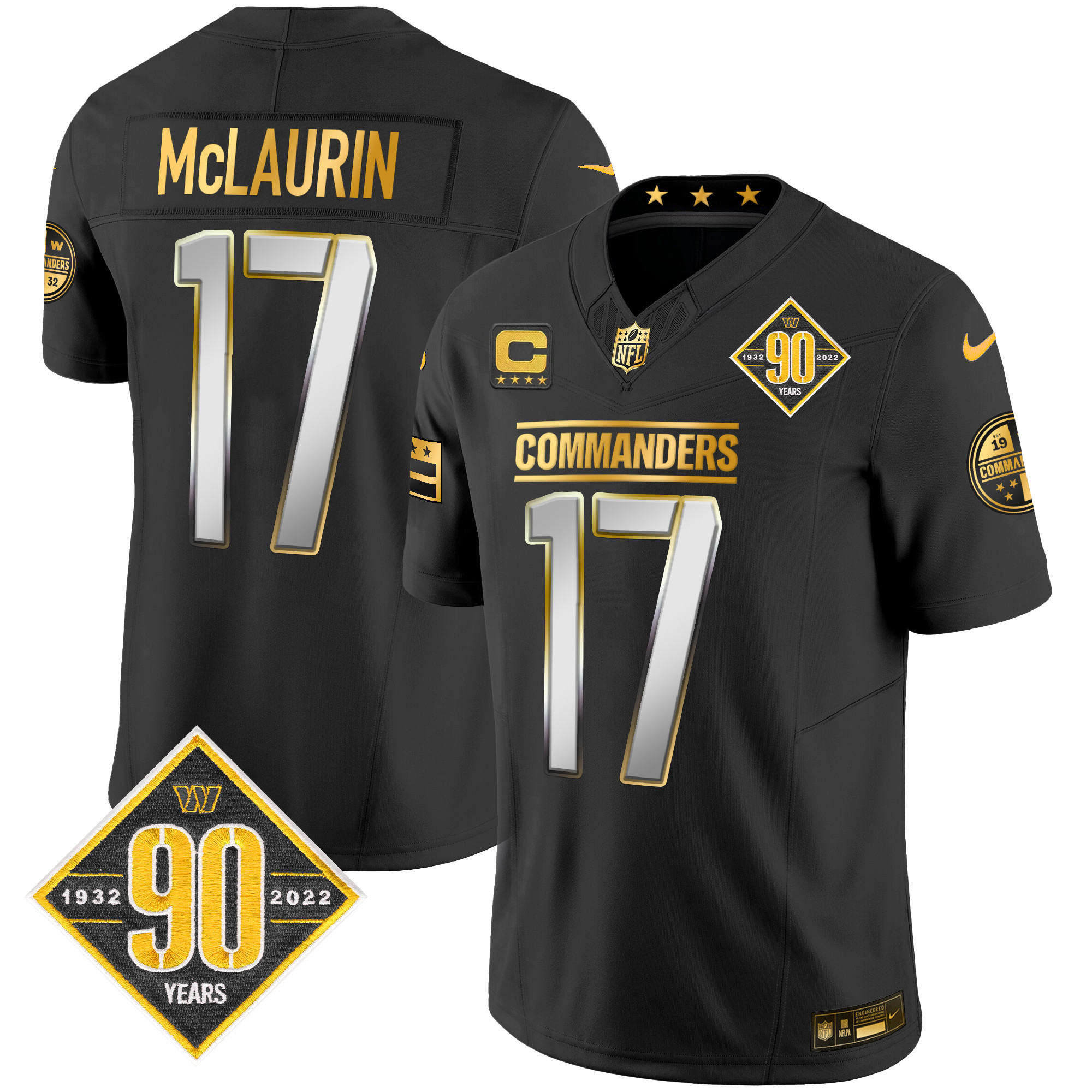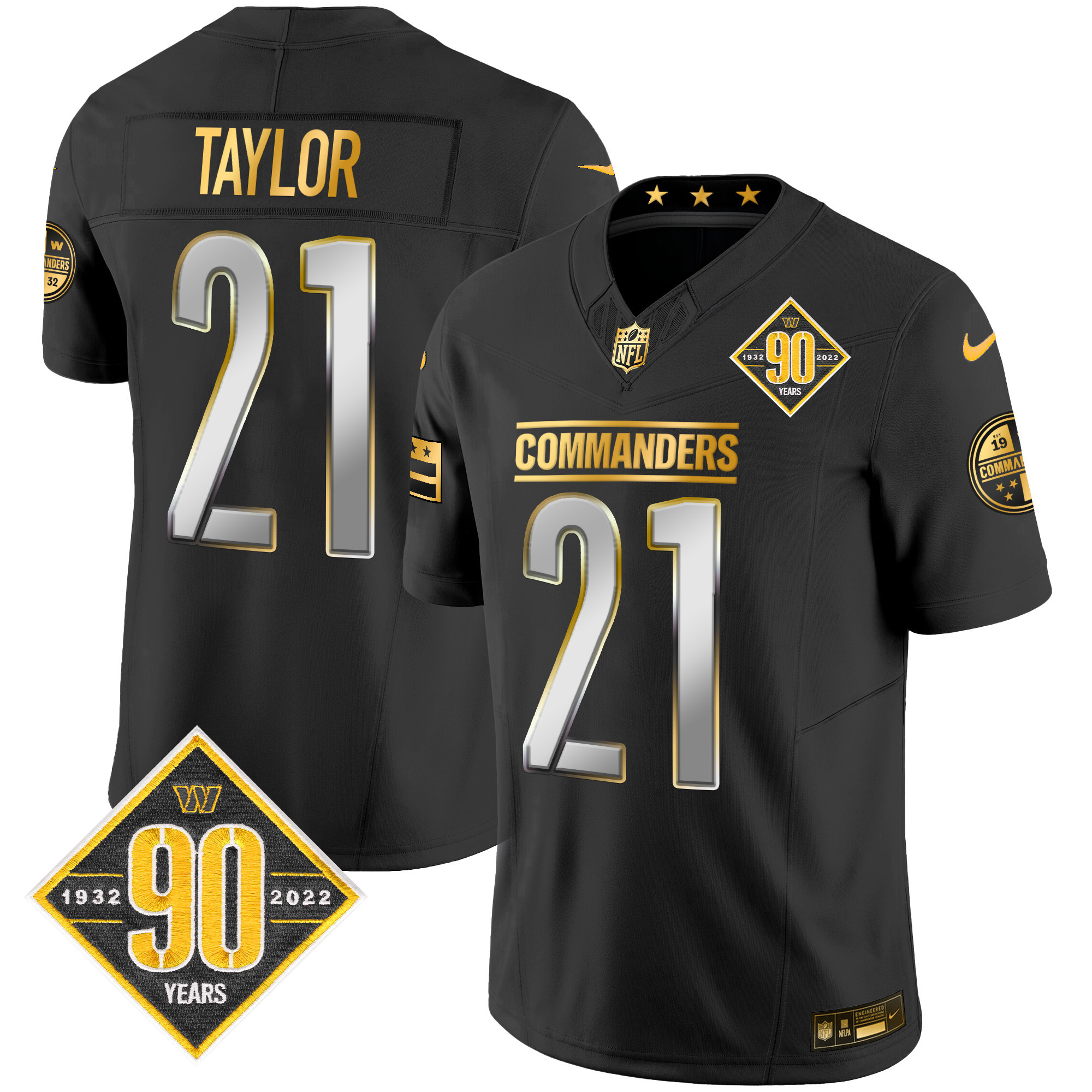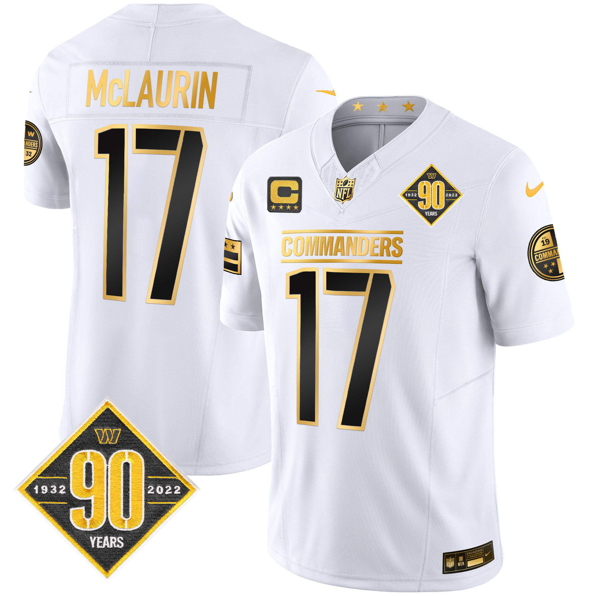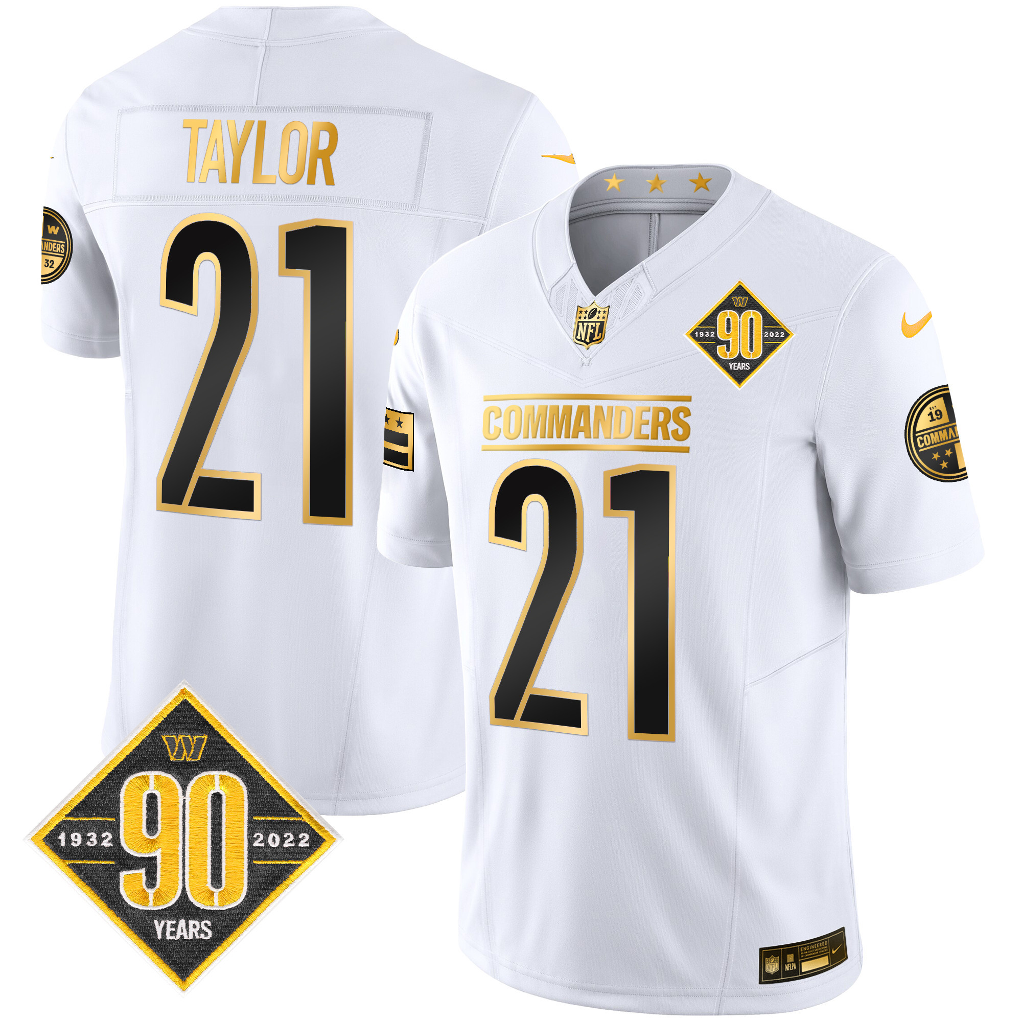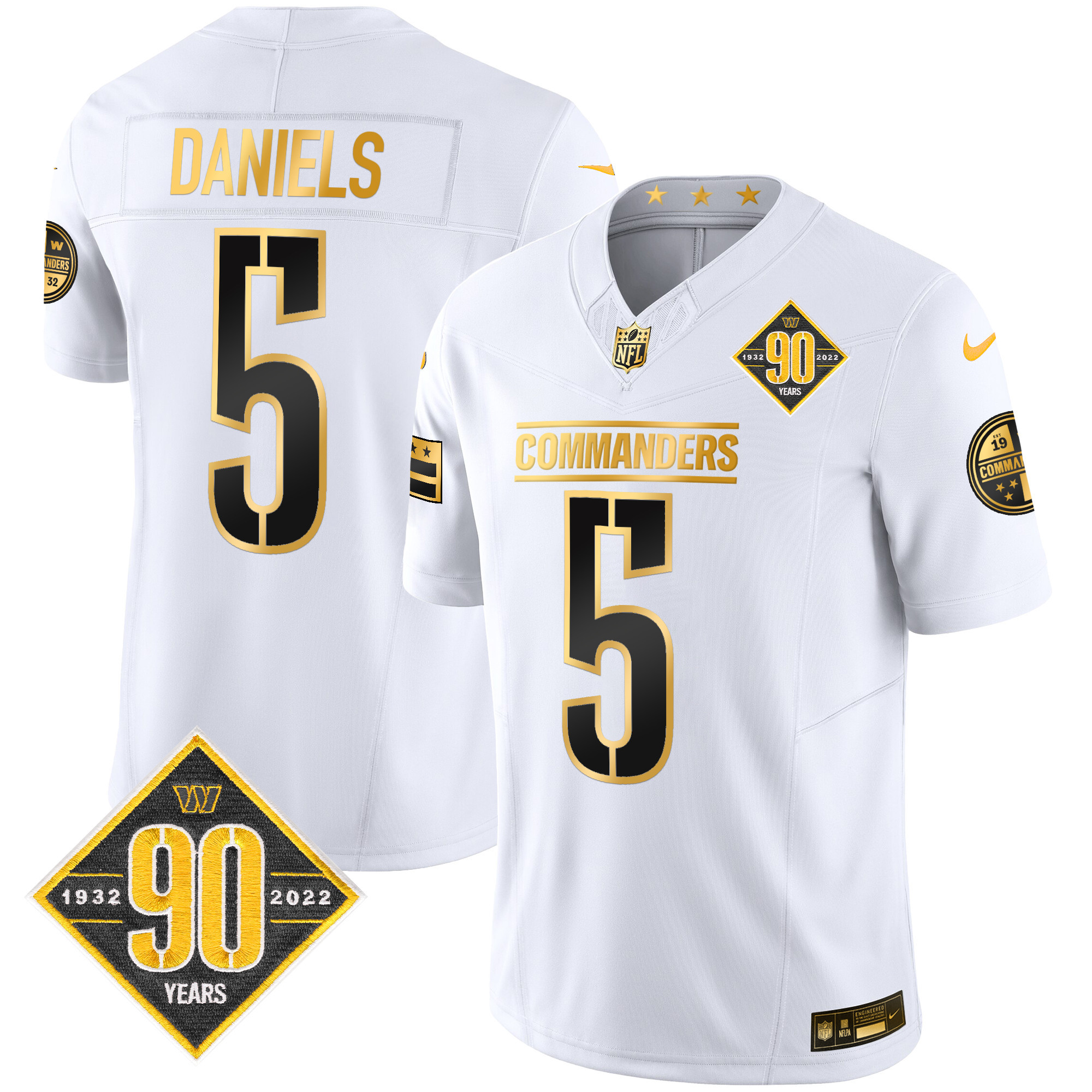 Men’s Washington Commanders 90th Anniversary Patch Gold Vapor Limited Jersey – All Stitched