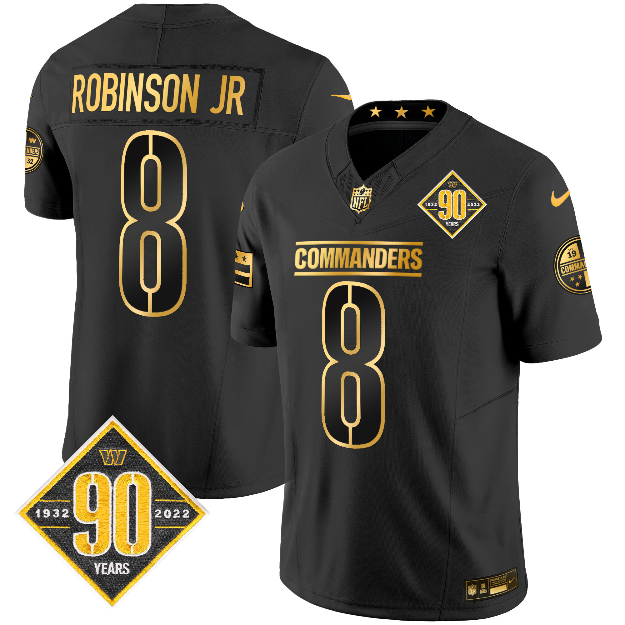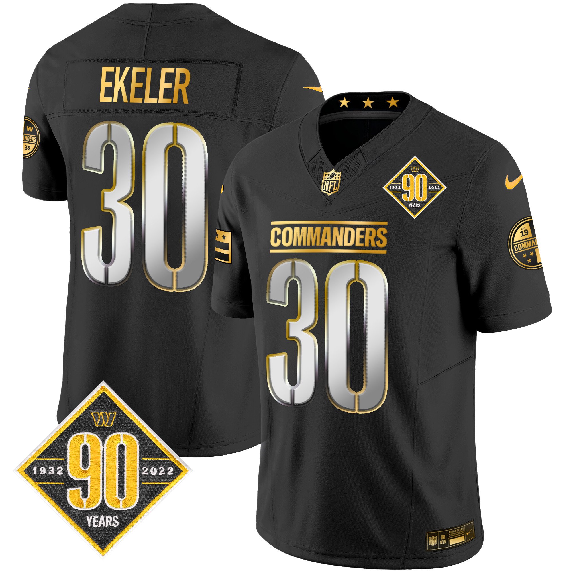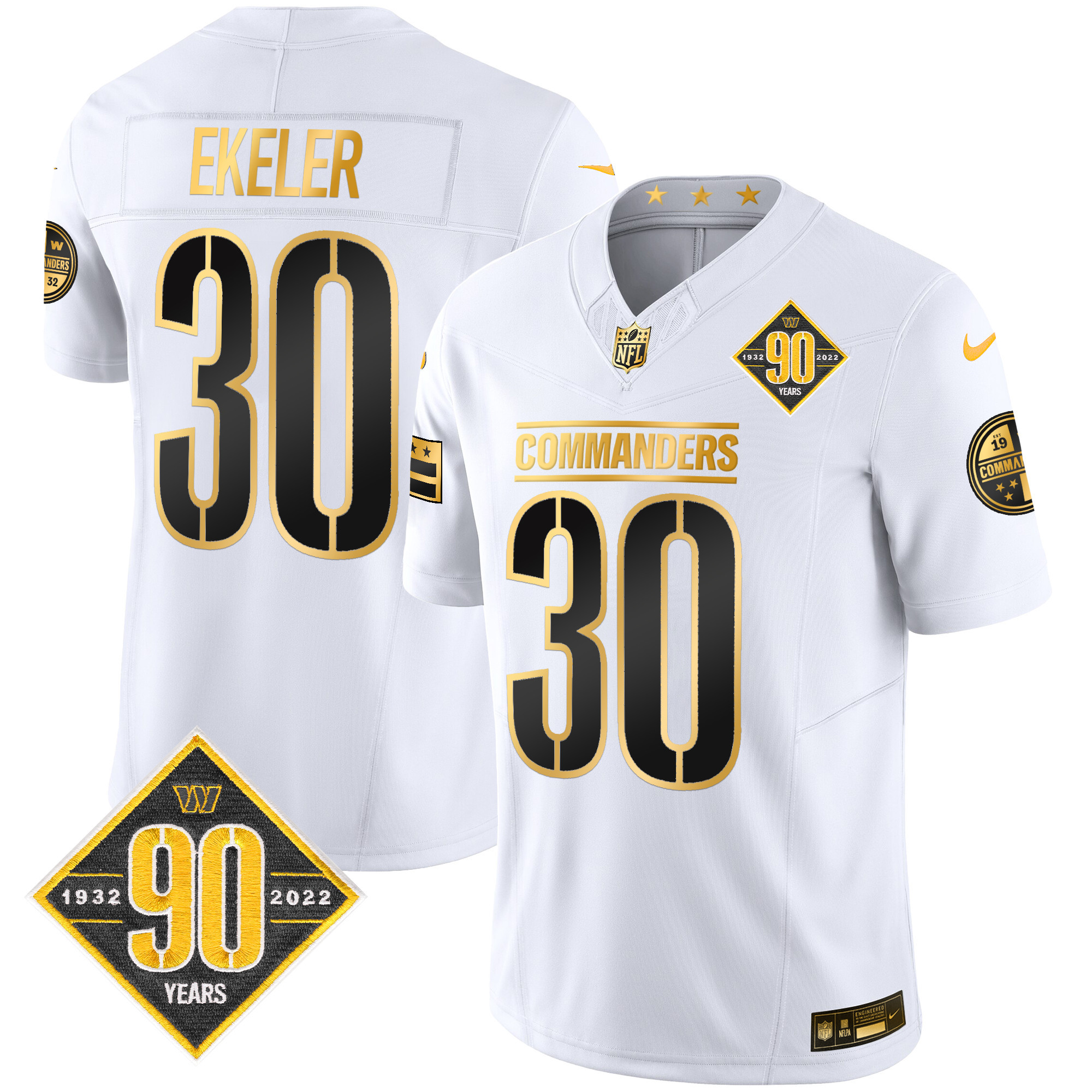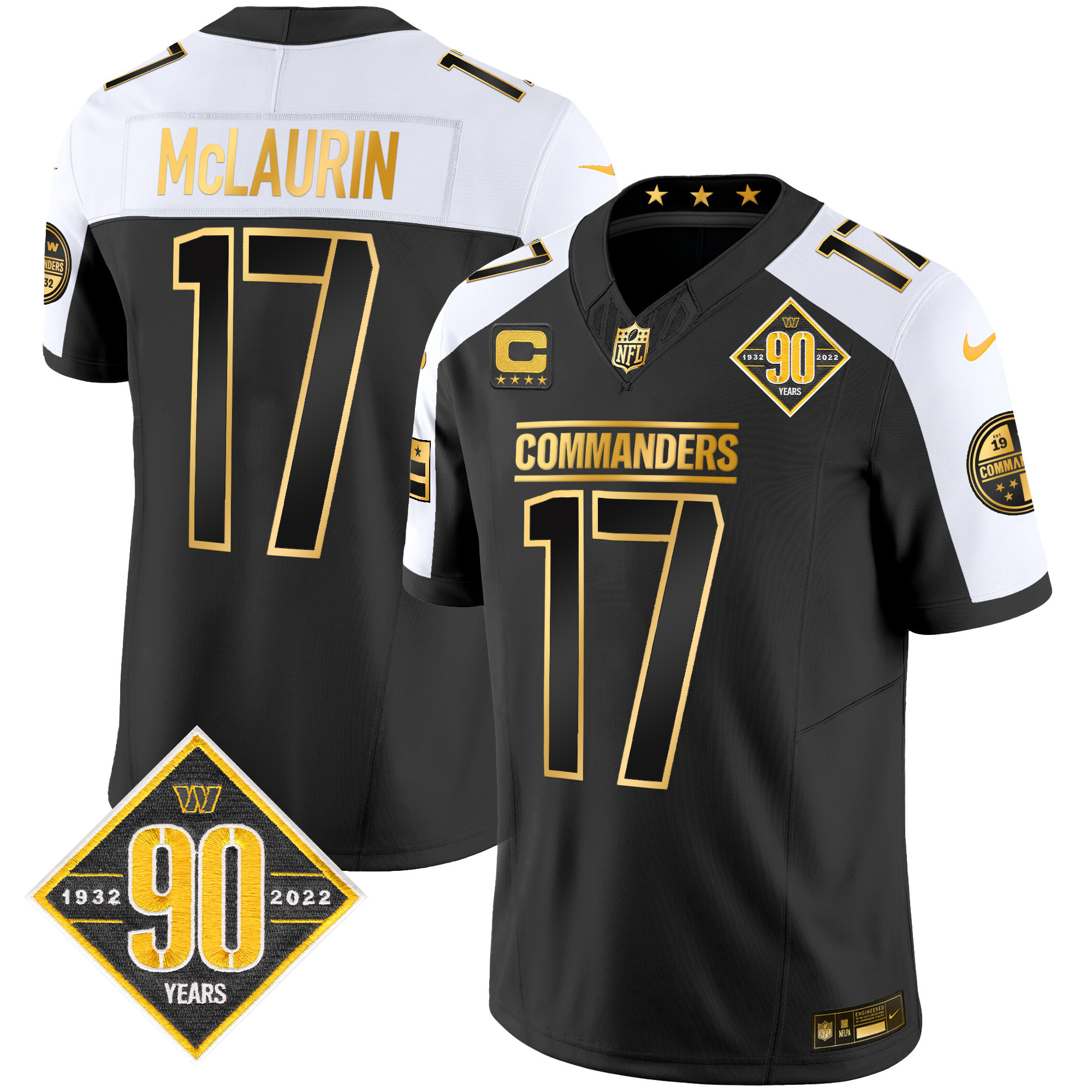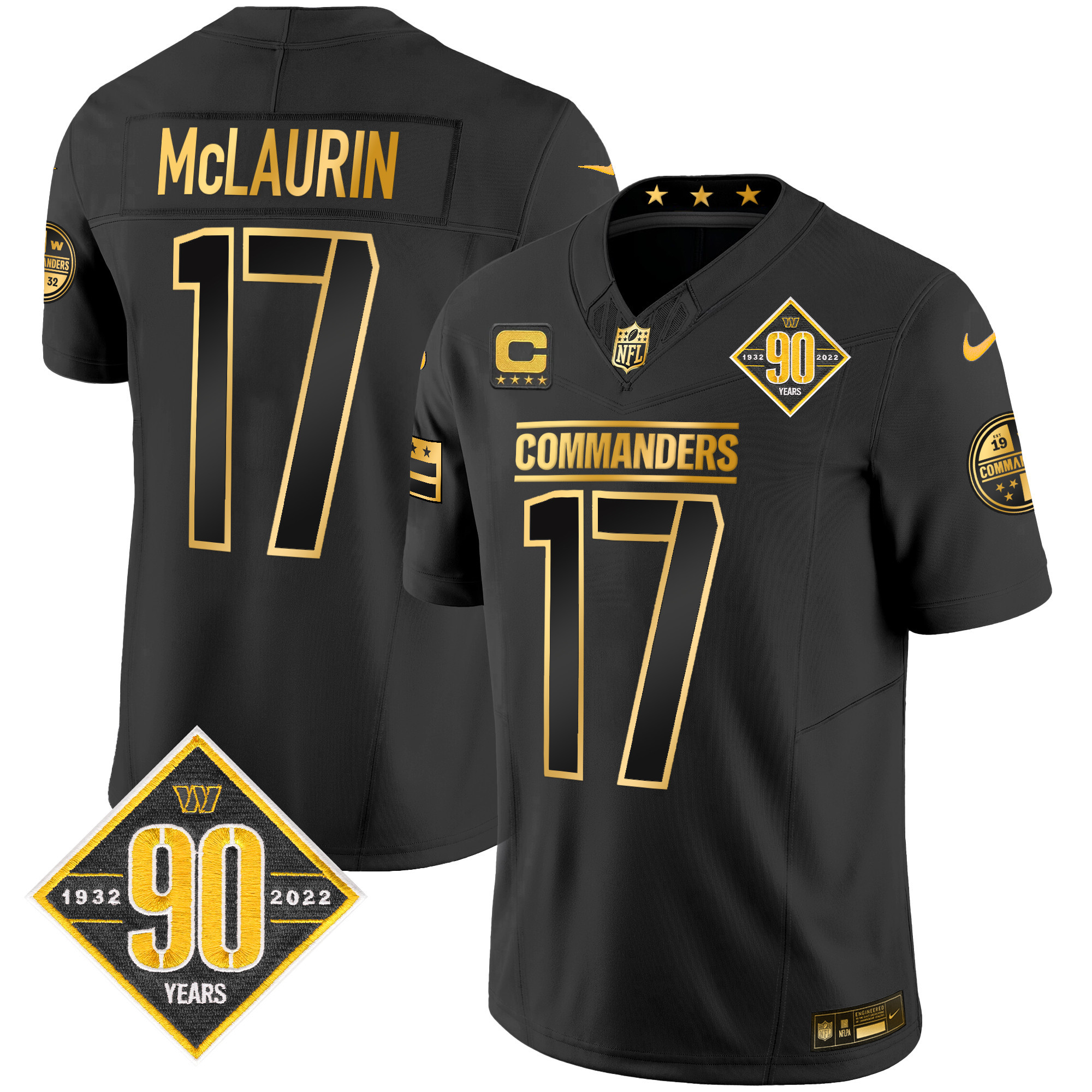 Men’s Washington Commanders 90th Anniversary Patch Gold Vapor Limited Jersey – All Stitched
