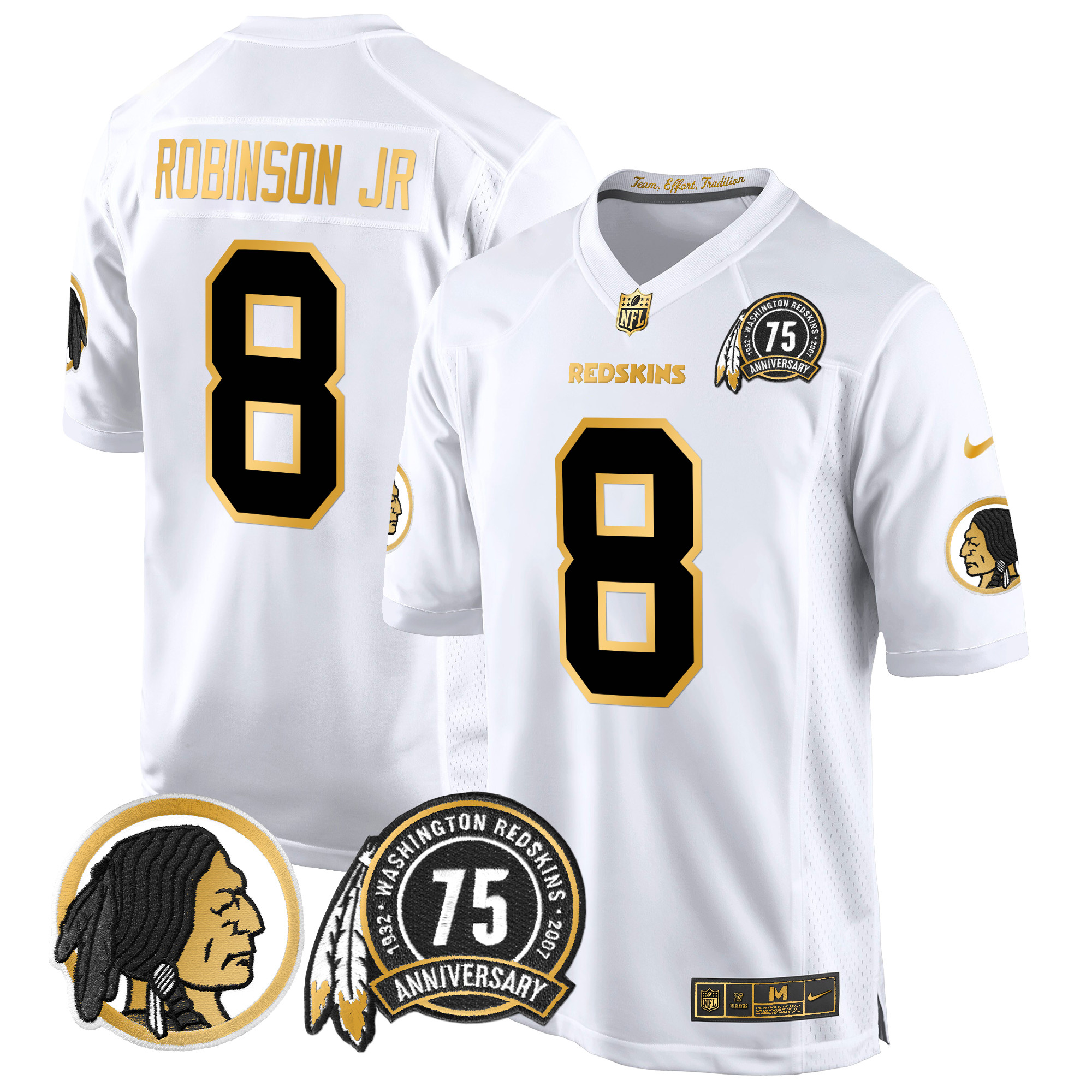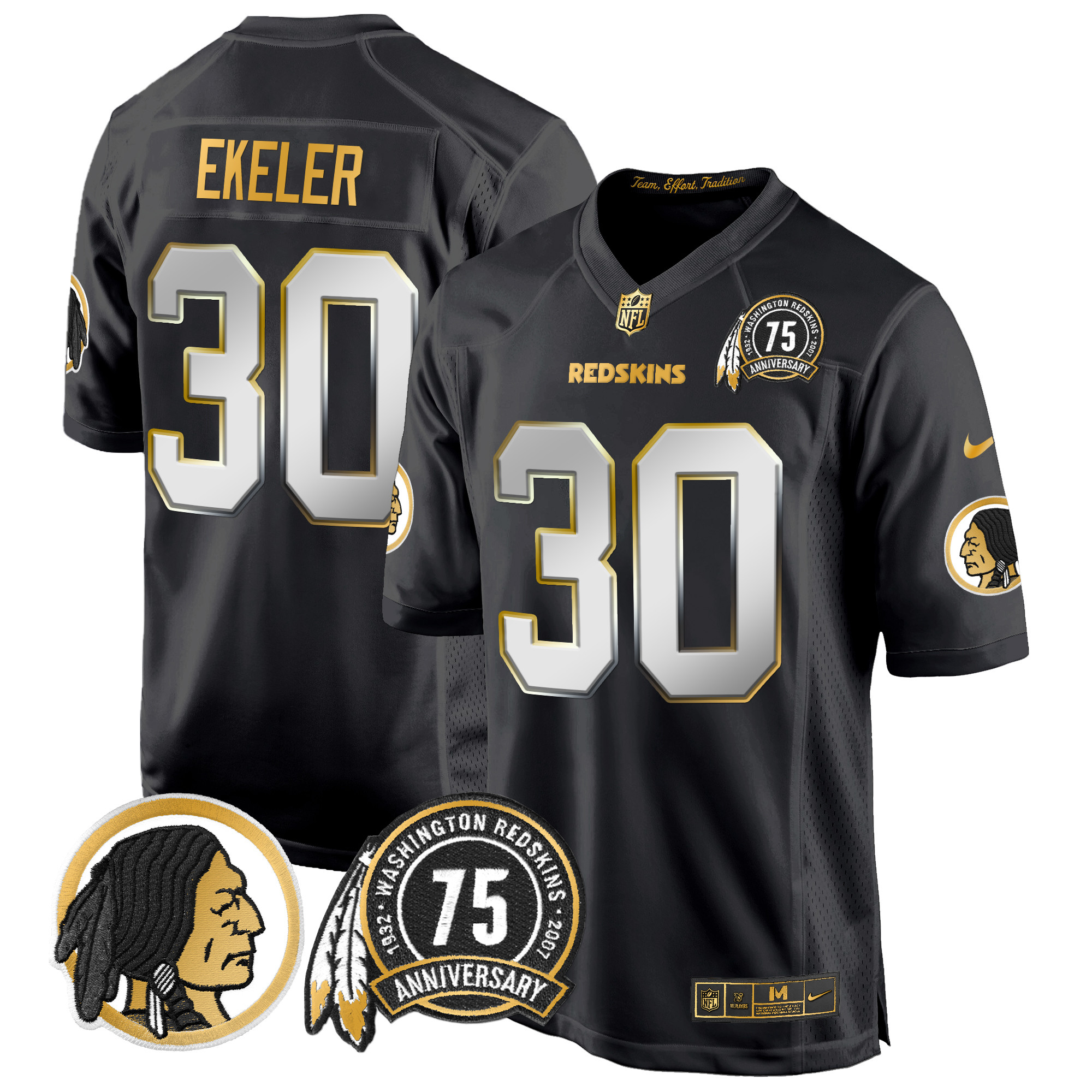 Men’s Washington Redskins 75th Patch Throwback Gold Game Jersey – All Stitched