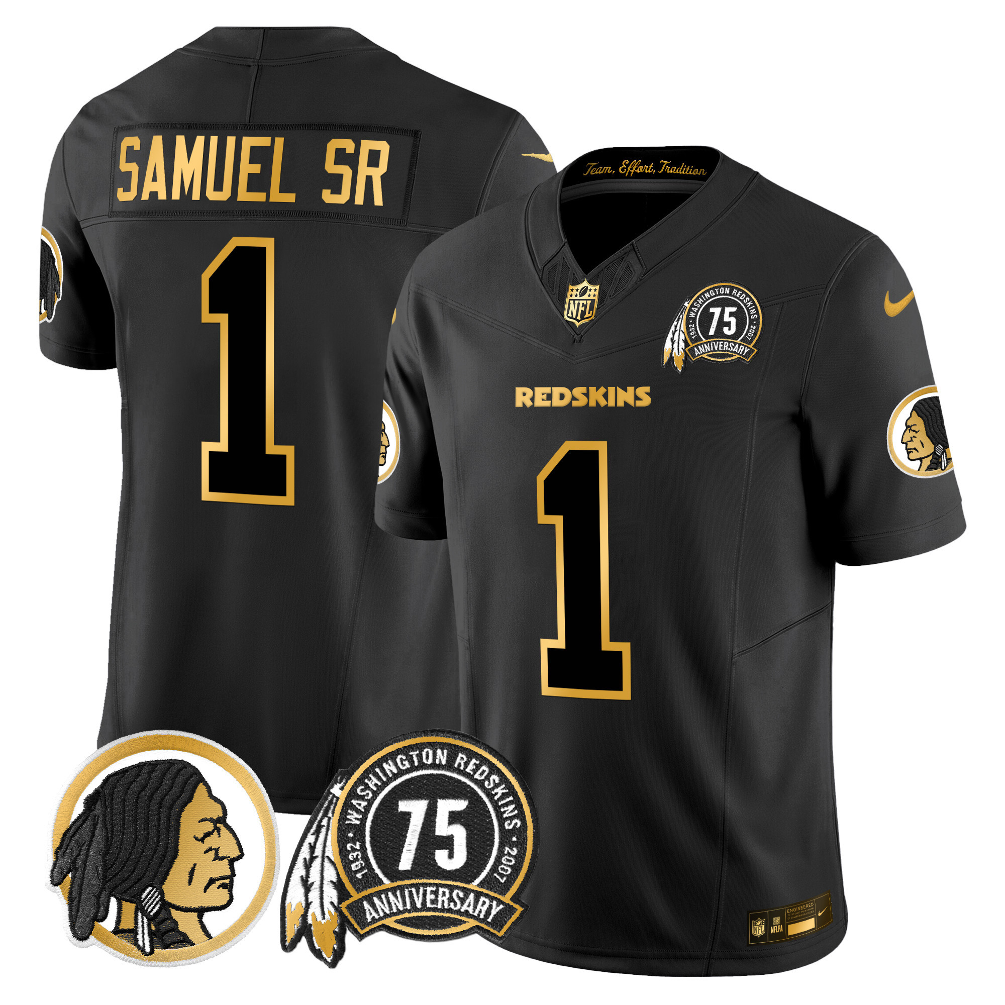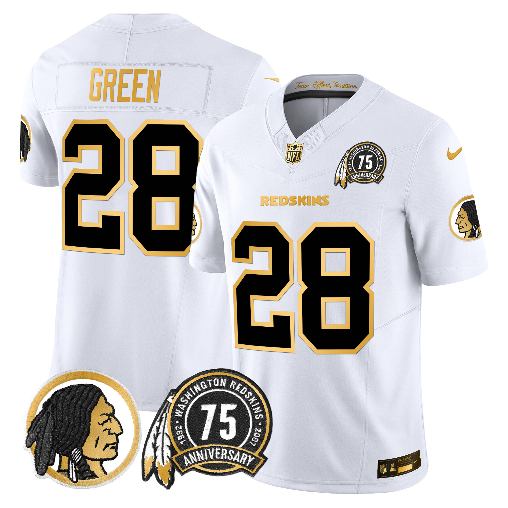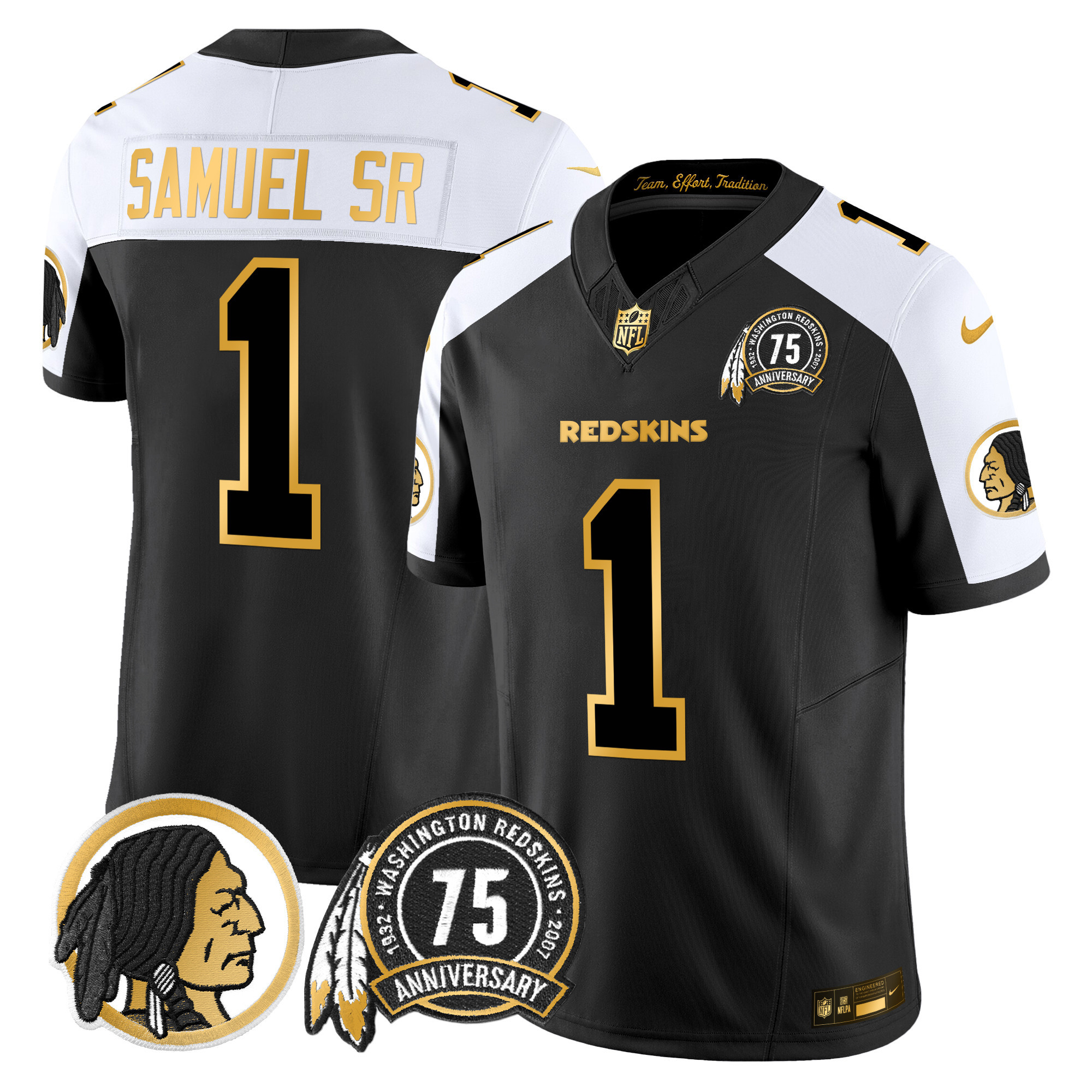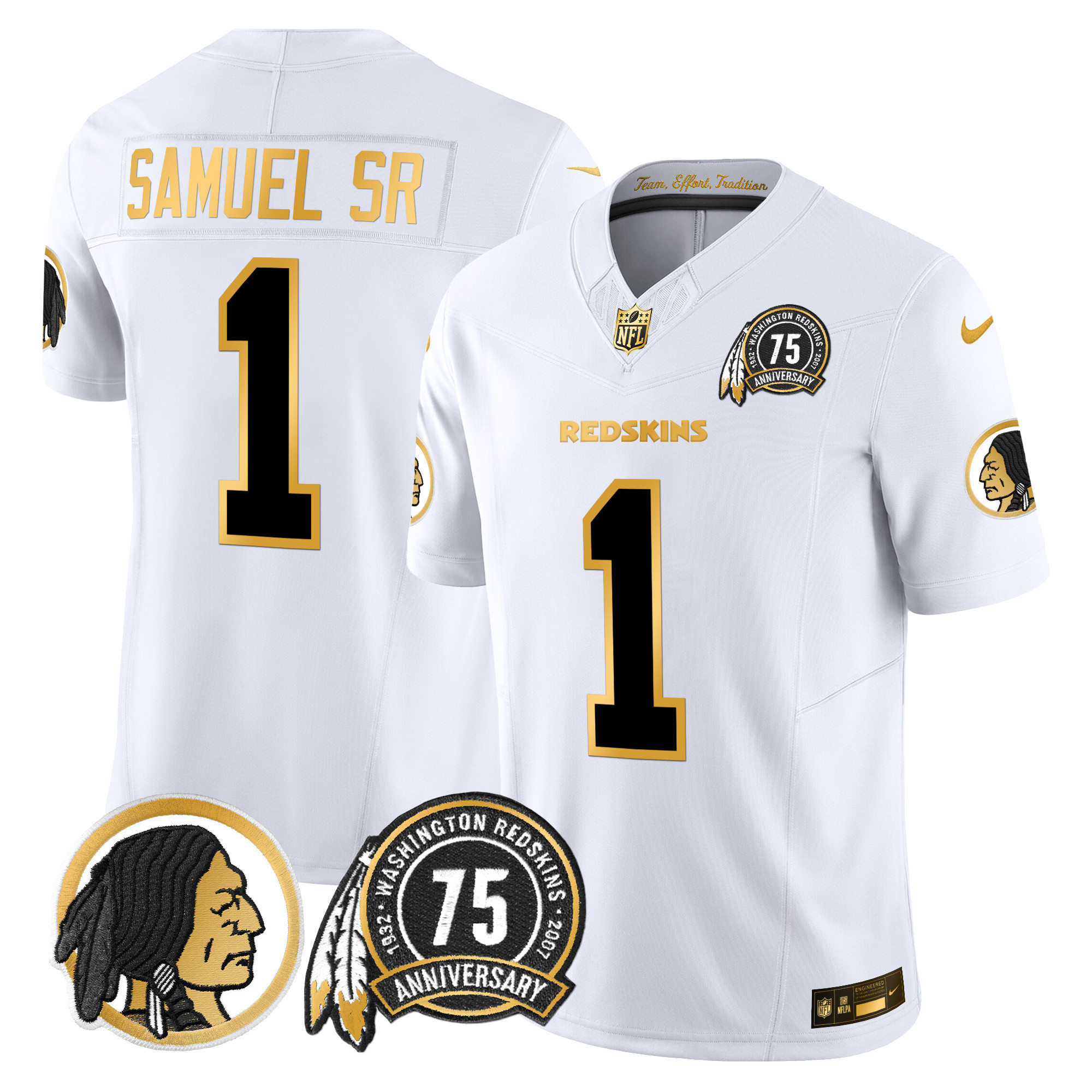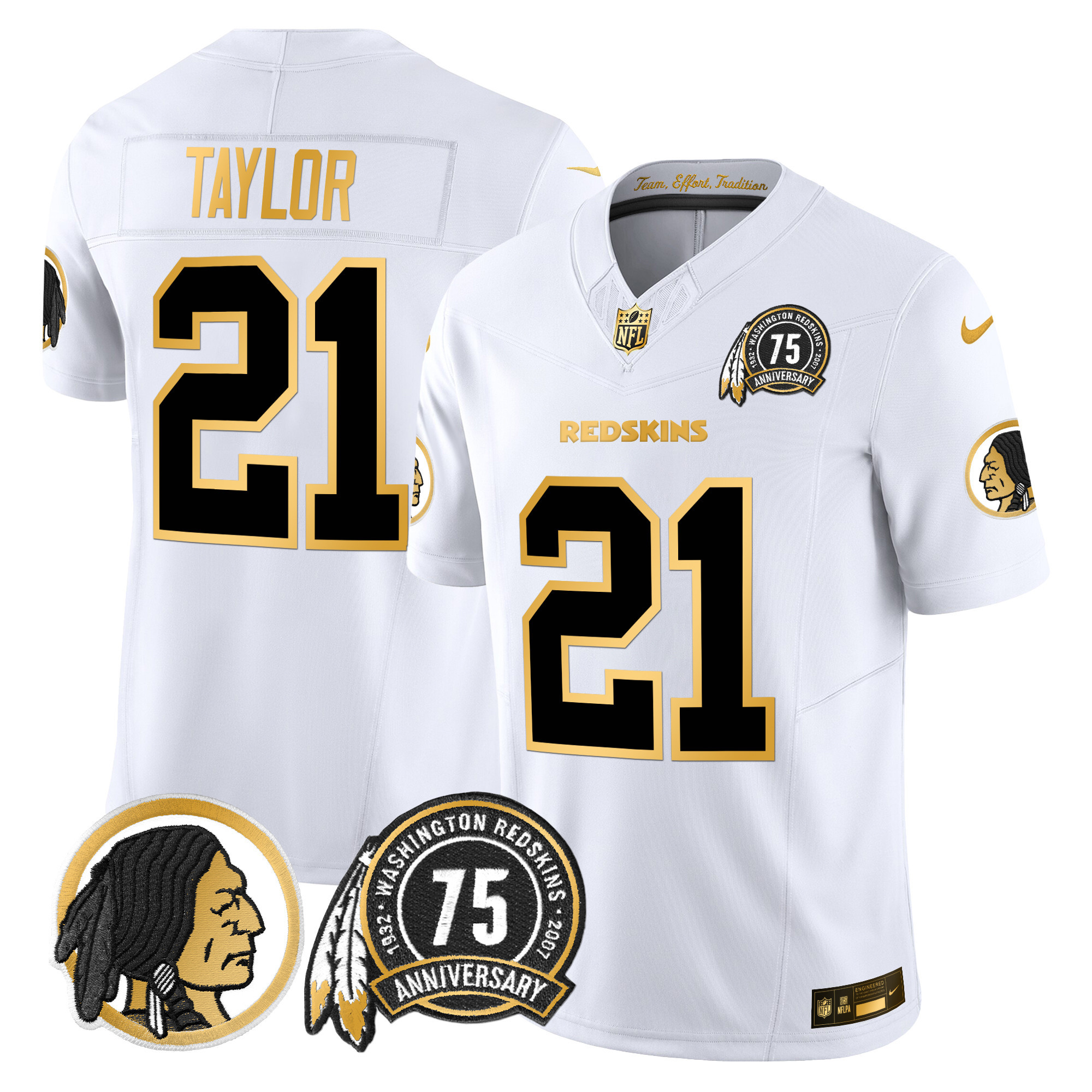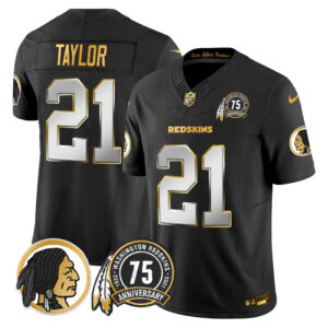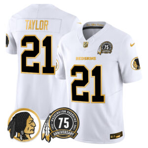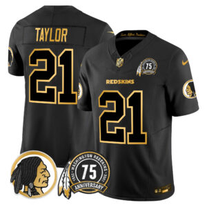 Men’s Washington Redskins 75th Patch Throwback Gold Vapor Limited Jersey – All Stitched