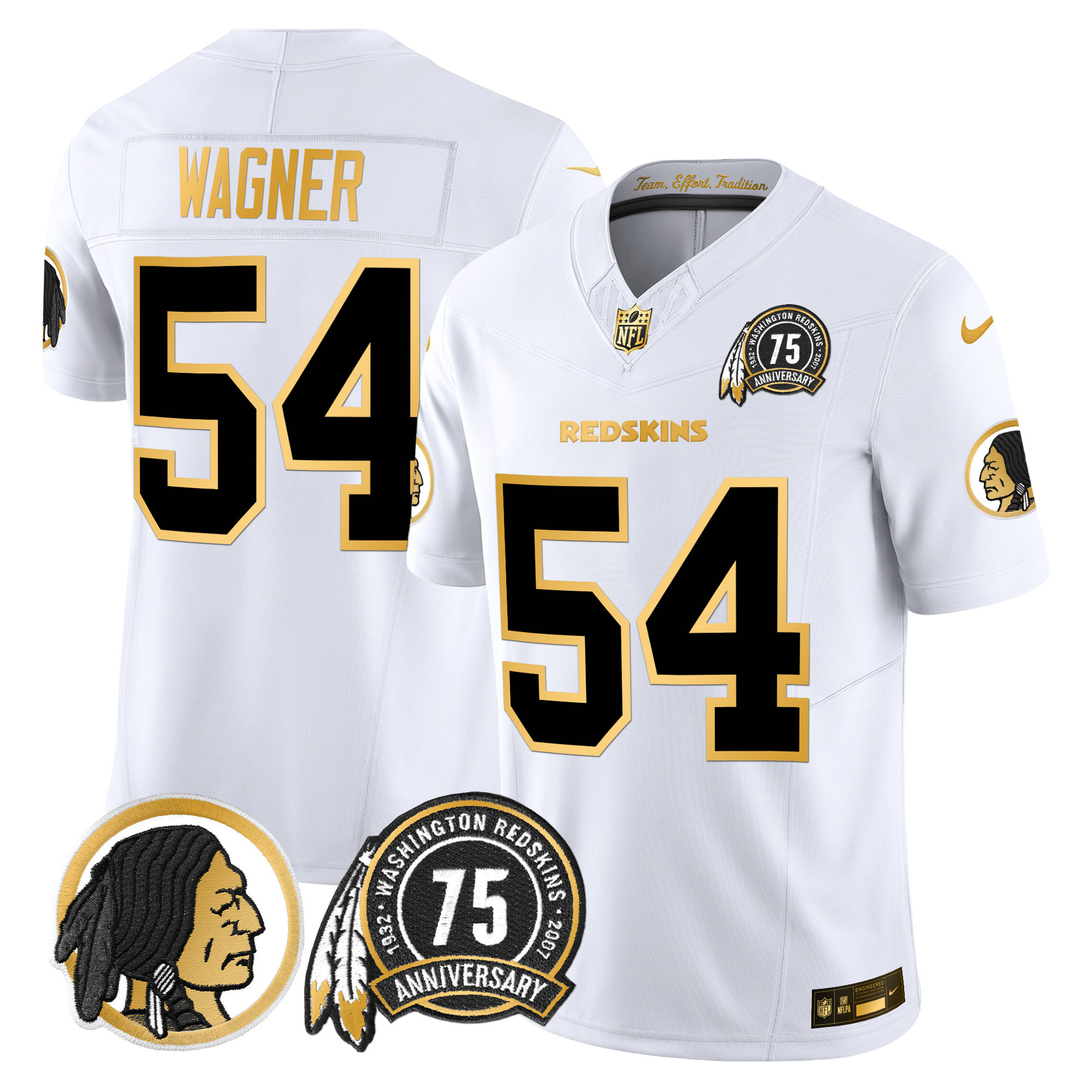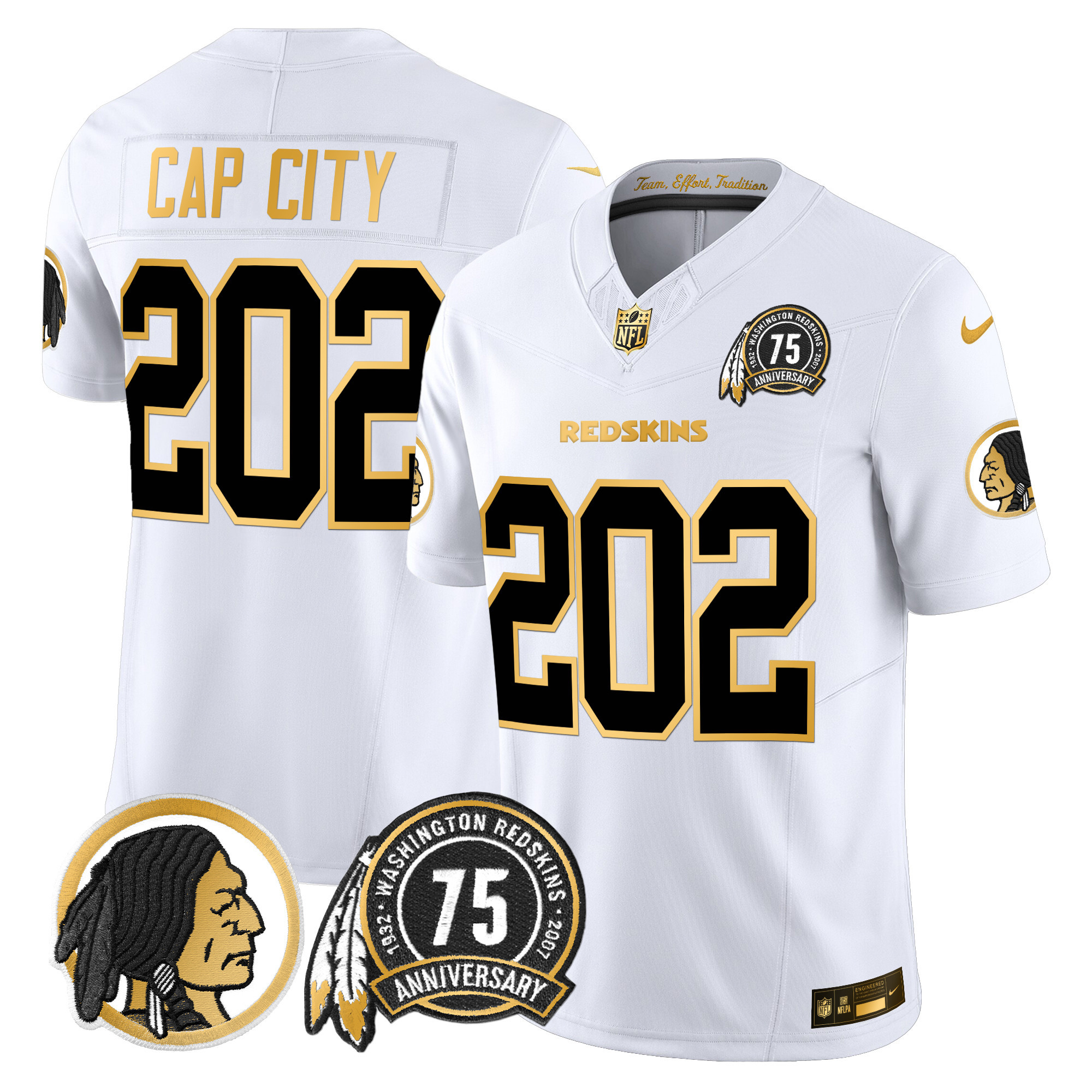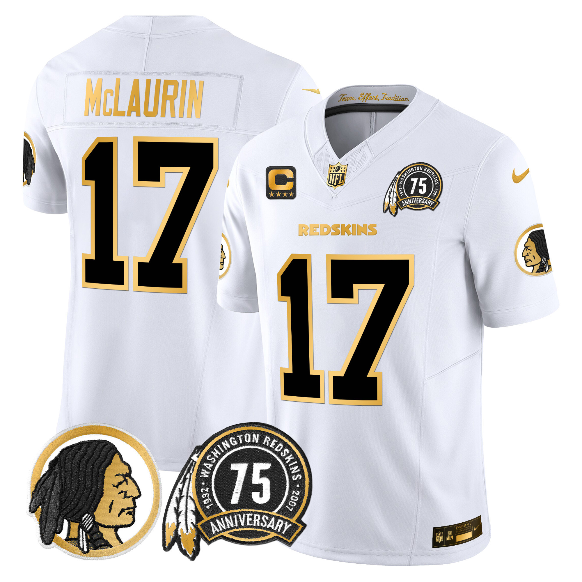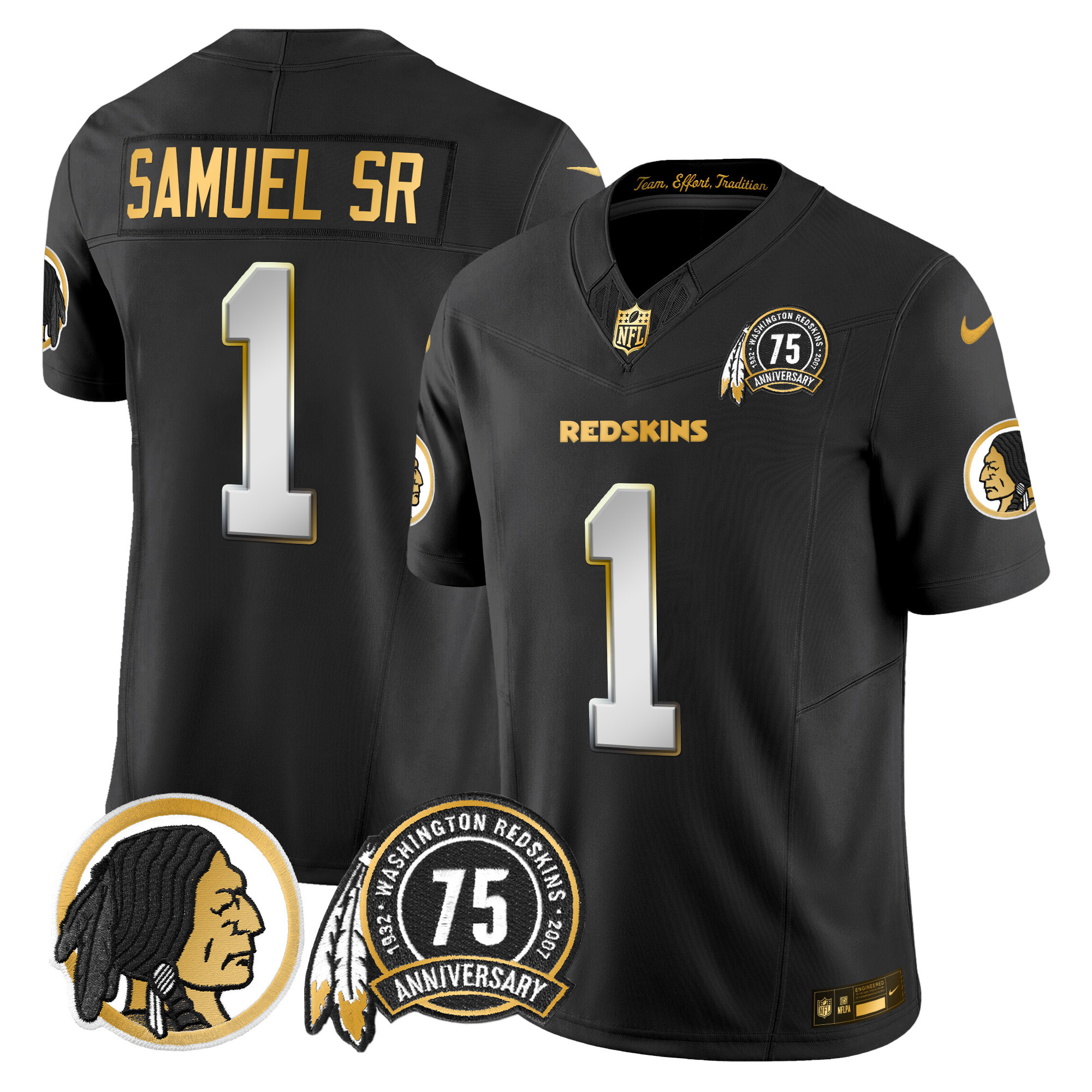 Men’s Washington Redskins 75th Patch Throwback Gold Vapor Limited Jersey – All Stitched