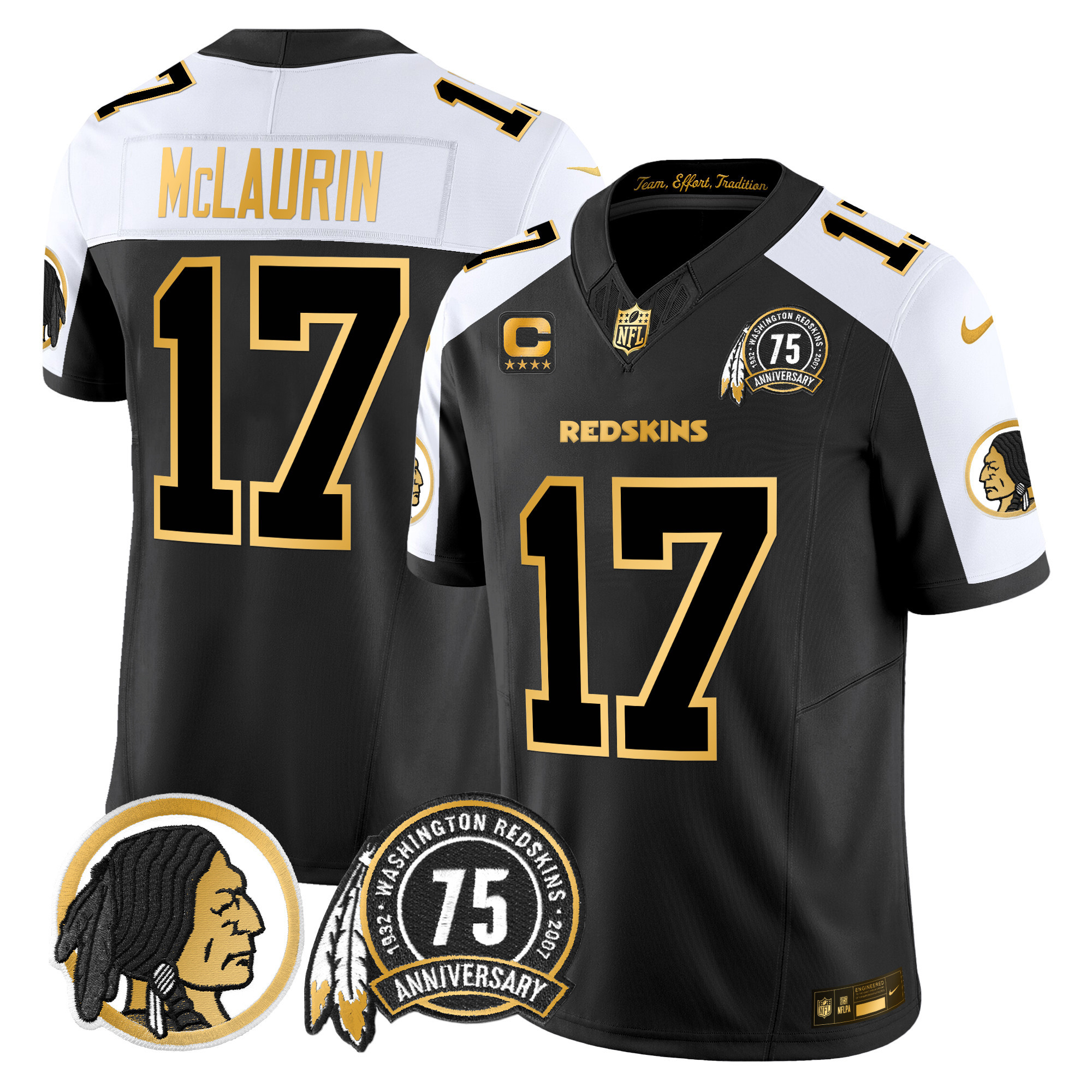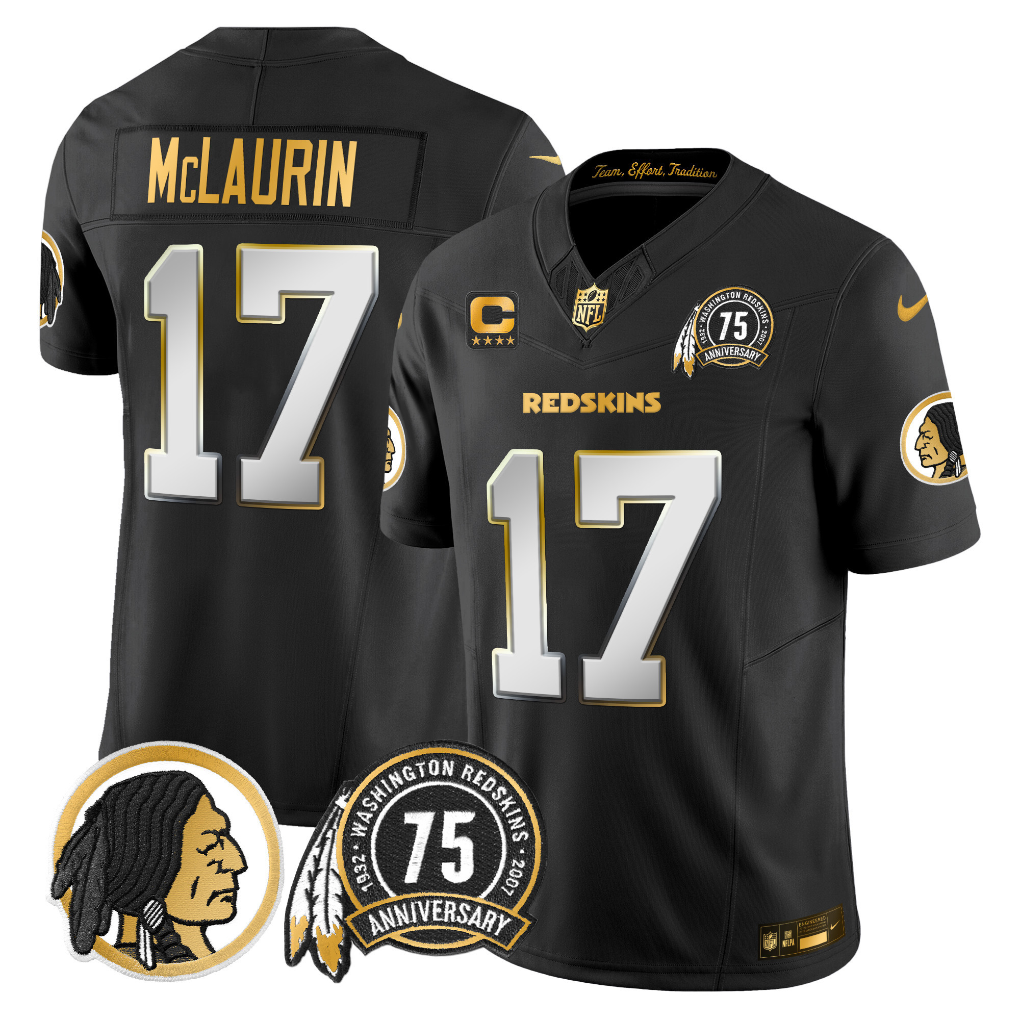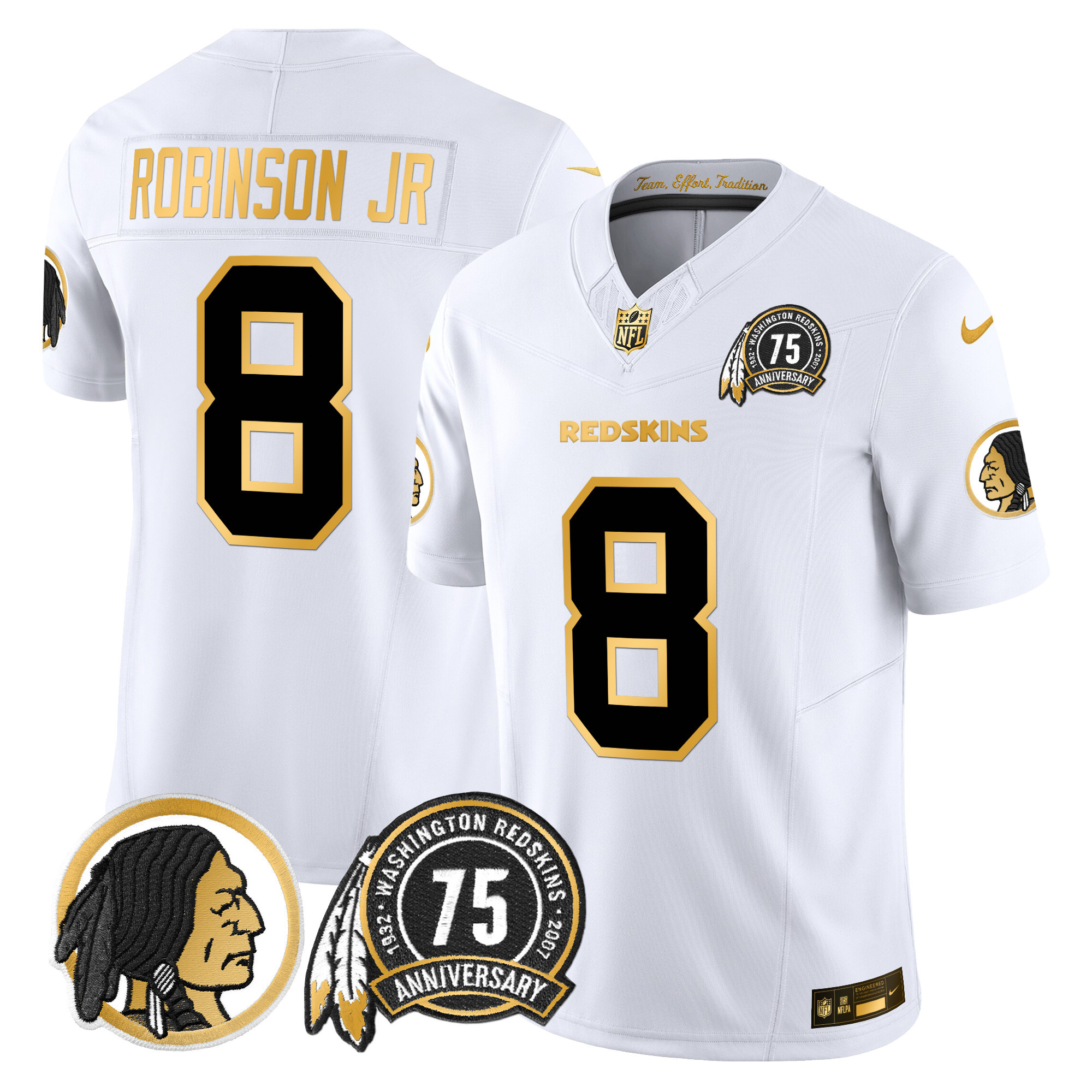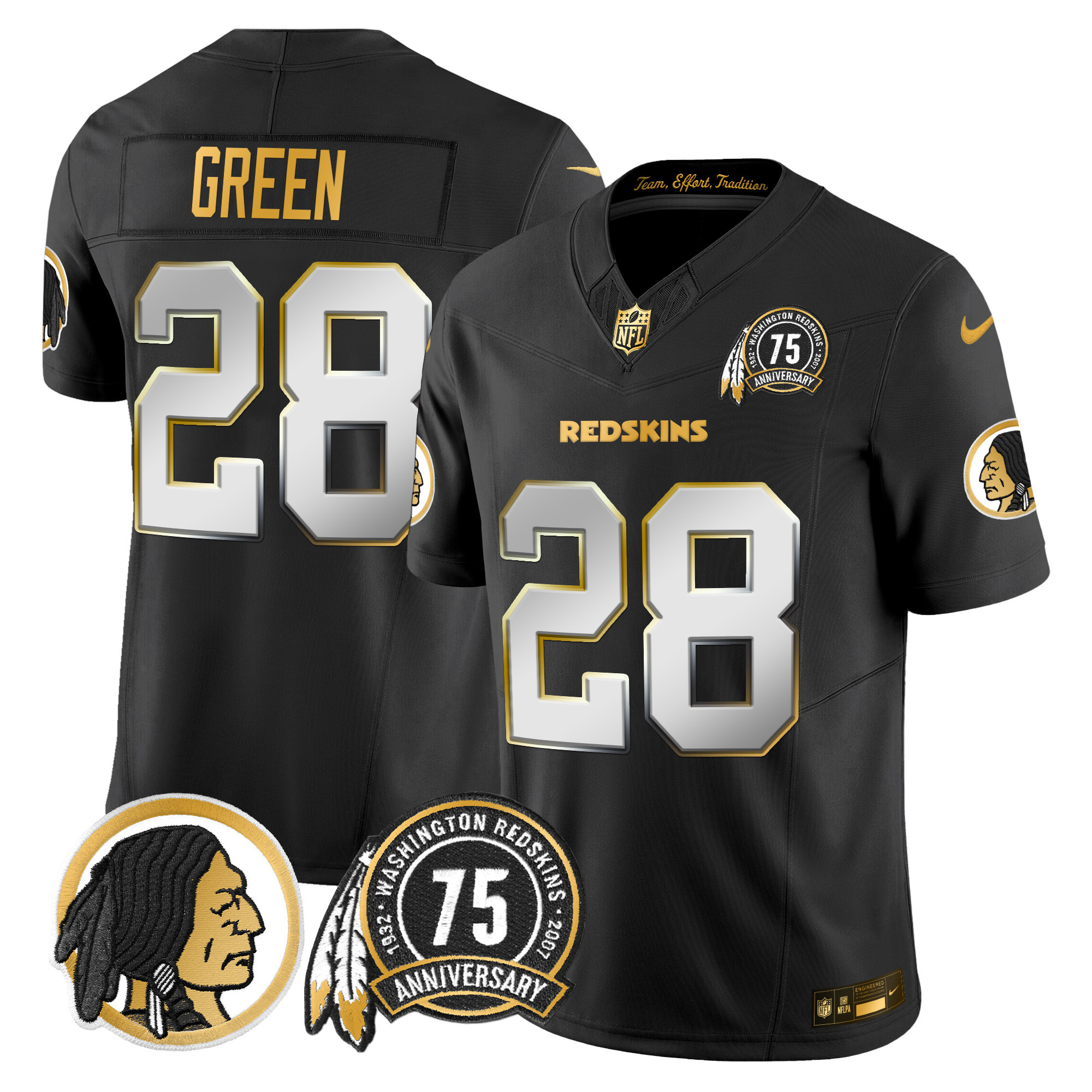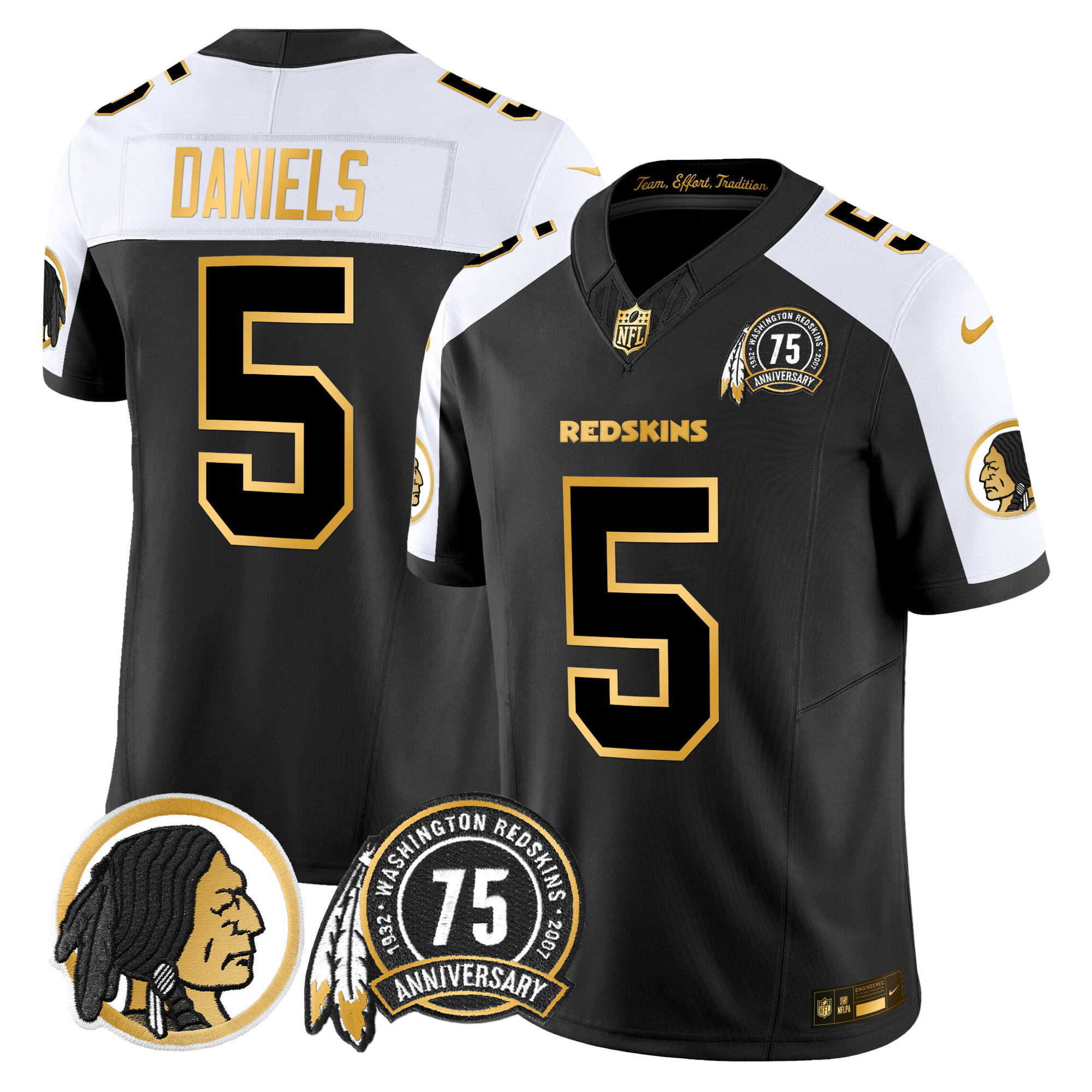 Men’s Washington Redskins 75th Patch Throwback Gold Vapor Limited Jersey – All Stitched