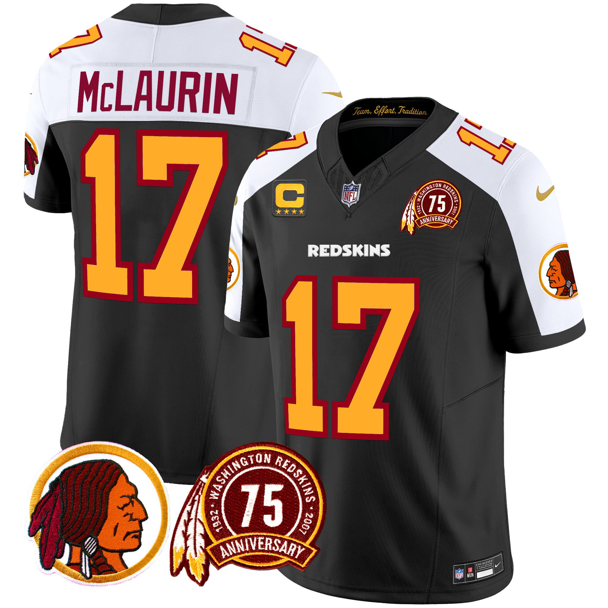 Men’s Washington Redskins 75th Patch Throwback Vapor Limited Jersey – All Stitched