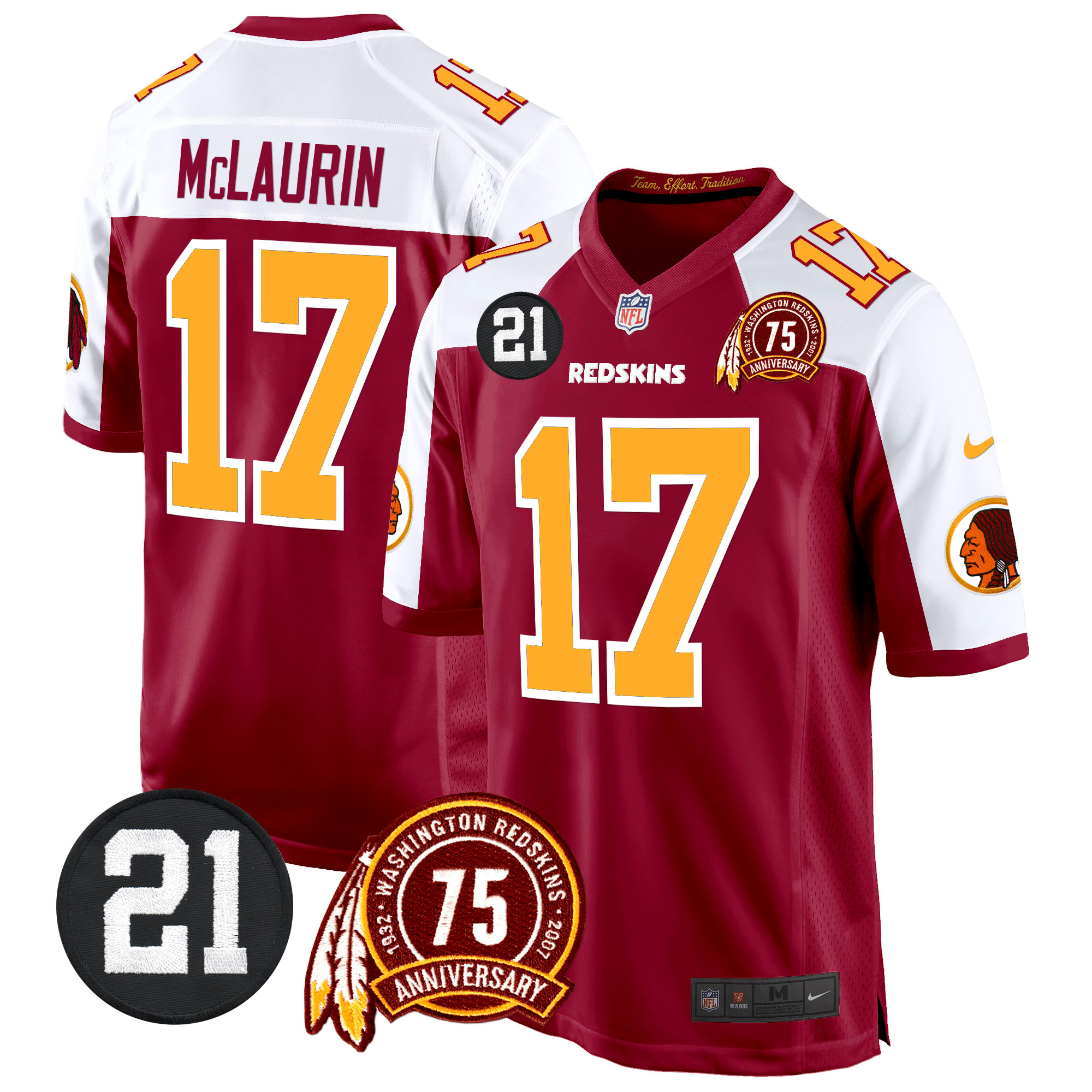 Men’s Washington Redskins 75th & Sean Taylor Patch Game Jersey – All Stitched