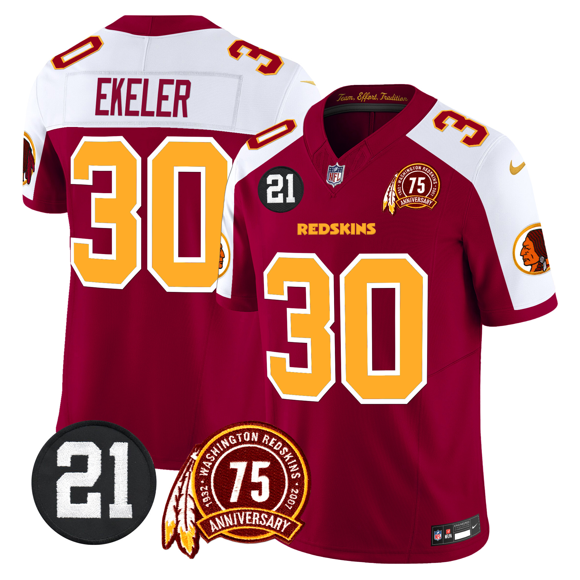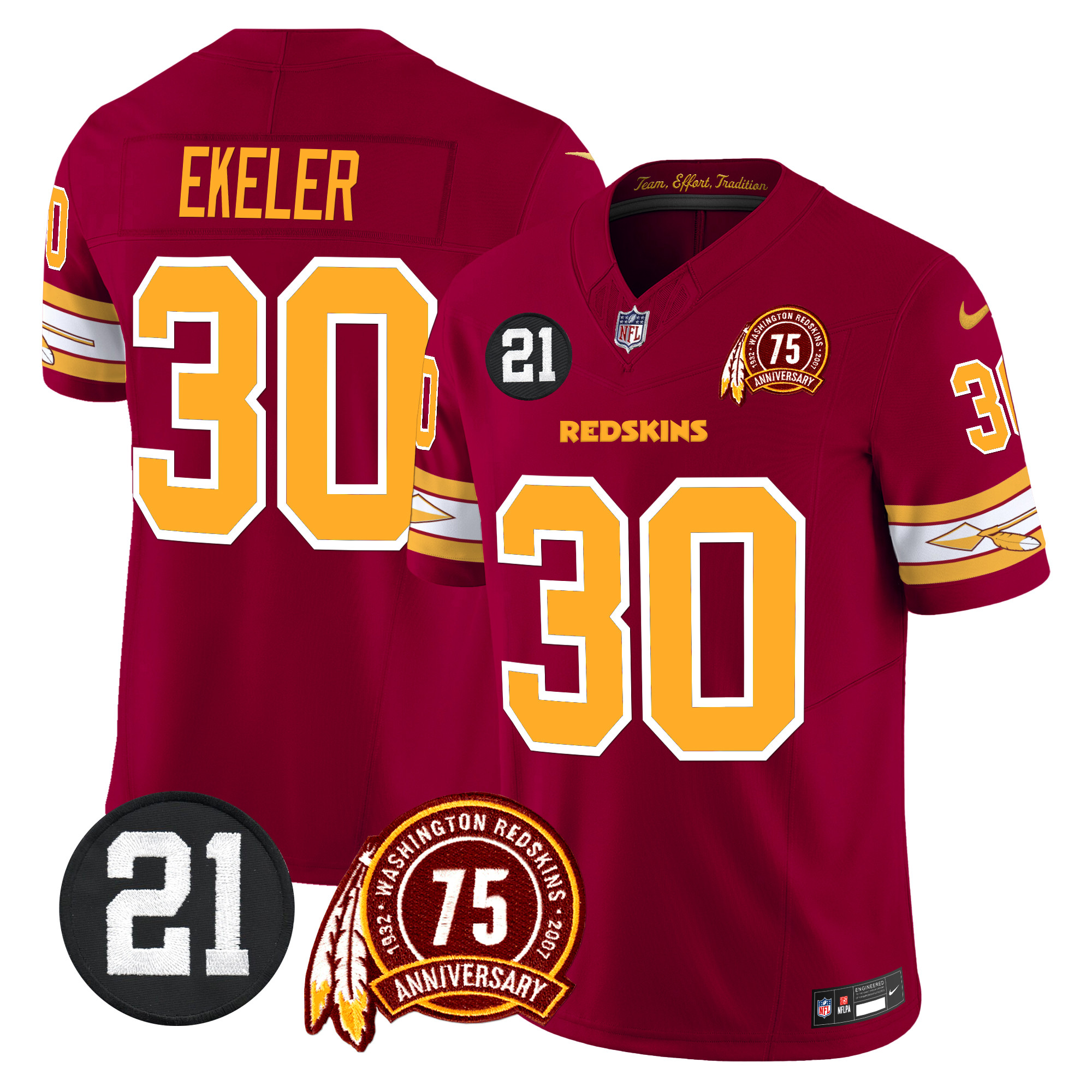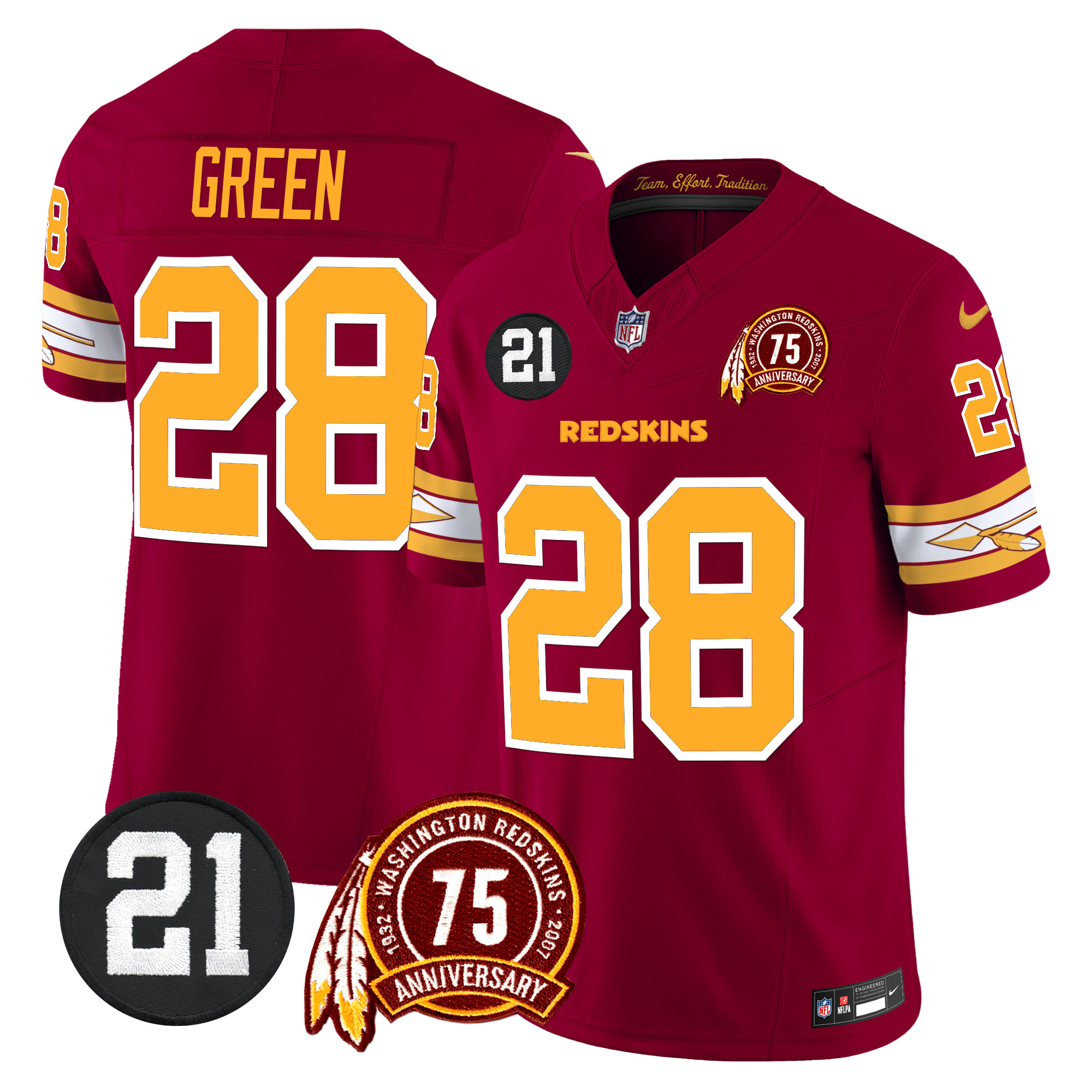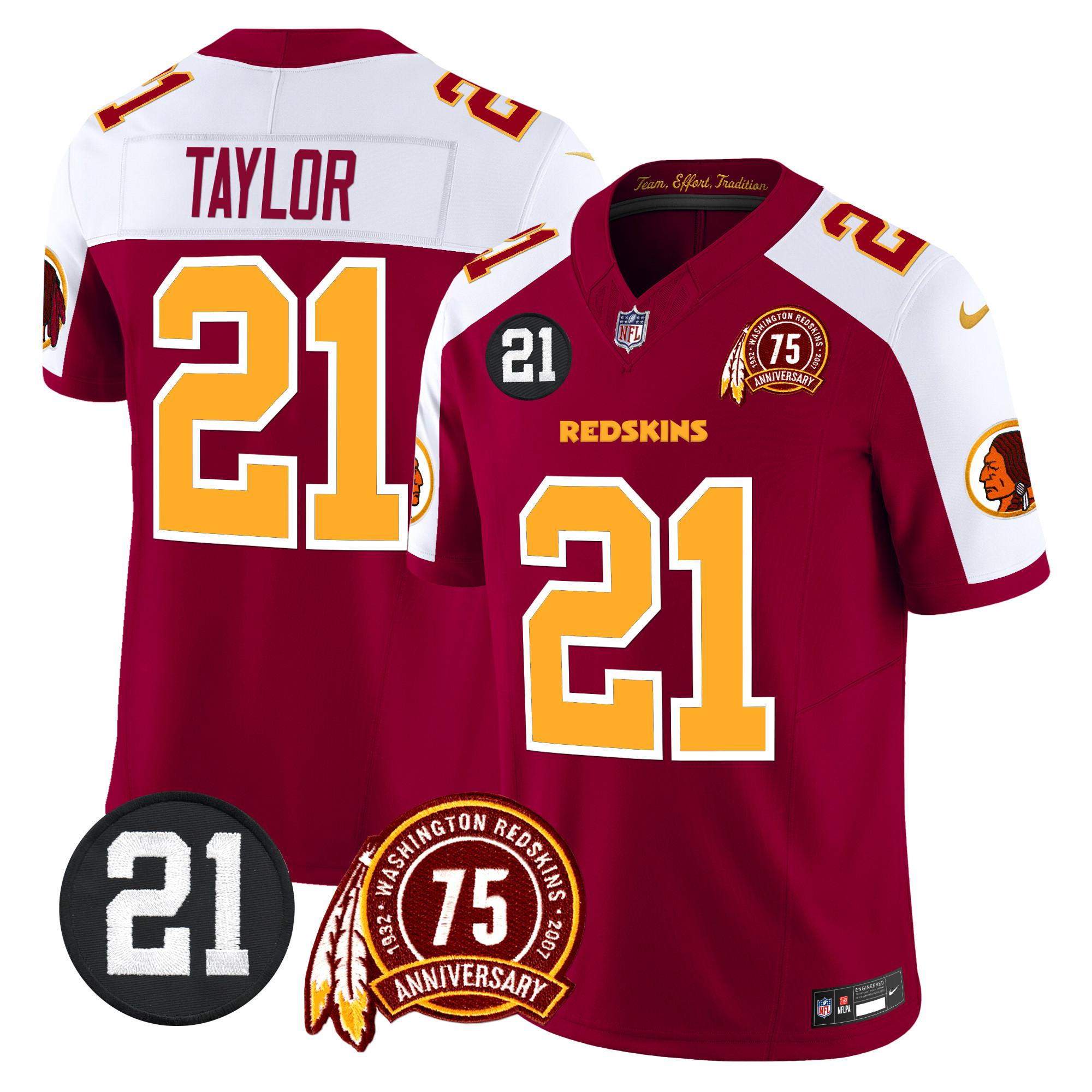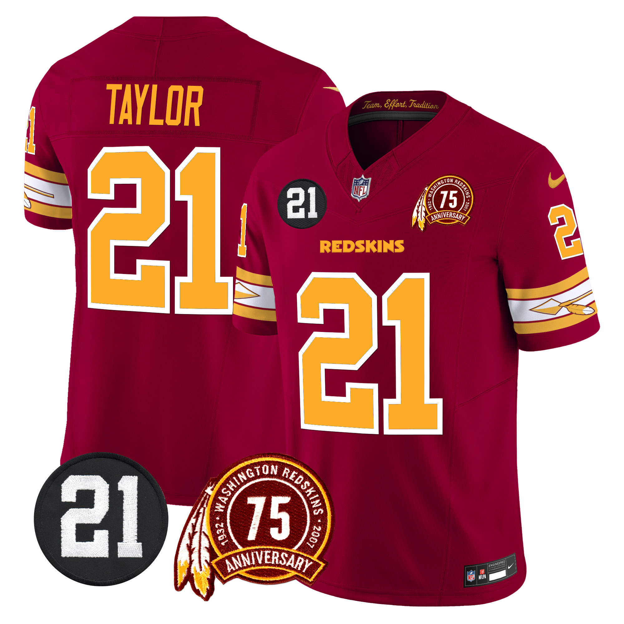 Men’s Washington Redskins 75th & Sean Taylor Patch Vapor Limited Jersey V2 – All Stitched