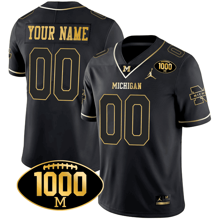 Michigan Wolverines 1000 Wins Patch Gold Custom Jersey – All Stitched