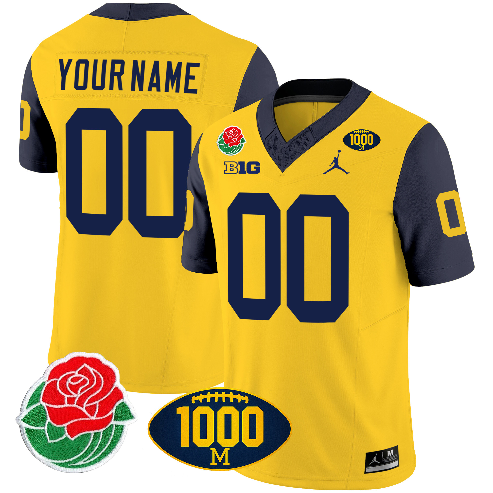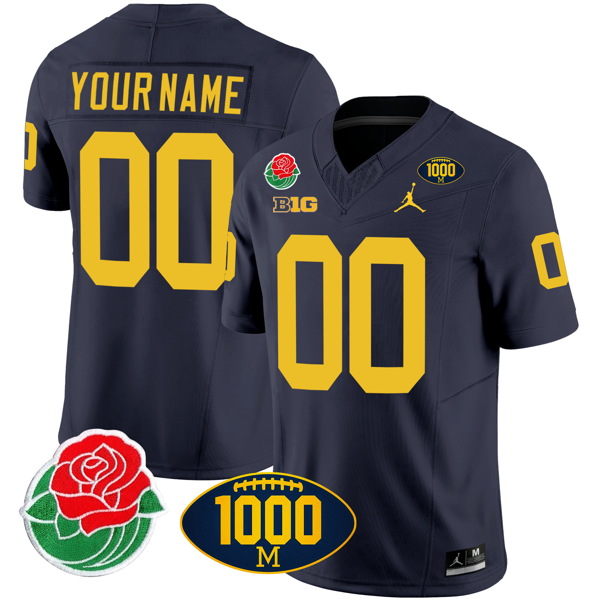 Michigan Wolverines Rose Bowl & 1000 Wins Patch Vapor Custom Jersey – All Stitched