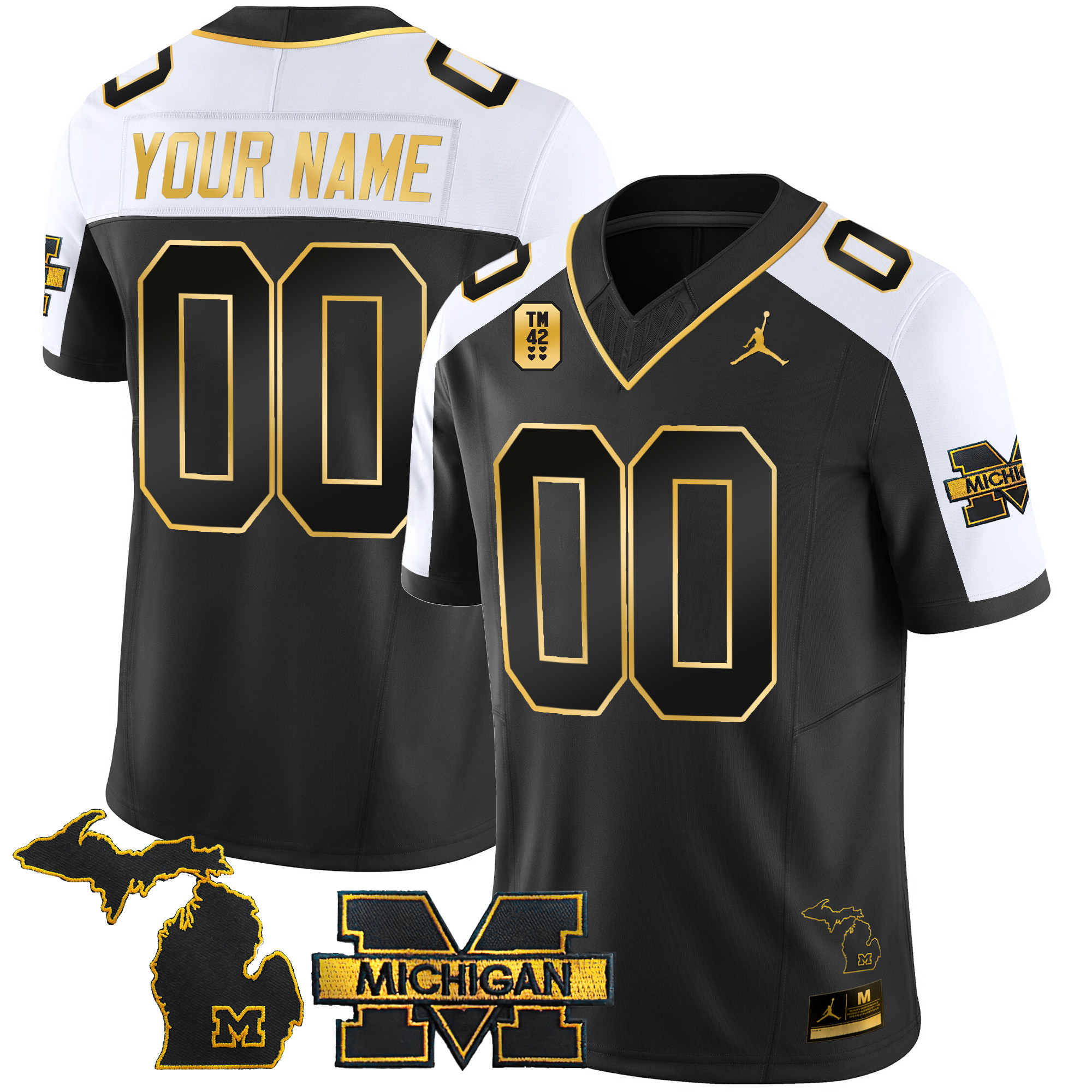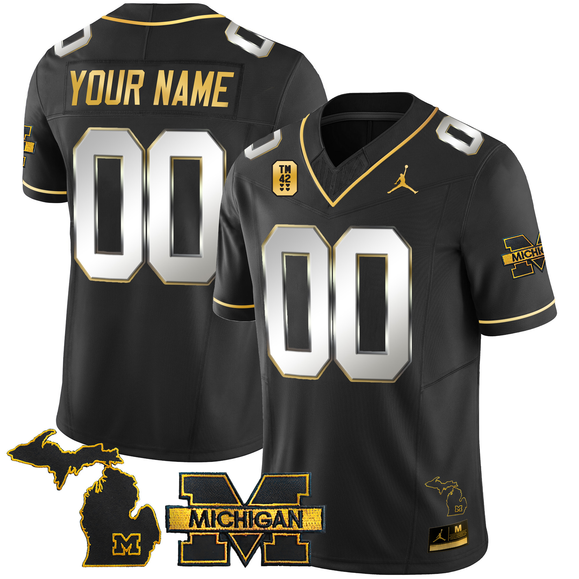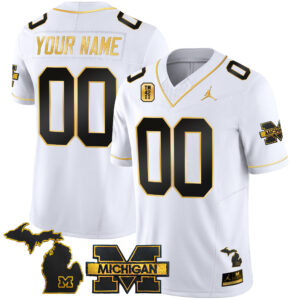 Michigan Wolverines TM42 Patch Vapor Gold Custom Jersey – All Stitched