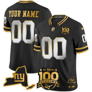 New York Giants 100th Season & State Patch Gold Vapor Limited Custom Jersey – All Stitched