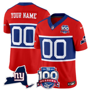 New York Giants ‘Century Red’ 100th Commemorative Vapor Custom Jersey V2 – All Stitched