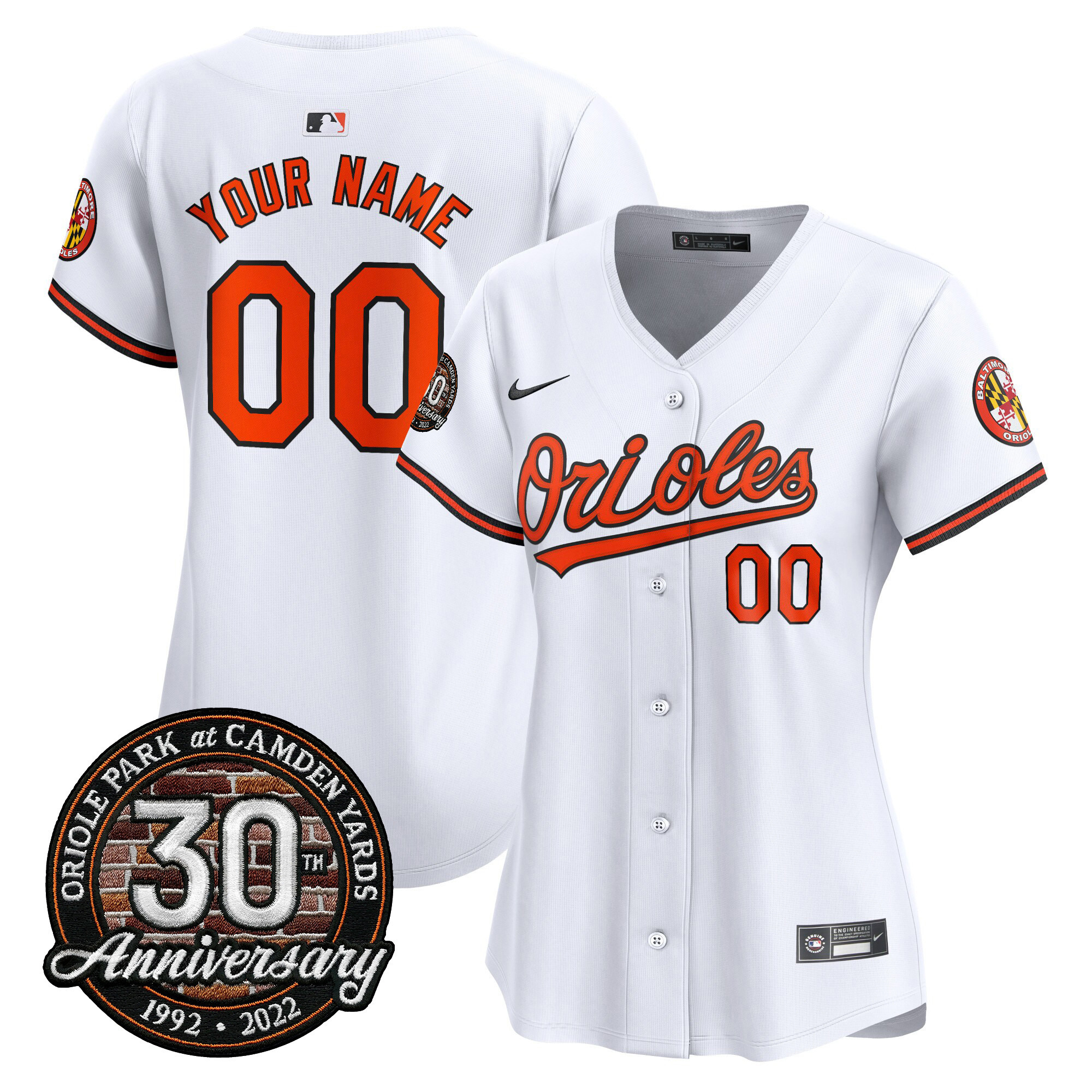 Women’s Orioles Camden Yards 30th Anniversary Patch Vapor Premier Limited Jersey – All Stitched
