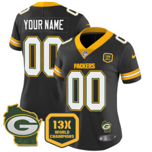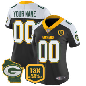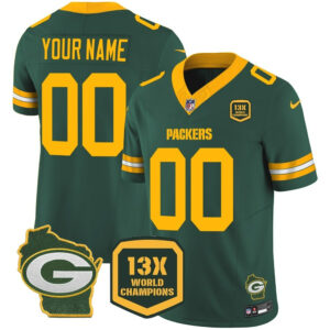 Packers 13 Time World Champions & Home Patch Vapor Custom Jersey – All Stitched
